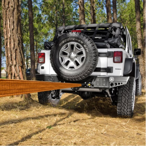 في رياضات القوة، قد تتعطل المركبات لأسباب مختلفة، مثل تعلق الدراجات النارية في الوحل أثناء القيادة على الطرق الوعرة، أو انقلاب المركبات المخصصة لجميع التضاريس في الأراضي الوعرة. يمكن أن تلعب أحزمة السحب دورًا مهمًا في هذه الحالة، حيث يتم استخدامها لسحب المركبات المحاصرة للخروج من الخطر أو لنقلها إلى مكان آمن لإجراء الإصلاحات. بالمقارنة مع الكابلات الفولاذية، فإن أحزمة السحب أخف وزنًا وأسهل في الحمل والتشغيل، ولن تسبب خدوش أو تلف لسطح المركبات.