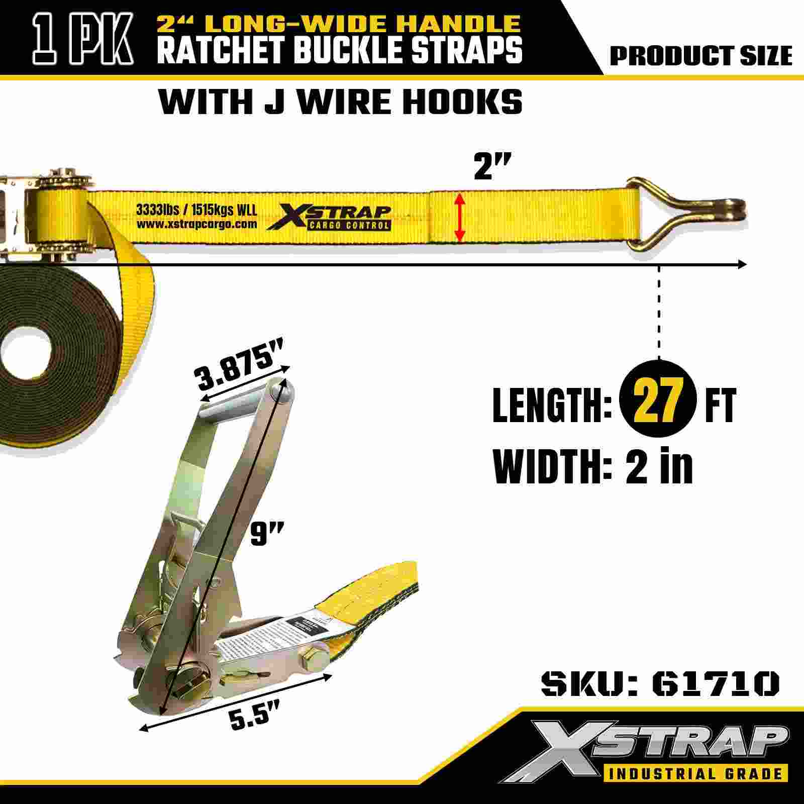 اكسستراب 61710 ربطة سقاطة ممتازة للأسفل 2 بوصة × 27 قدمًا (عبوة واحدة) قوة كسر 10000 رطل أشرطة شحن مزدوجة على شكل حرف J مثالية للأجهزة المتحركة ومعدات العشب والدراجات النارية