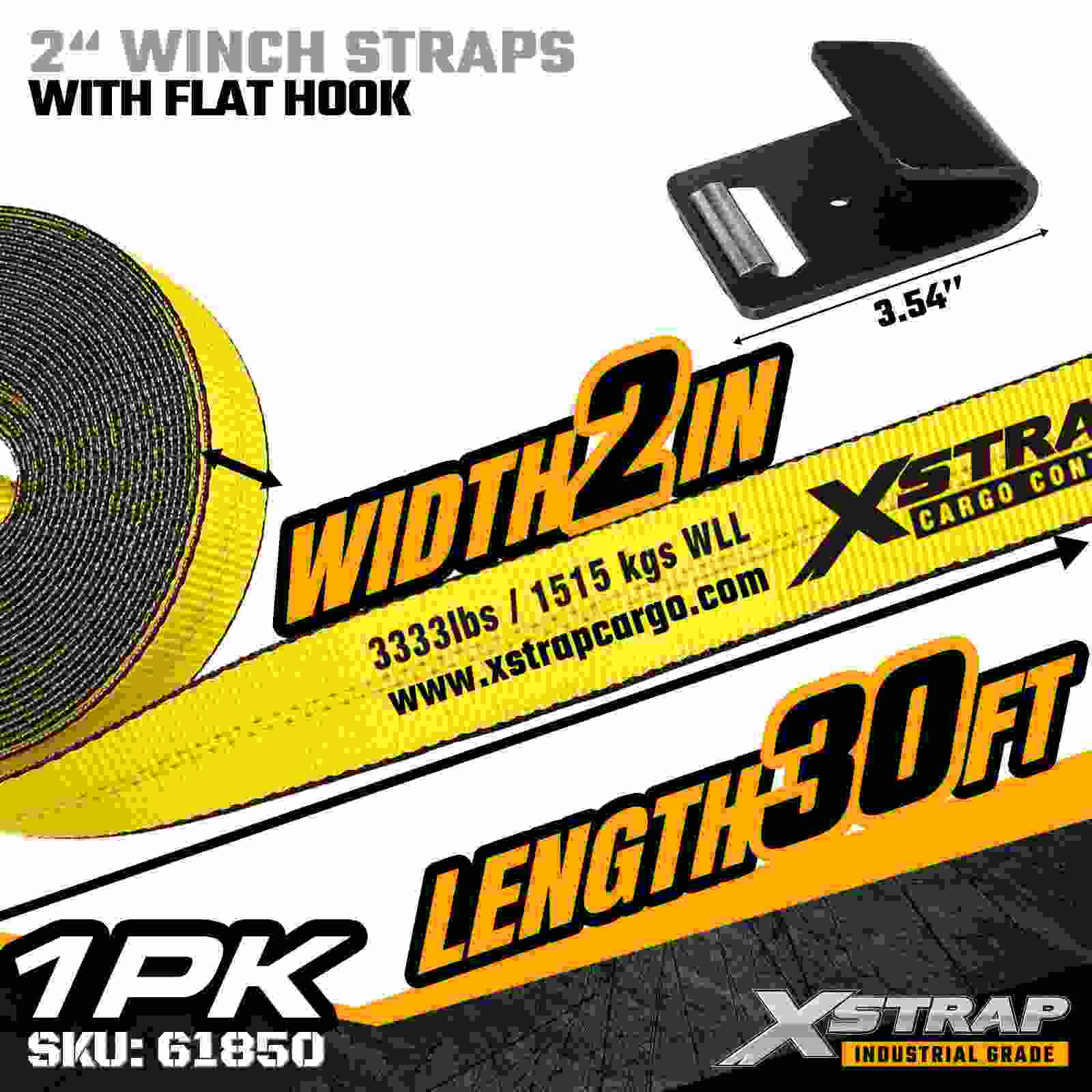 حزام ونش قياسي 2 بوصة × 30 قدم مع خطاف مسطح