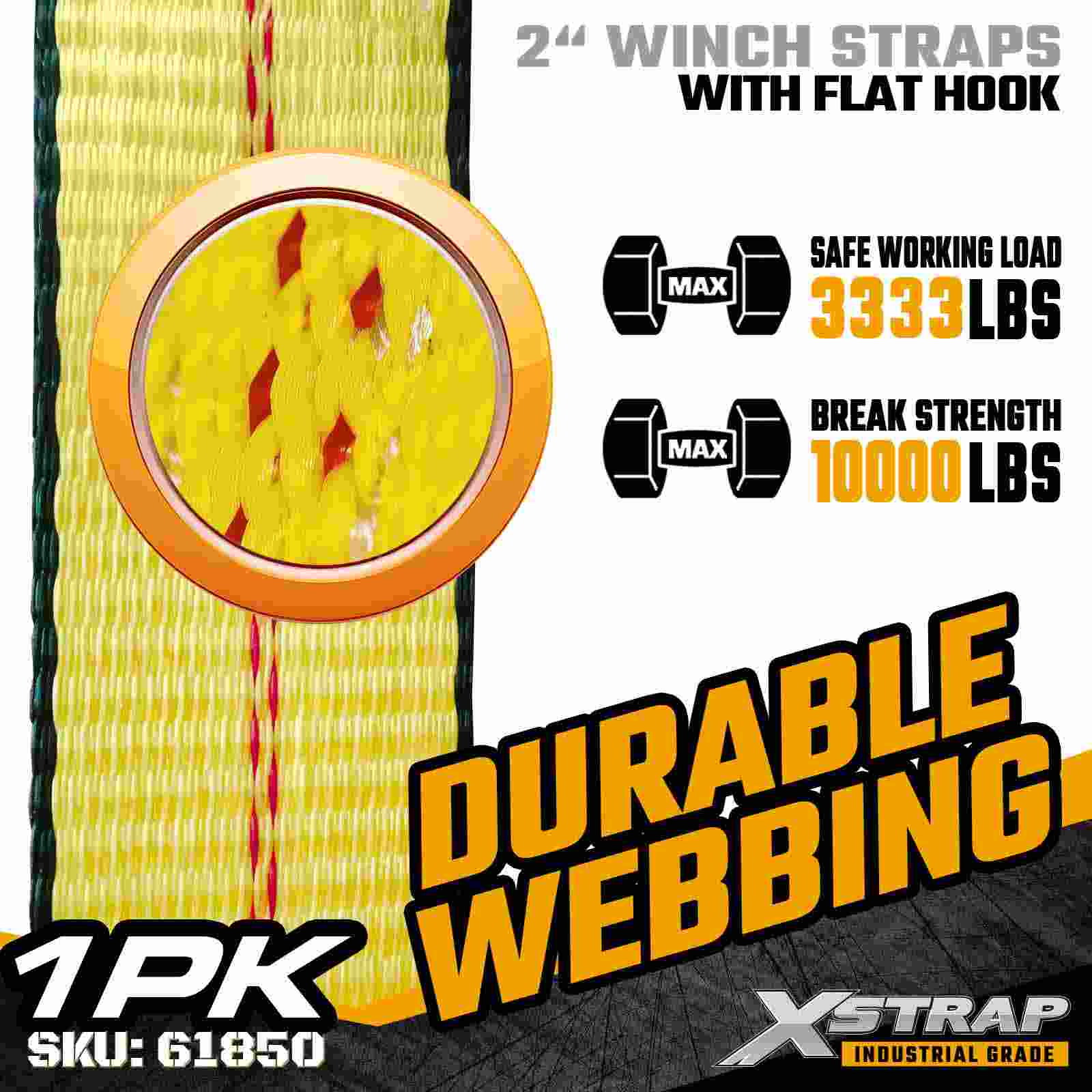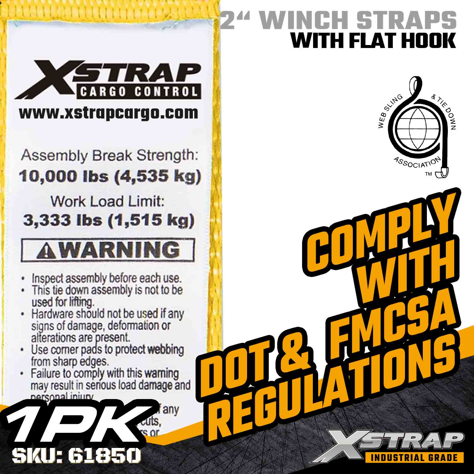 تم تصميم حزام الونش القياسي Xstrap 61850 مقاس 2 × 30 قدمًا لتأمين البضائع المسطحة بشكل موثوق، ويتميز بخطاف مسطح معزز وحزام بوليستر عالي القوة. مع حد حمل عمل يبلغ 3333 رطلاً وقوة كسر تبلغ 10000 رطل، فإنه يوفر أداءً يمكن الاعتماد عليه لنقل البضائع اليومية وأحمال المنصات والخشب والأنابيب والتطبيقات اللوجستية العامة.