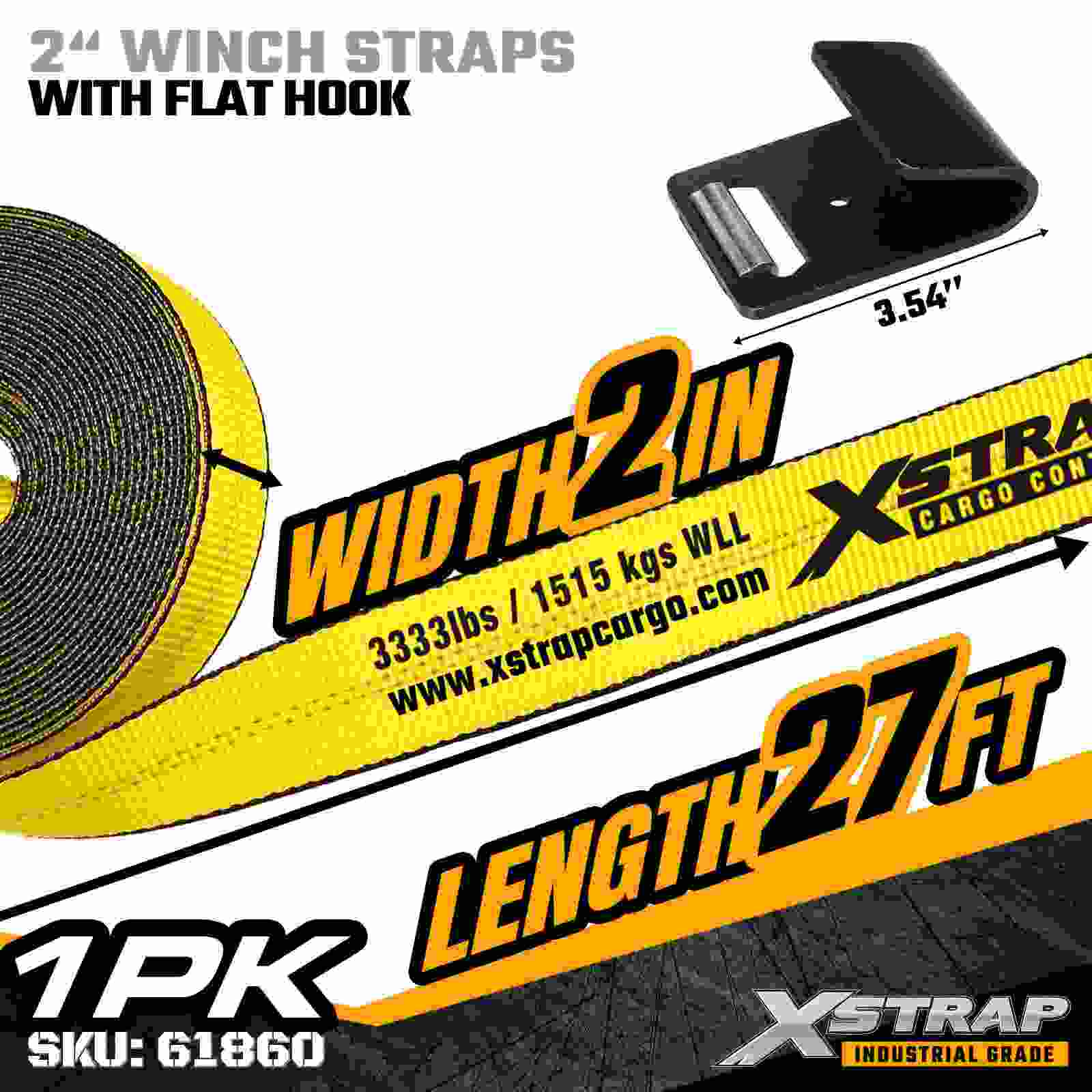 تم تصميم حزام الونش القياسي Xstrap 61860 مقاس 2 بوصة × 27 قدمًا لتأمين البضائع المسطحة بشكل موثوق، ويتميز بخطاف مسطح معزز وحزام بوليستر عالي القوة. مع حد حمل عمل يصل إلى 3333 رطلاً وقوة كسر تبلغ 10000 رطل، فإنه يوفر أداءً يمكن الاعتماد عليه لنقل البضائع يوميًا، وأحمال المنصات، والخشب، والتطبيقات اللوجستية العامة