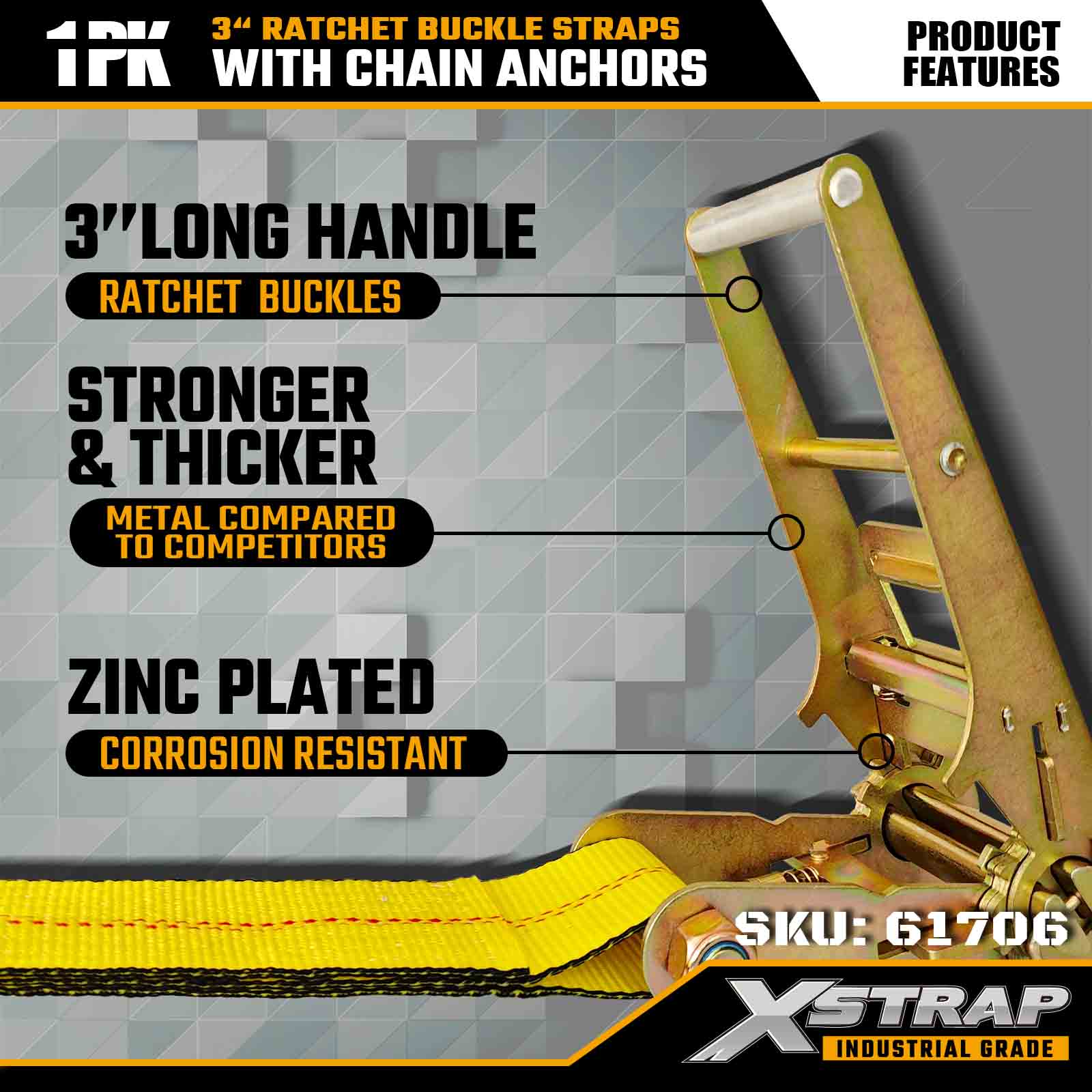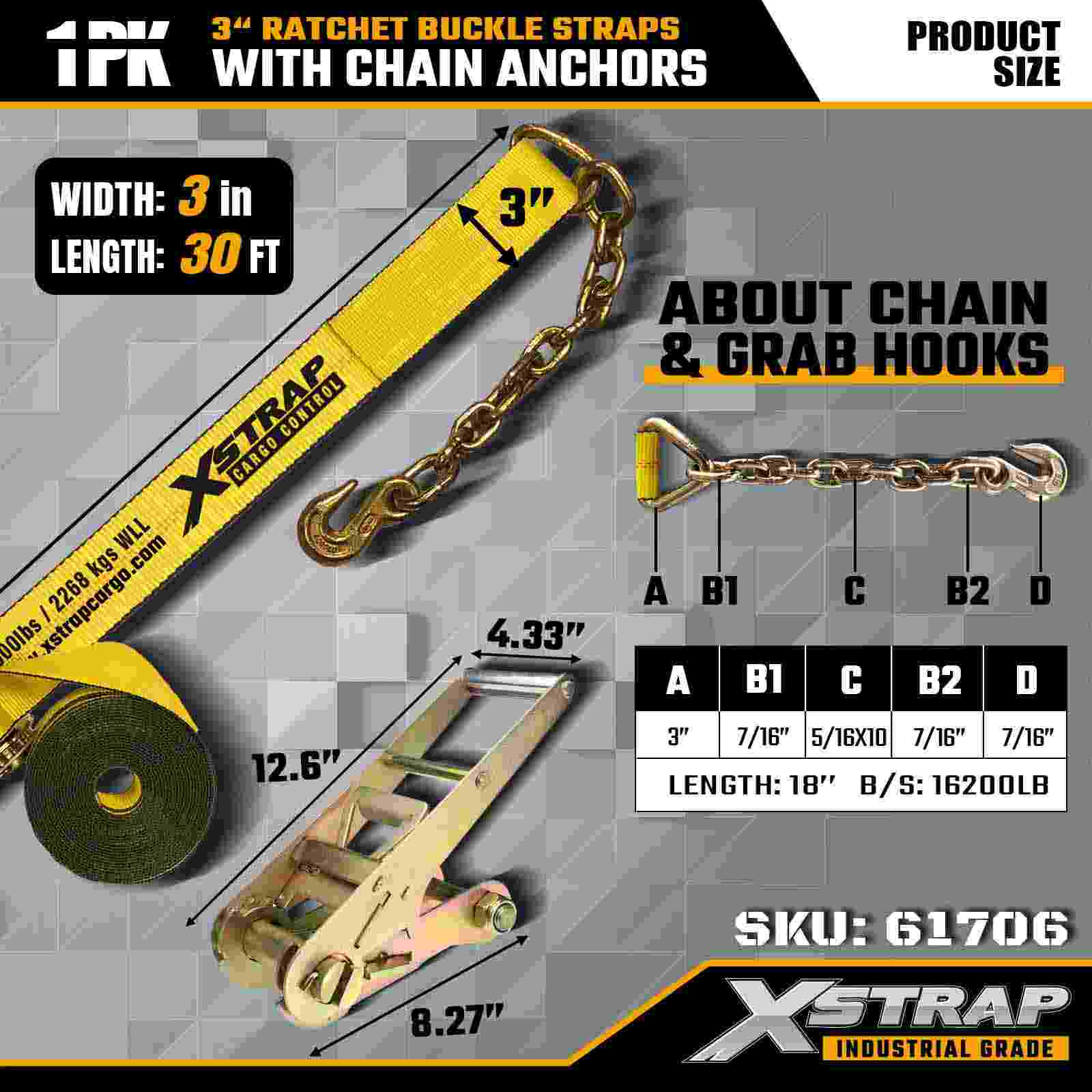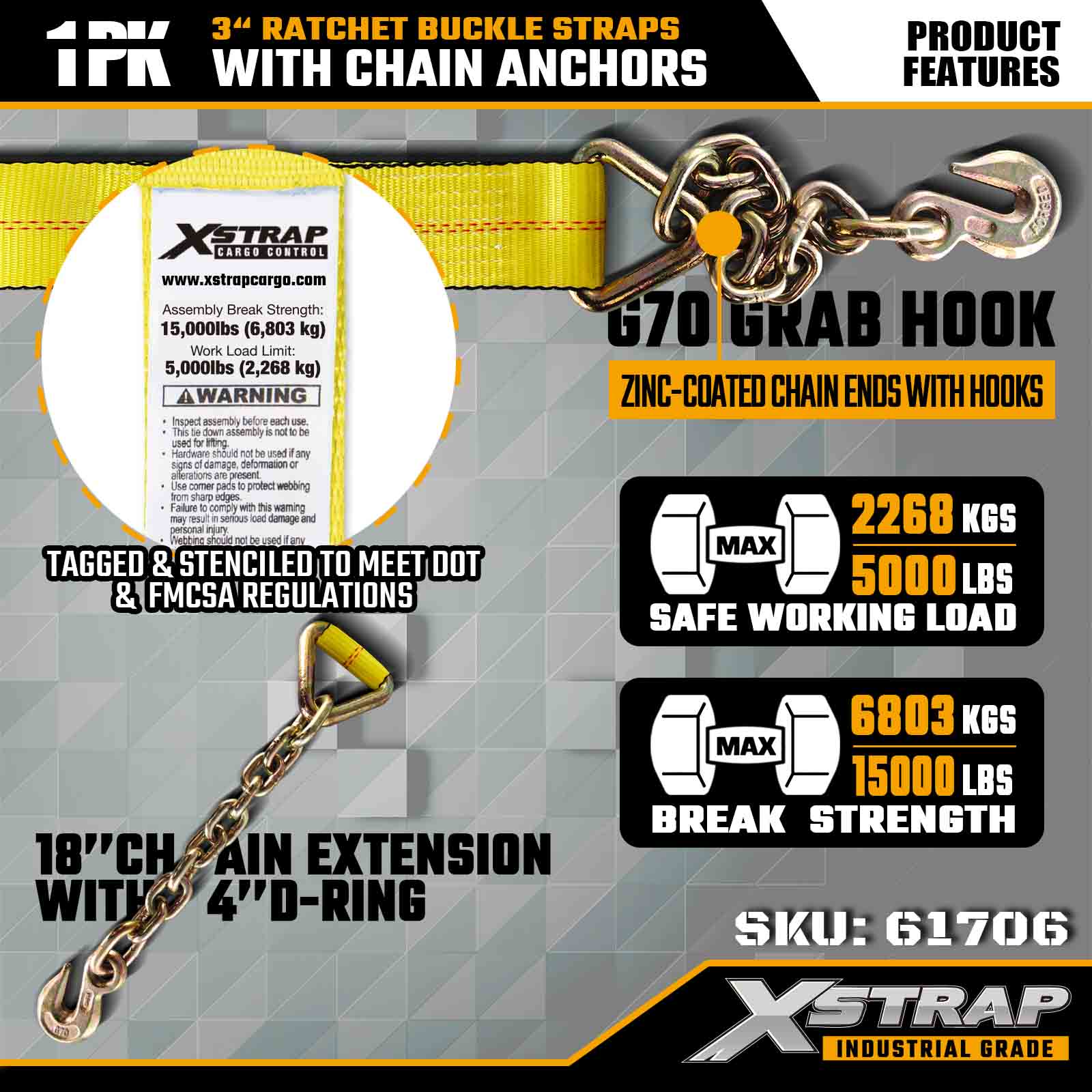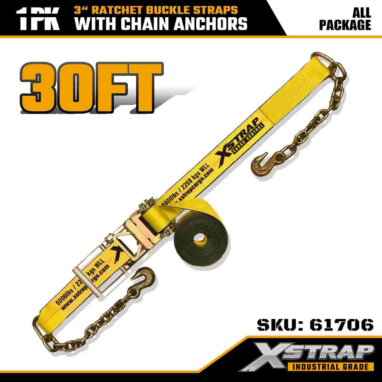 تم تصميم حزام Xstrap 61706 مقاس 3 بوصات × 30 قدمًا (عبوة واحدة) لتأمين البضائع الثقيلة، ويتميز بمثبتات سلسلة مزورة ونظام سقاطة عالي التوتر. مع قوة كسر تبلغ 5000 رطل و15000 رطل، فإنه يوفر أداءً موثوقًا للأسِرَّة المسطحة ونقل الآلات والنقل الصناعي.