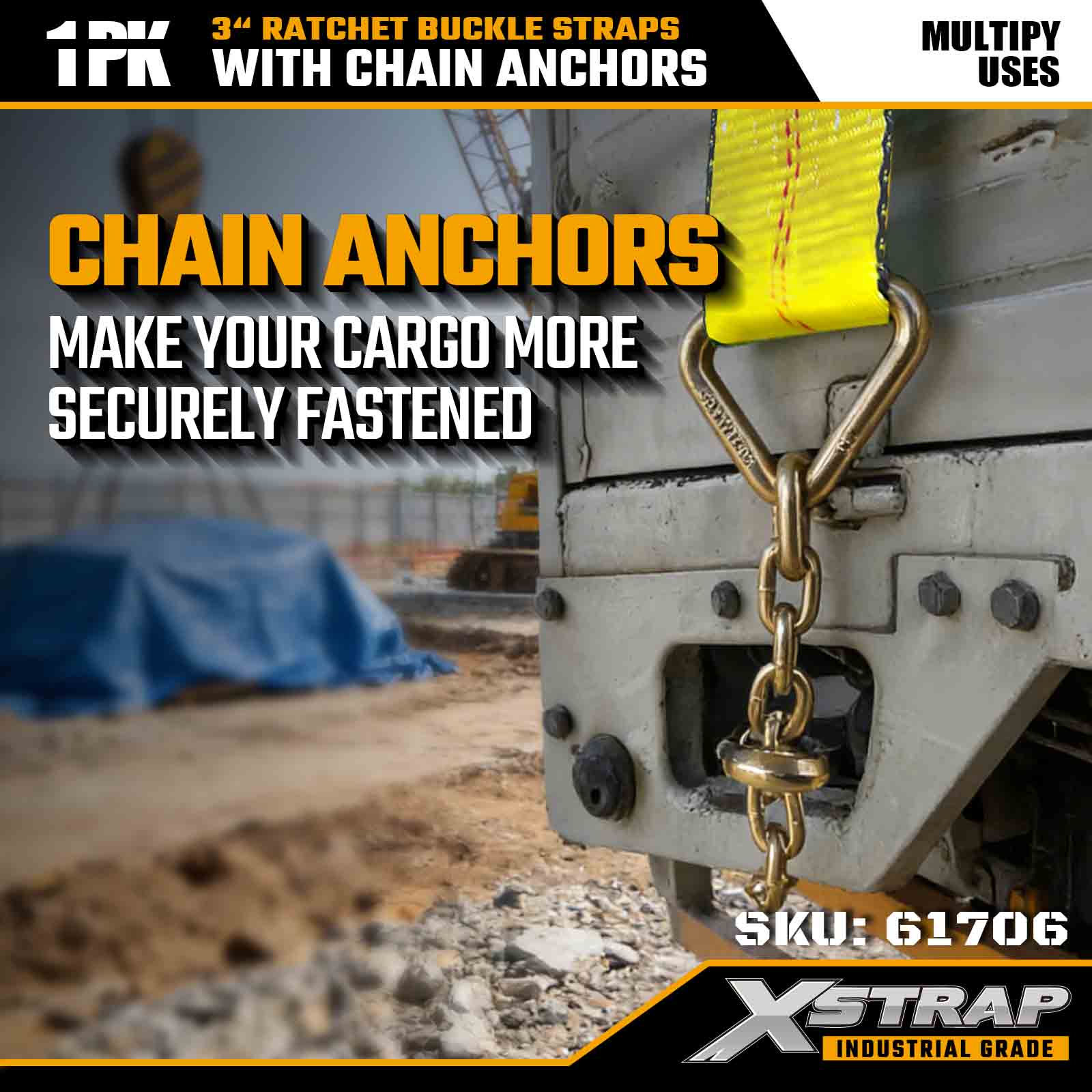 حزام بإبزيم بسقاطة 3 × 30 قدم مع مرساة سلسلة