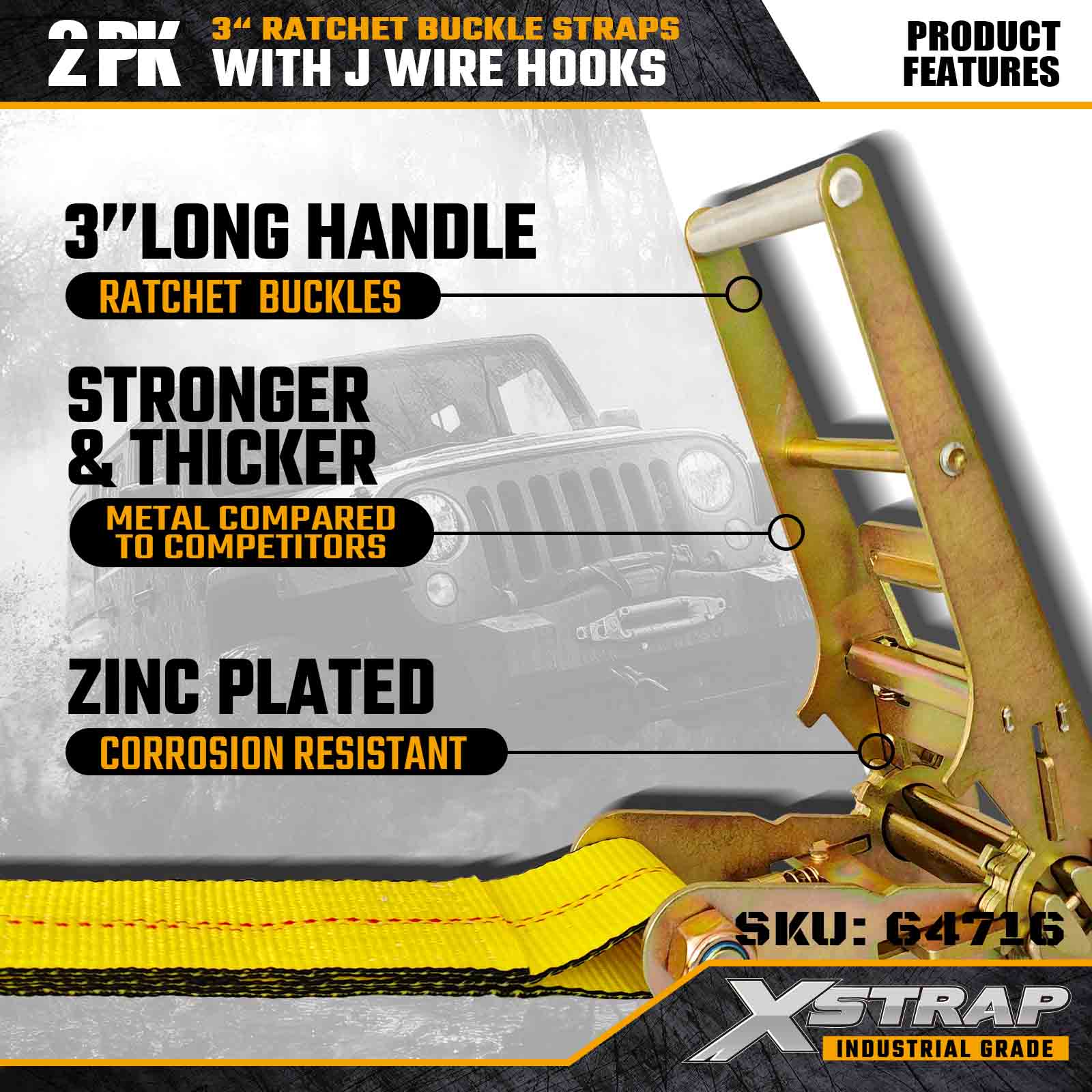تم تصميم أحزمة Xstrap 64716 مقاس 3 بوصات × 27 قدمًا (عبوة من قطعتين) لتأمين البضائع بشكل احترافي، وتتميز بخطافات سلكية عالية القوة وآلية سقاطة متينة. مع حد حمل عمل يبلغ 5000 رطل وقوة كسر تبلغ 15000 رطل، توفر هذه الأشرطة أداءً يمكن الاعتماد عليه للأسرة المسطحة ونقل المعدات ومهام النقل الصناعية.