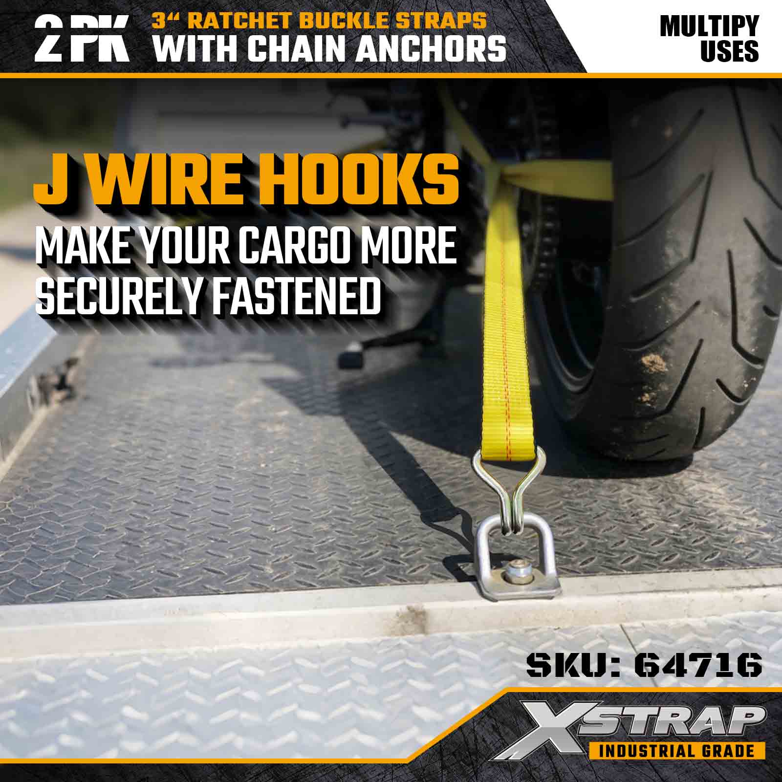 - نهايات خطاف سلكية معززة للتثبيت الآمن: مصممة بخطافات سلكية شديدة التحمل توفر نقاط اتصال قوية وموثوقة على قضبان المقطورة وحلقات التثبيت وفتحات الربط - مثالية لإعدادات الشحن المتنوعة.