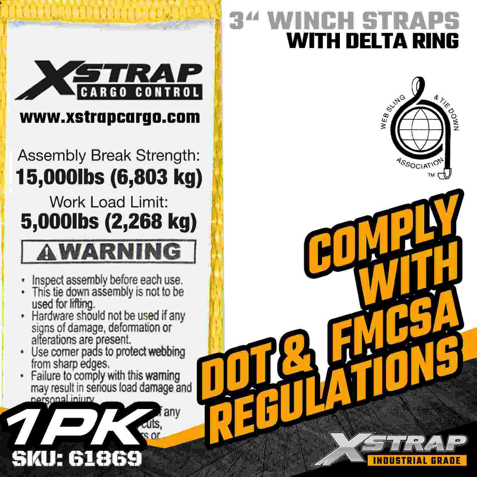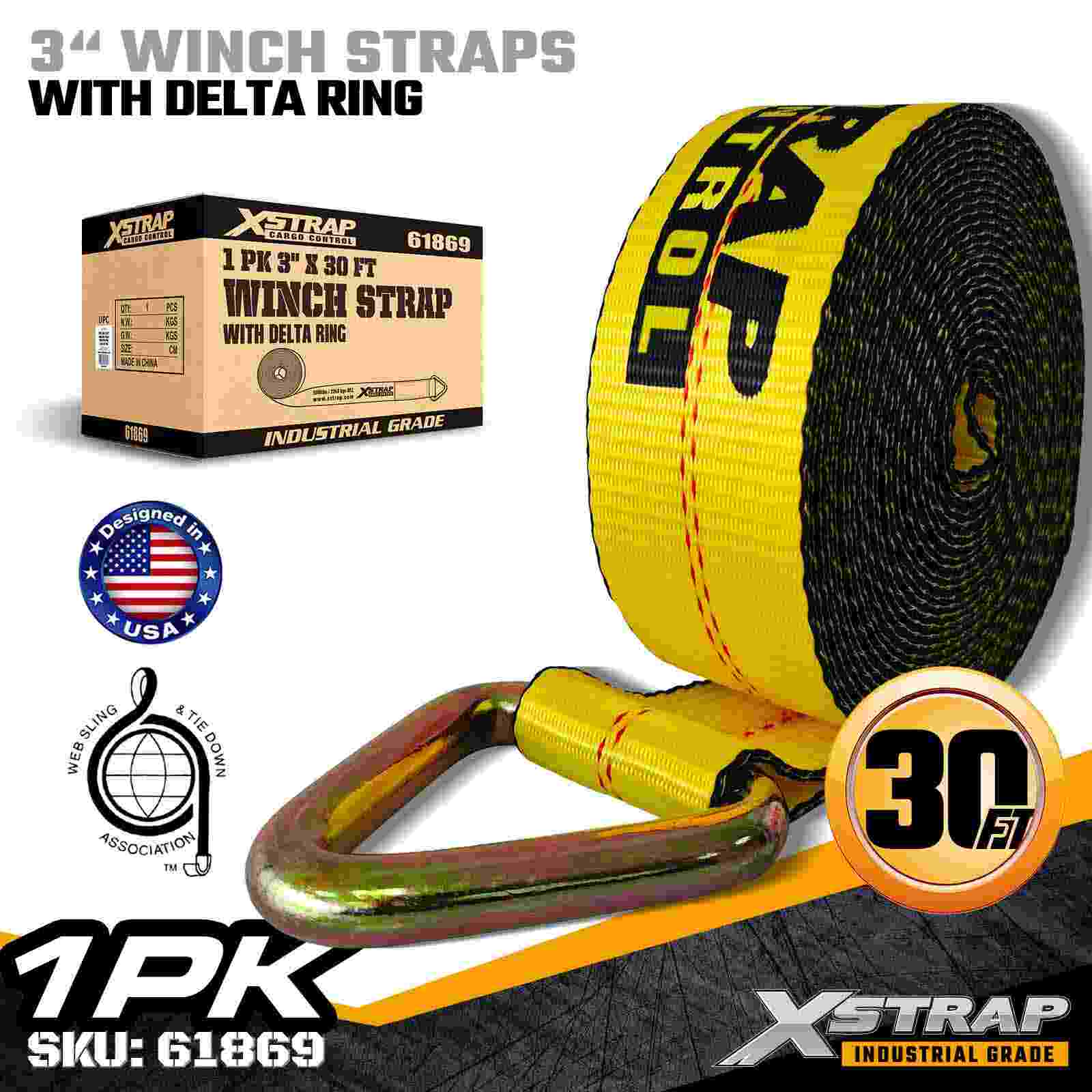 حزام ونش قياسي 3 بوصات × 30 قدمًا مع حلقة دلتا