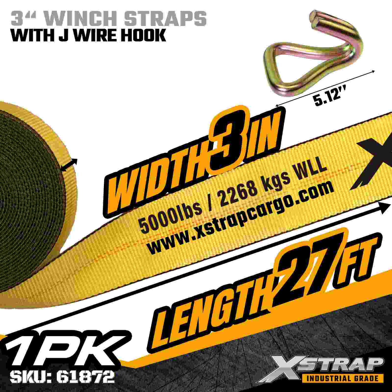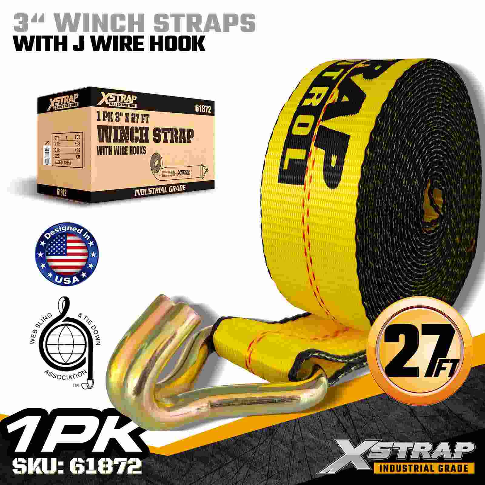 حزام ونش قياسي 3 × 27 قدم مع خطاف سلكي