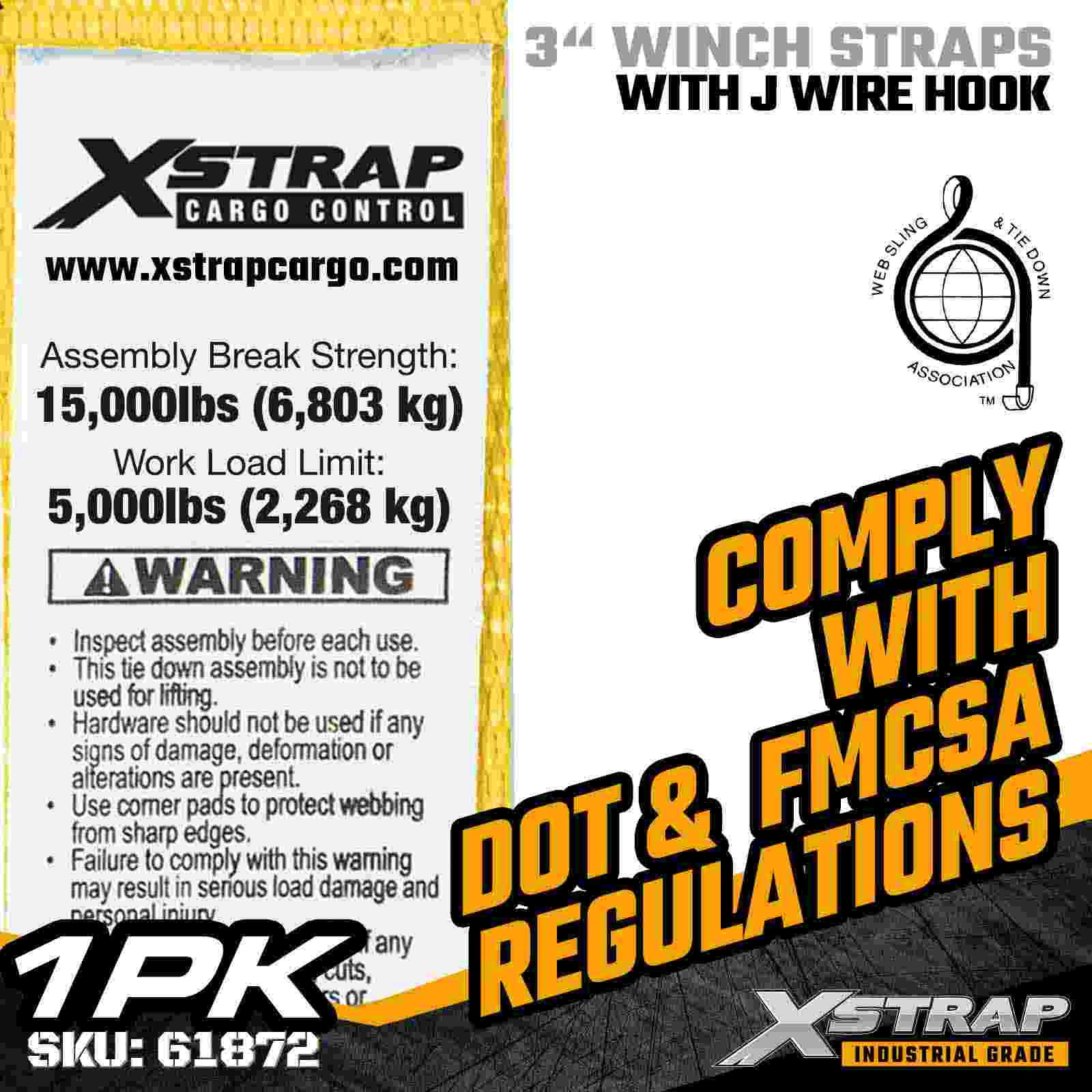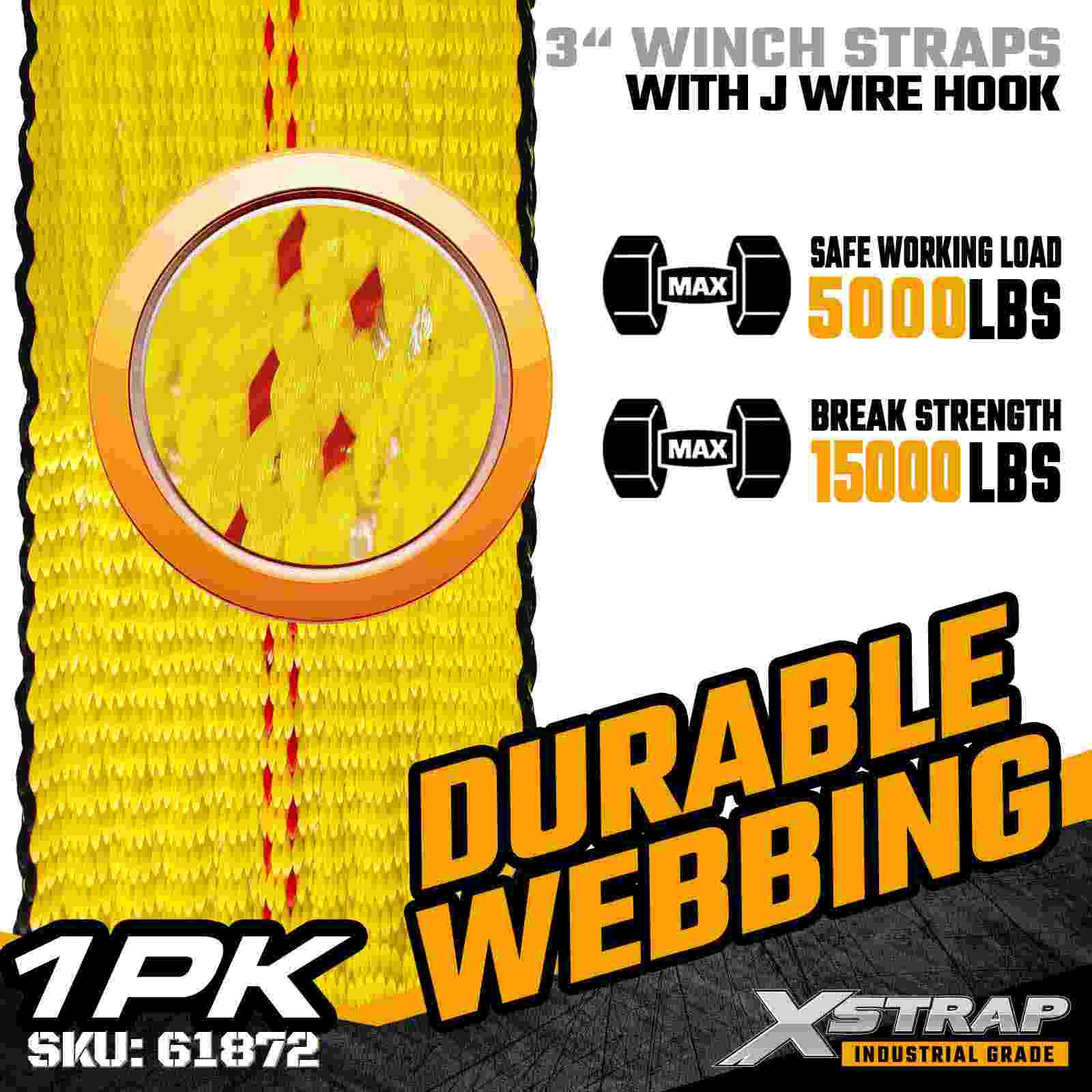 يُعد حزام الونش القياسي Xstrap 61872 مقاس 3 بوصة × 27 قدمًا حلاً آمنًا للحمولة الثقيلة مصممًا للمقطورات المسطحة ووسائل النقل الصناعي. مزود بخطاف سلكي معزز وحزام بوليستر عريض للغاية مقاس 3 بوصة، يوفر حزام الونش مقاس 3 بوصات حد حمل عمل يصل إلى 5000 رطل وقوة كسر تبلغ 15000 رطل. يوفر تصميم الخطاف السلكي خيارات ربط مرنة، مما يجعله مثاليًا للمشغلين الذين يحتاجون إلى السرعة، نقاط اتصال متعددة الاستخدامات أثناء عمليات النقل اليومية.