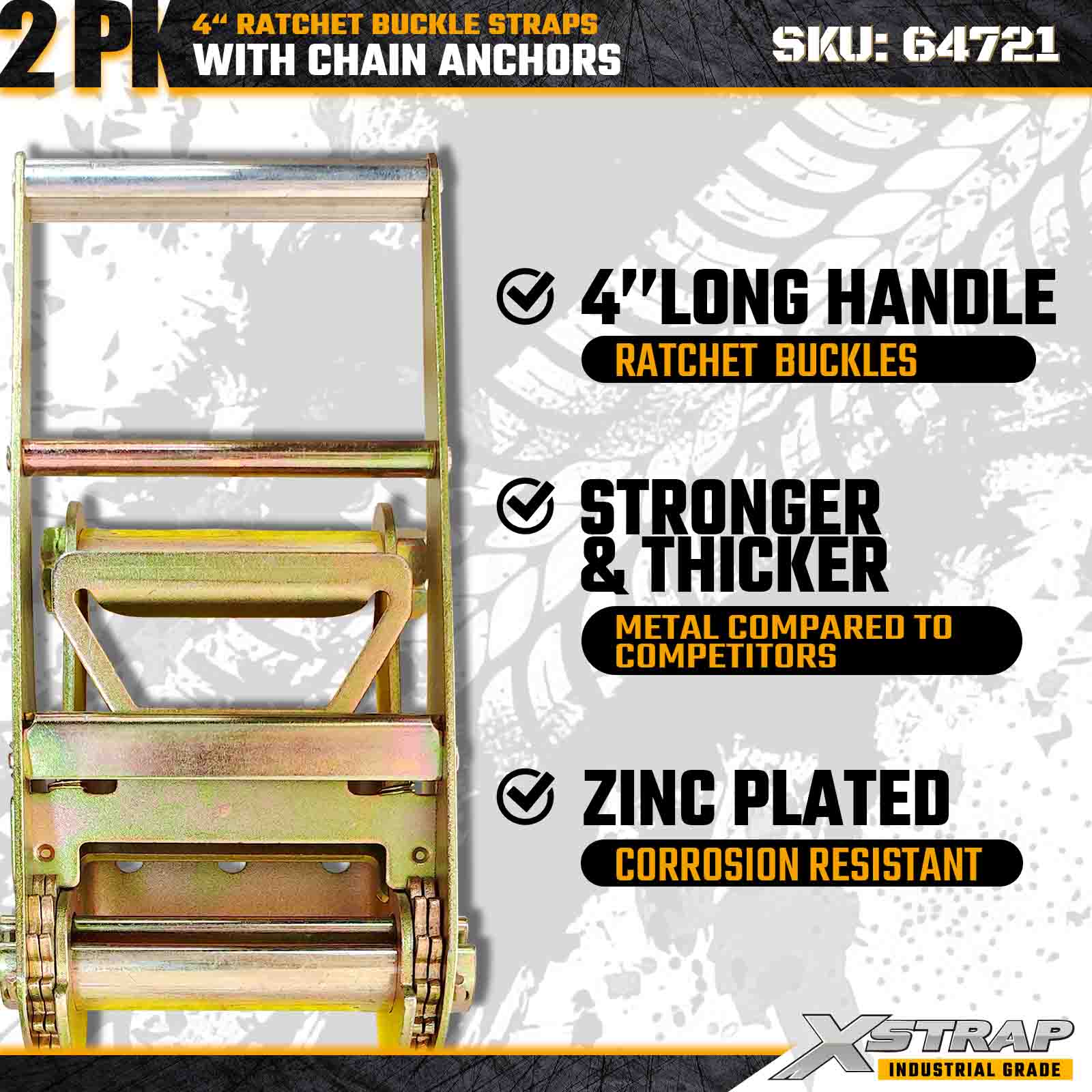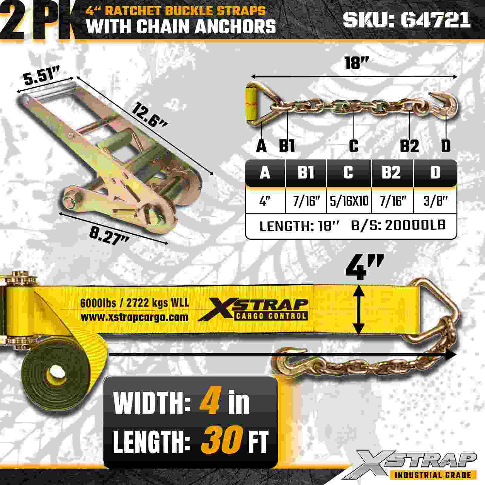 تم تصميم أحزمة Xstrap 64721 مقاس 4 بوصات × 30 قدمًا (عبوة من قطعتين) لتأمين البضائع شديدة التحمل، وتتميز بمثبتات سلسلة متينة وآلية سقاطة معززة. مع حد حمل عمل يصل إلى 6000 رطل وقوة كسر تبلغ 18000 رطل، تعد هذه الأشرطة مثالية للنقل المسطح ونقل الآلات والأحمال الفولاذية وتطبيقات البضائع الصناعية التي تتطلب أقصى قدر من القوة والموثوقية.