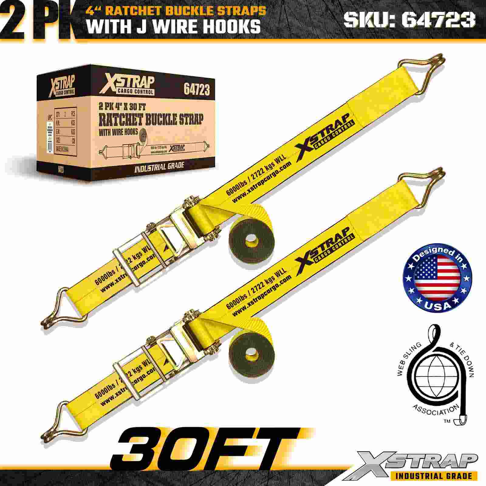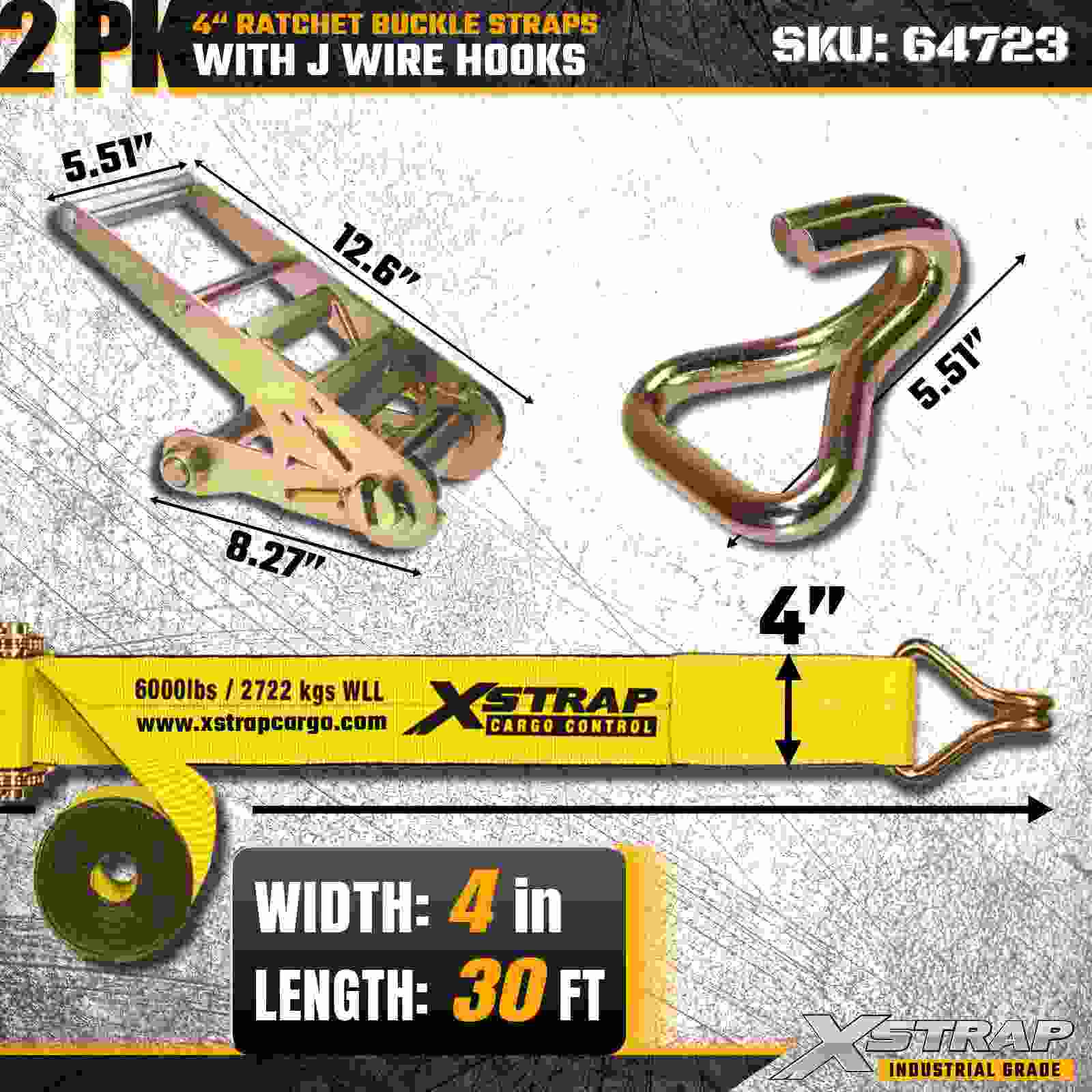 تم تصميم أحزمة Xstrap 64723 مقاس 4 بوصات × 30 قدمًا (عبوة من قطعتين) لتأمين البضائع شديدة التحمل، وتتميز بخطافات سلكية معززة وآلية سقاطة متينة. مع حد حمل عمل يصل إلى 6000 رطل وقوة كسر تبلغ 18000 رطل، تعد هذه الأشرطة مثالية للنقل المسطح ونقل الآلات والخشب والأحمال الفولاذية وتطبيقات البضائع الصناعية.