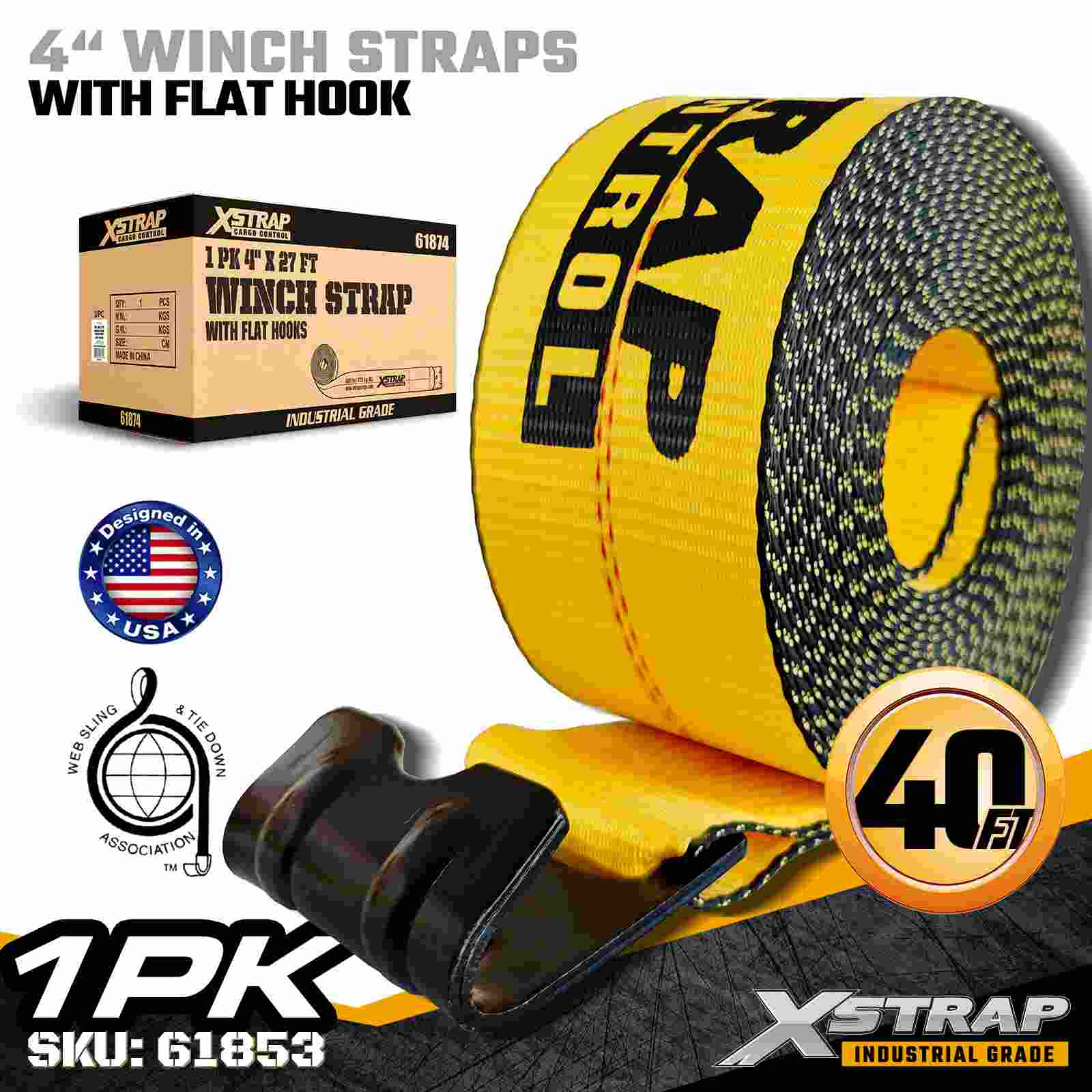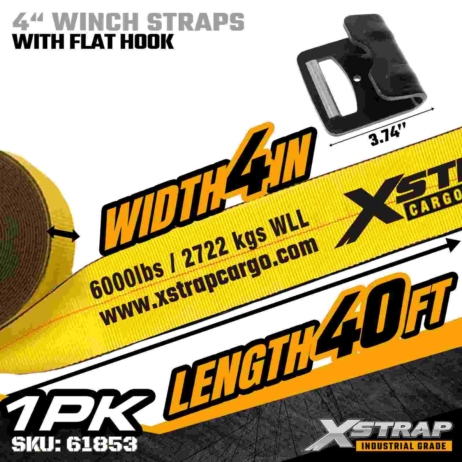 حزام ونش قياسي 4 بوصة × 40 قدم مع خطاف مسطح