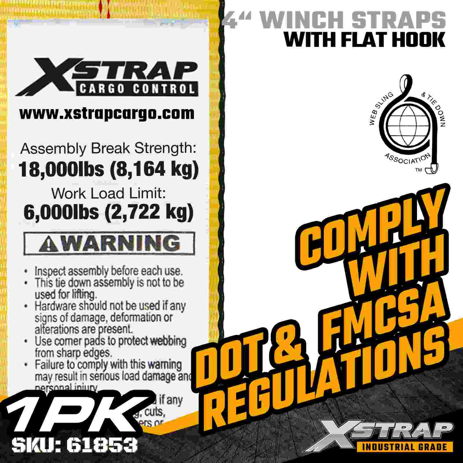 حزام الرافعة القياسي Xstrap 61853 مقاس 4 بوصة × 40 قدمًا عبارة عن حزام أمان عالي السعة وطويل المدى مصمم للمقطورات المسطحة والشحن الصناعي كبير الحجم. يتميز بخطاف مسطح معزز وحزام بوليستر عريض للغاية 4 بوصة، يوفر حزام الرافعة هذا مقاس 4 بوصة حد حمل عمل يصل إلى 6000 رطل وقوة كسر 18000 رطل. يوفر الطول الإضافي البالغ 40 قدمًا وصولاً استثنائيًا للتأمين الأحمال العريضة أو الطويلة أو غير المنتظمة التي تتطلب أقصى قدر من التغطية والثبات.
