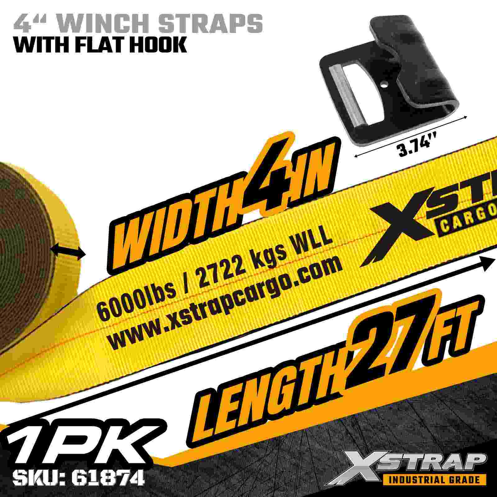 حزام ونش قياسي 4 بوصات × 27 قدمًا مع خطاف مسطح
