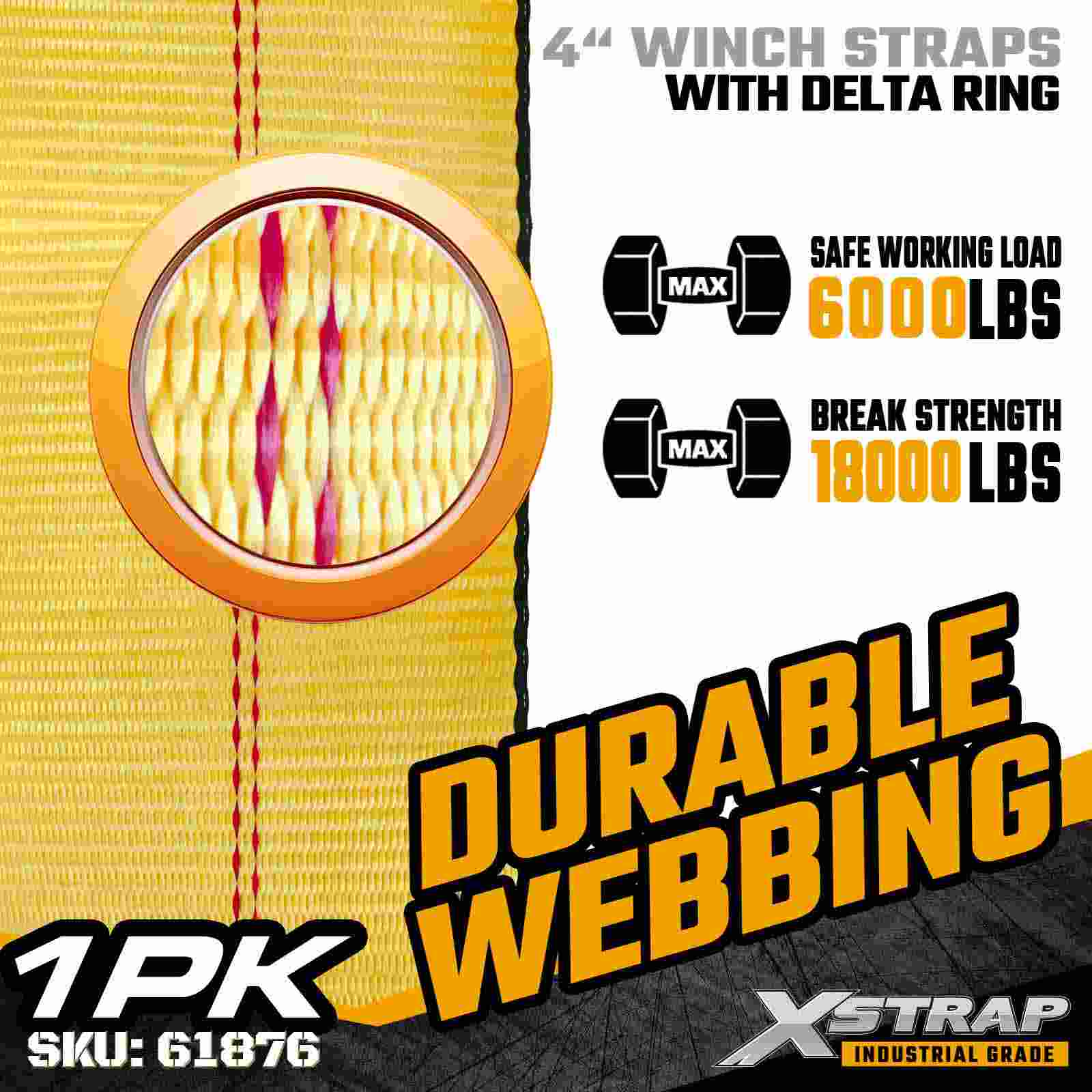 حزام ونش قياسي مقاس 4 بوصات × 27 قدمًا مع حلقة دلتا