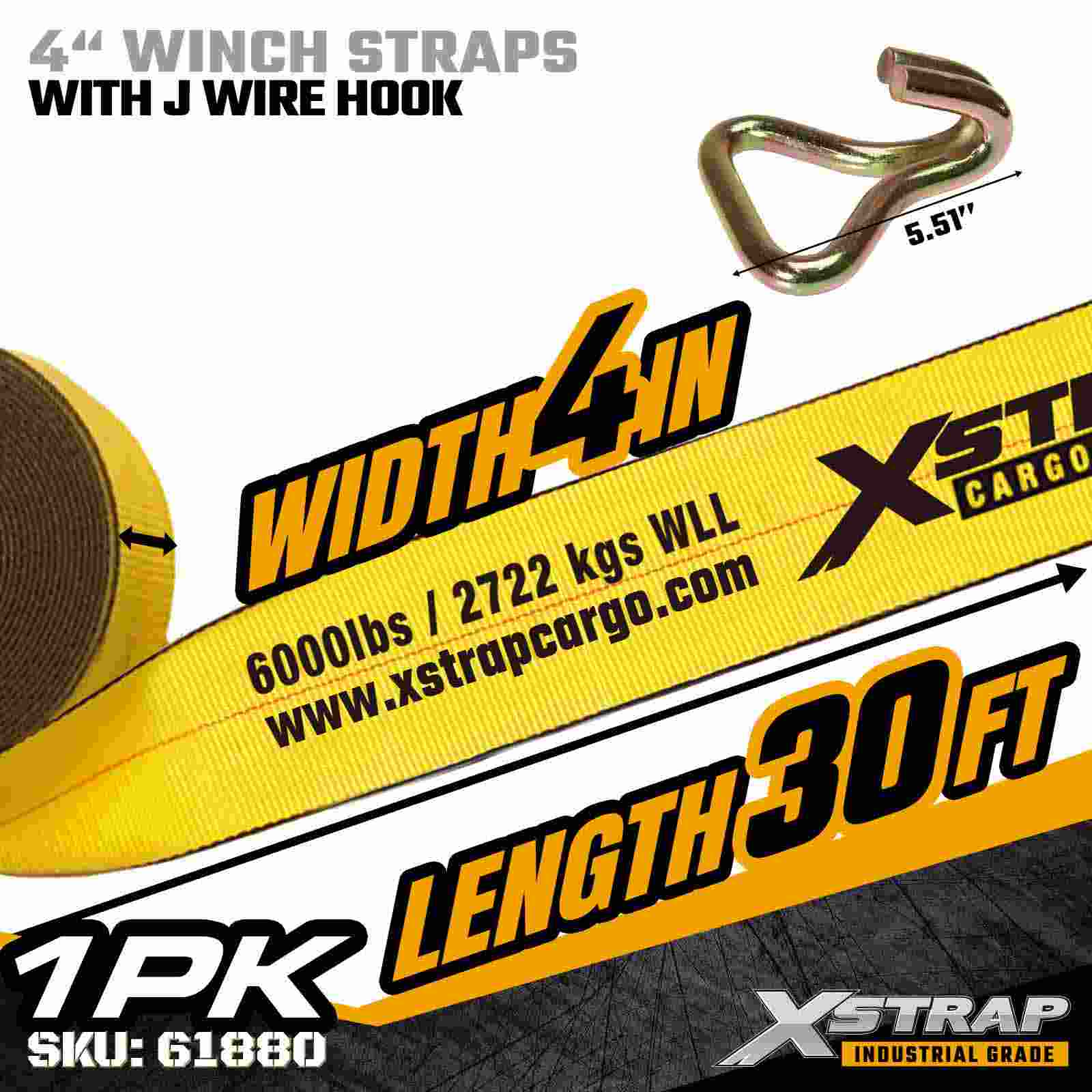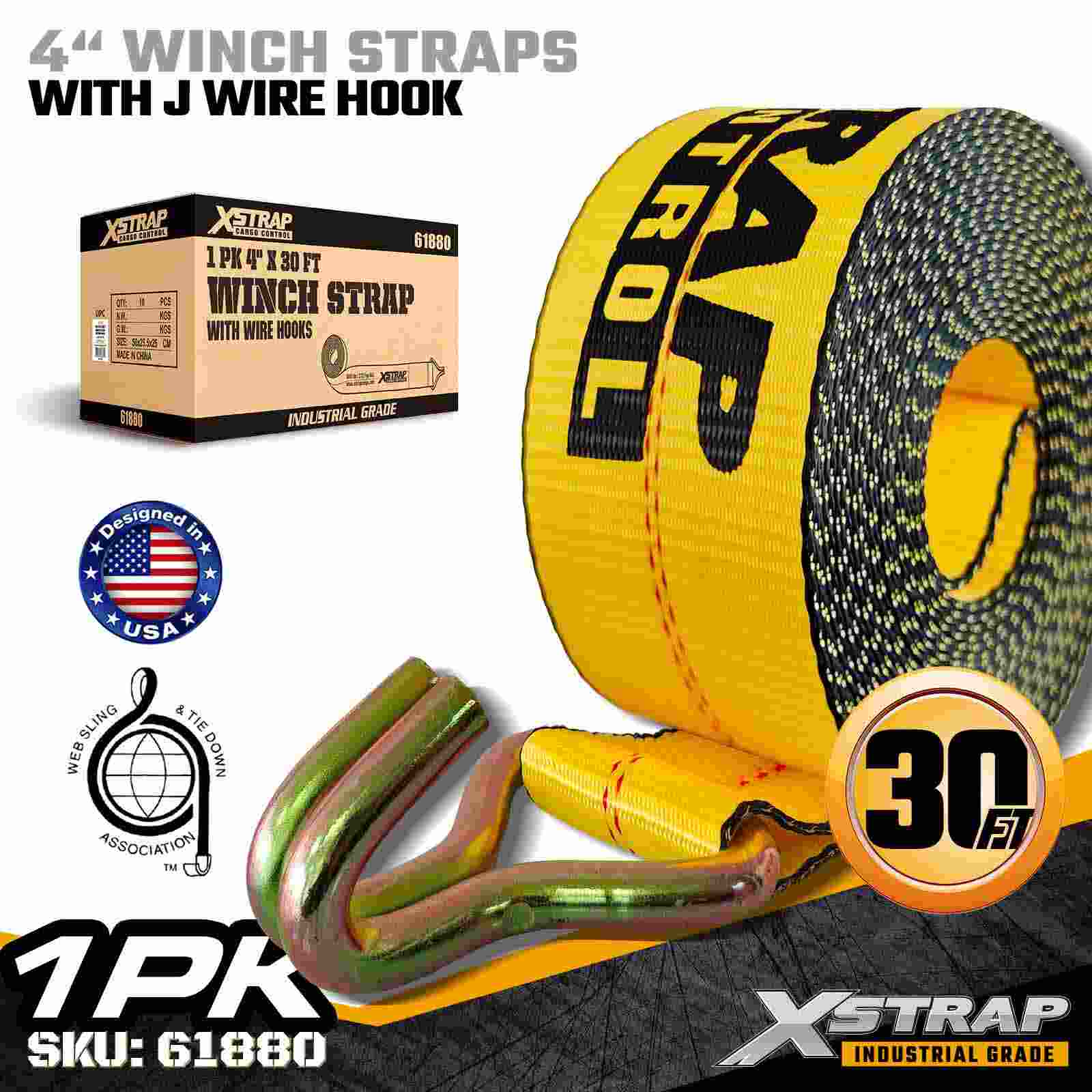 حزام ونش قياسي 4 × 30 قدم مع خطاف سلكي