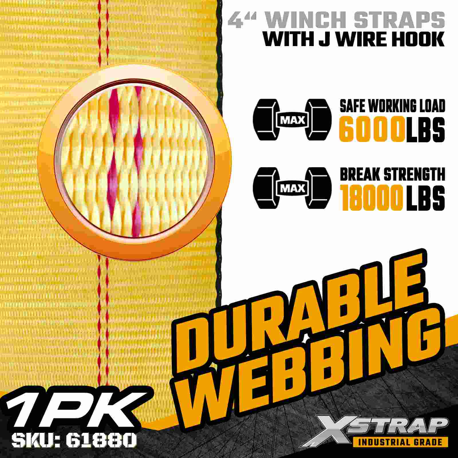 حزام الرافعة القياسي Xstrap 61880 مقاس 4 بوصات × 30 قدمًا عبارة عن حزام أمان عالي السعة وطويل المدى مصمم للمقطورات المسطحة والشحن الصناعي كبير الحجم. يتميز بخطاف سلكي معزز وحزام بوليستر عريض للغاية مقاس 4 بوصات، يوفر حزام الرافعة مقاس 4 بوصات حد حمل عمل يصل إلى 6000 رطل وقوة كسر تبلغ 18000 رطل. يوفر الطول الممتد 30 قدمًا إمكانية الوصول والمرونة الإضافية، مما يجعله مثالية لتأمين الأحمال العريضة أو الطويلة أو ذات الأشكال غير المنتظمة التي تتطلب خيارات تثبيت قابلة للتكيف.