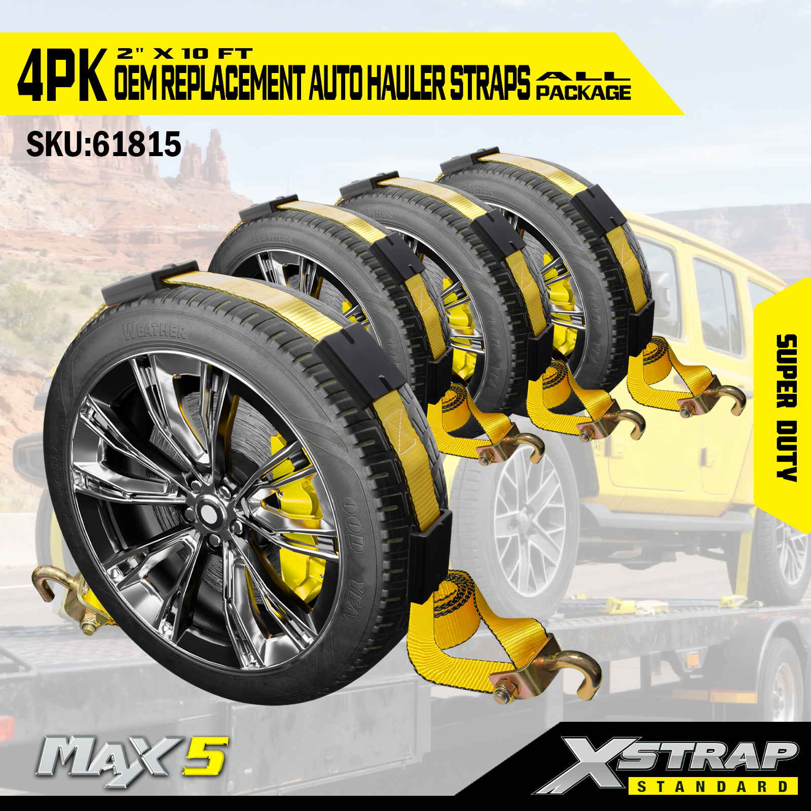 أحزمة Xstrap لشاحنات نقل السيارات شديدة التحمل بقوة 6.600 رطل - أشرطة ربط للإطارات للمقطورات، وربطات عنق على العجلة مع مرابط مطاطية لسيارات الدفع الرباعي والشاحنات وATV وUTV