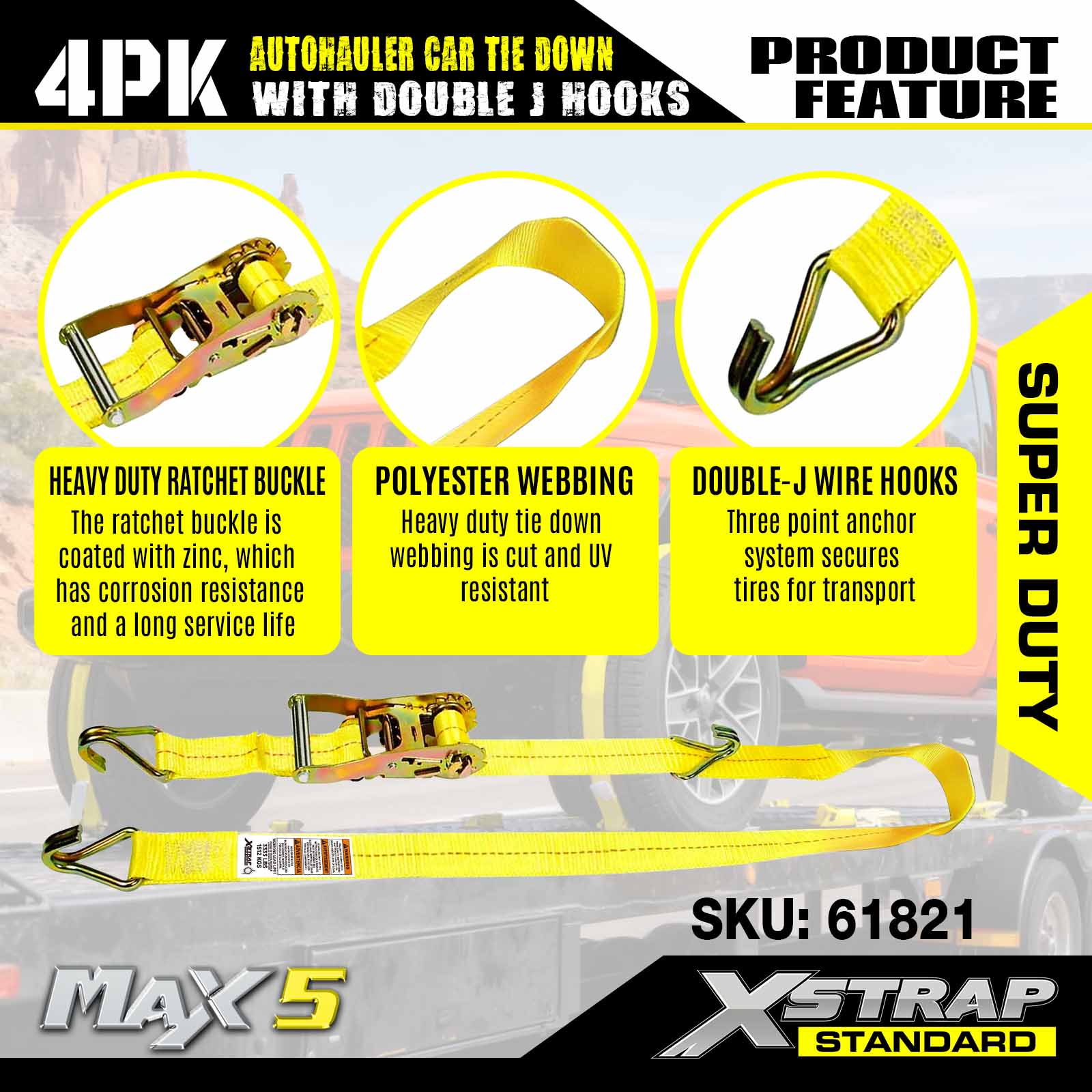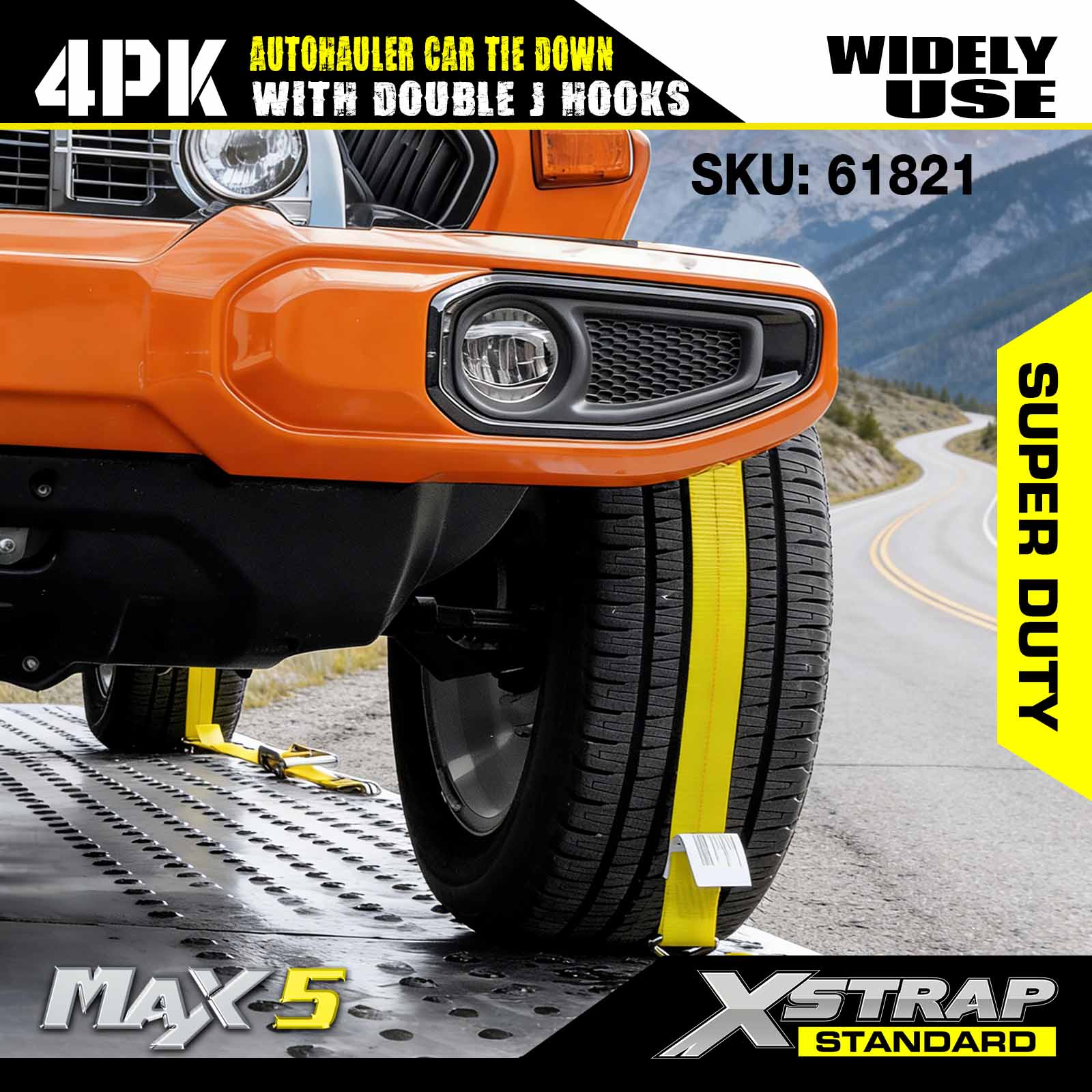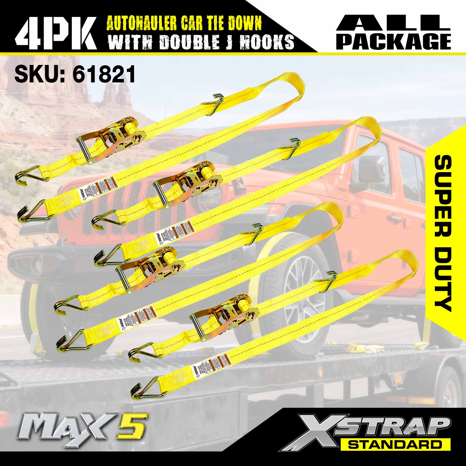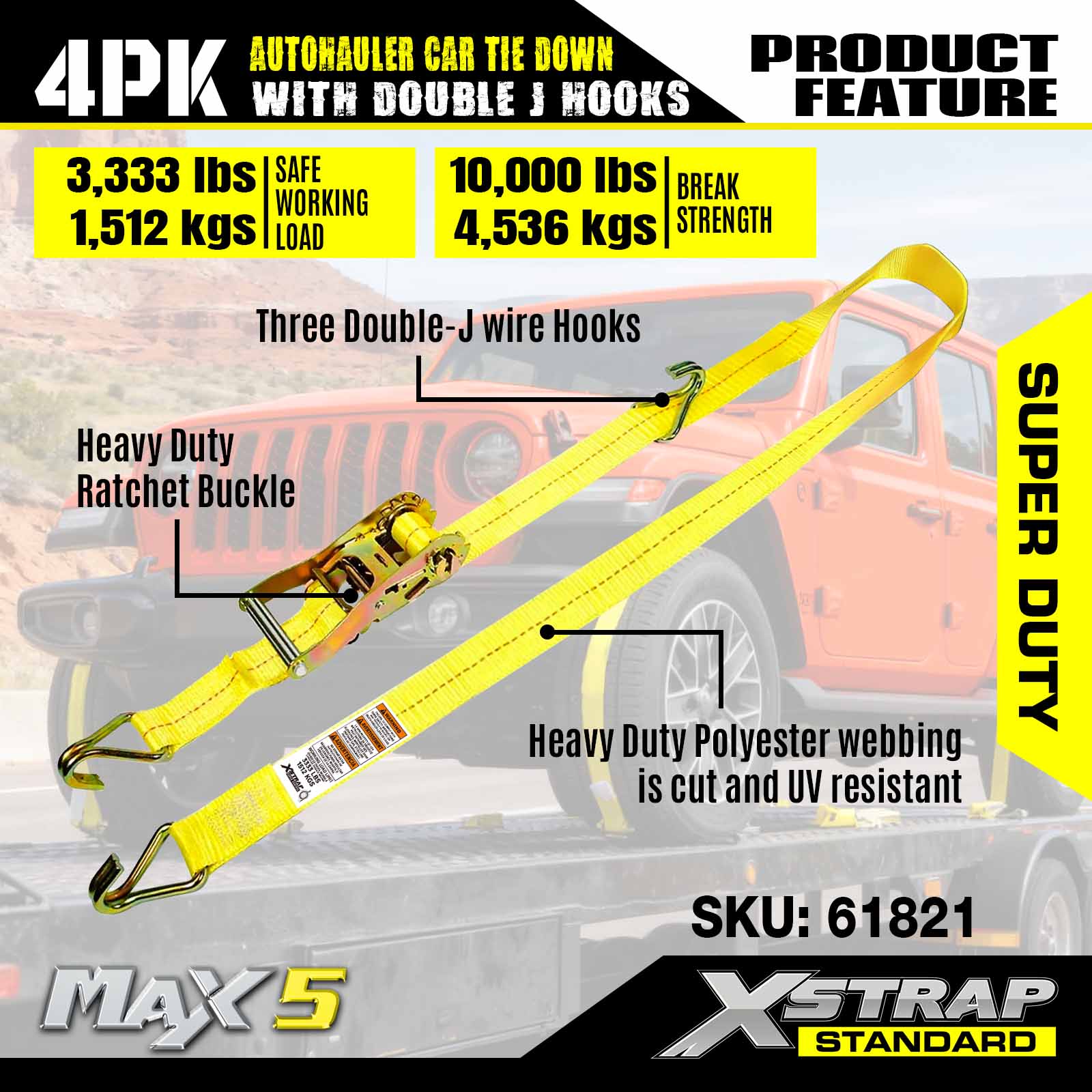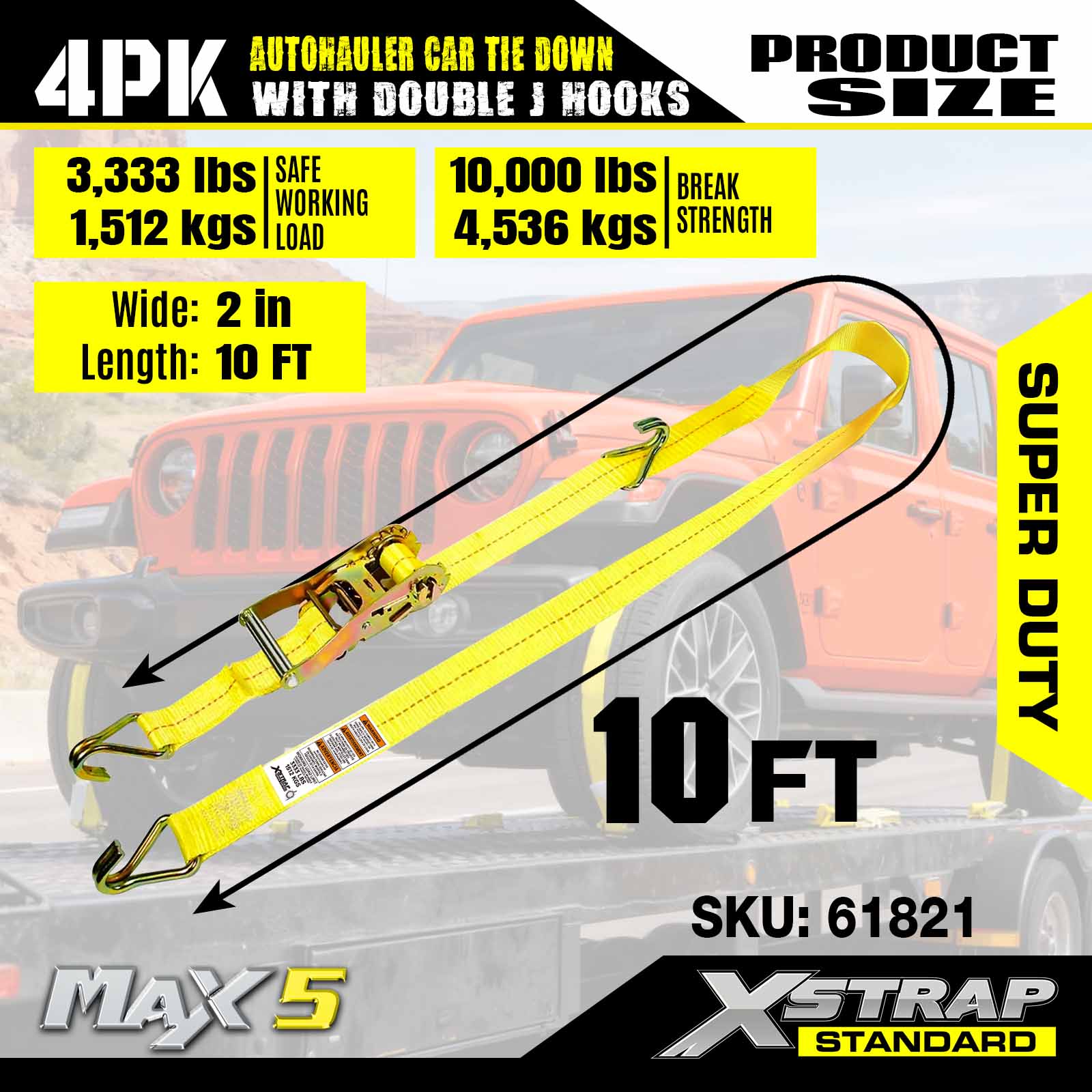 أحزمة Xstrap لشاحنات نقل السيارات شديدة التحمل بقوة 10.000 رطل - أشرطة ربط للإطارات للمقطورات، وربطات عنق على العجلة مع مرابط مطاطية لسيارات الدفع الرباعي والشاحنات وATV وUTV