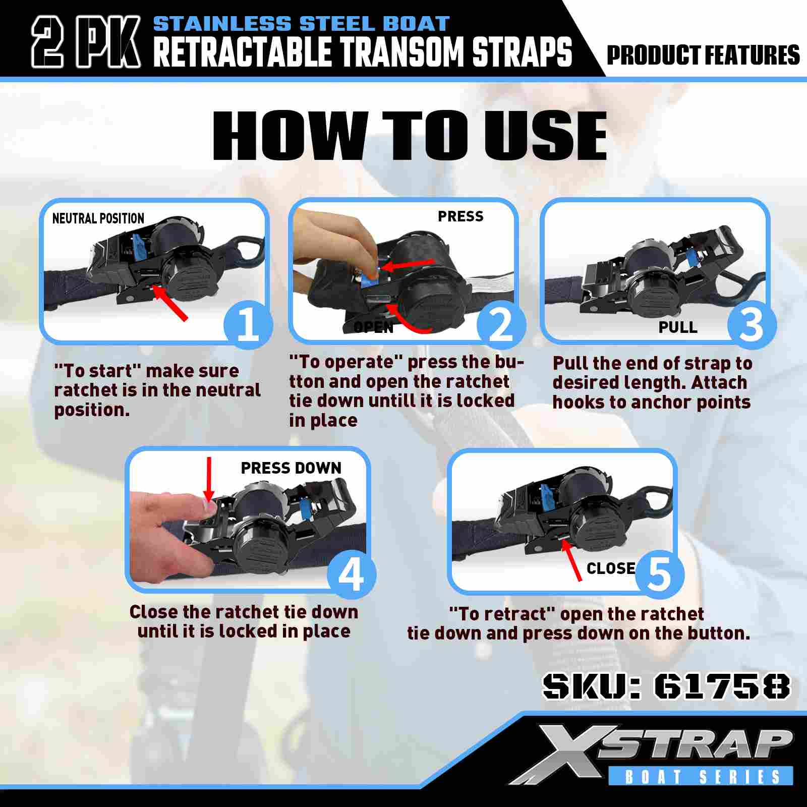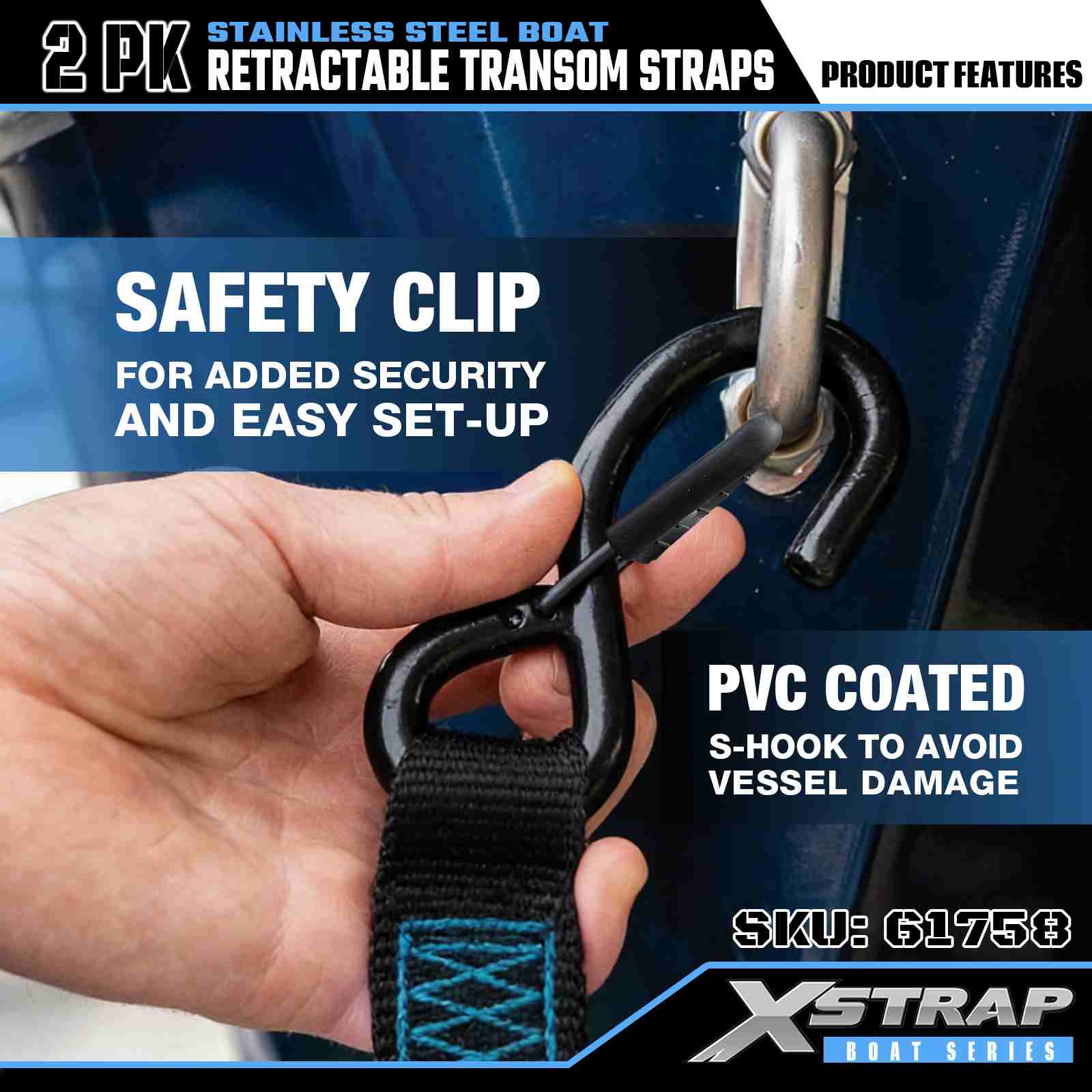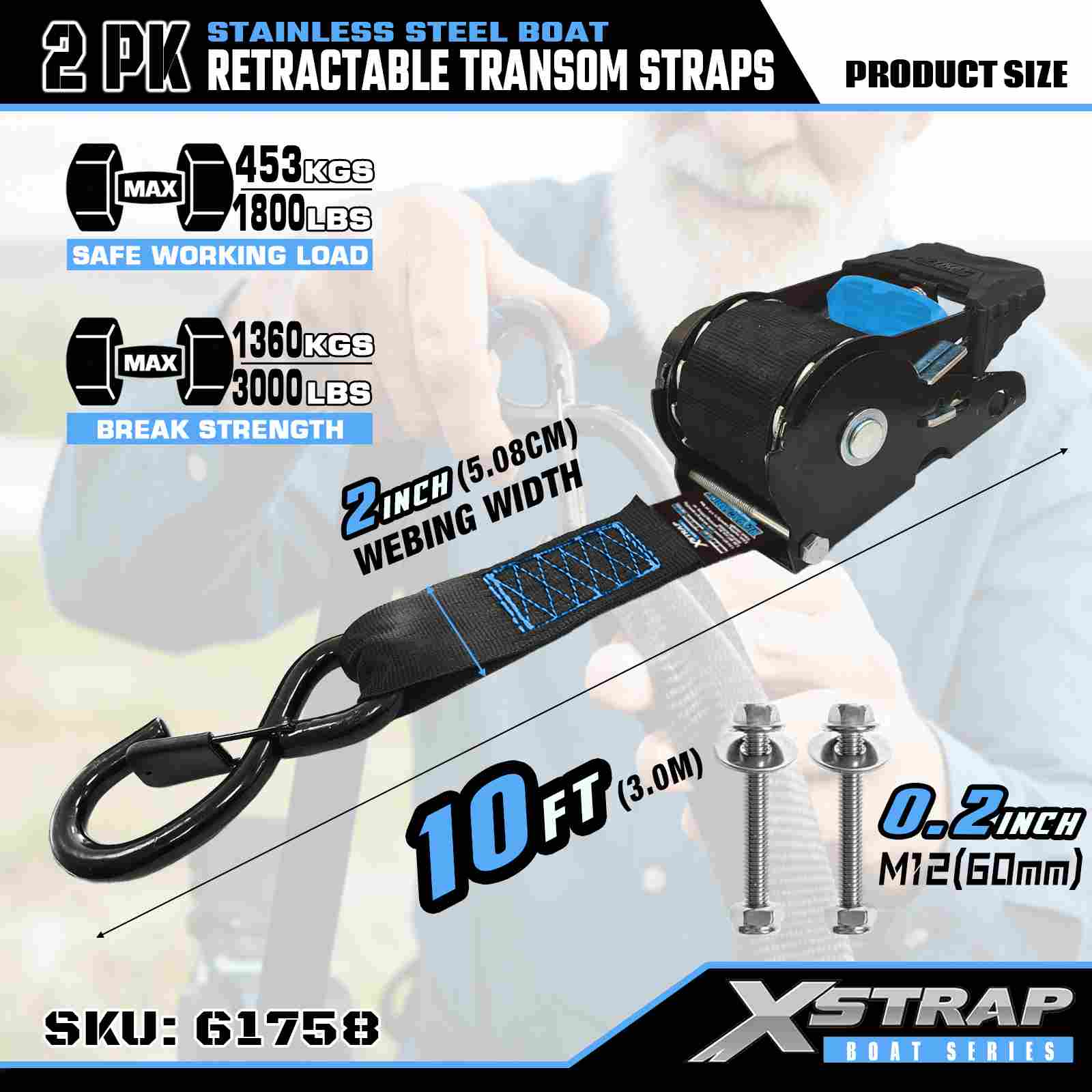 Xstrap 2PK حزام رافدة قابل للسحب للقارب مع خطافات أمان S، حزام ربط سفلي من البوليستر مقاس 2 × 3.6 بوصة، حزام قابل للسحب، أشرطة تأمين لربط البضائع بسعة 1000 رطل مع خطاف أمان على شكل S للمحترفين الجاد لتأمين مقطورة البضائع، مقطورة سرير مسطحة، قارب تزلج، سيارة صغيرة.