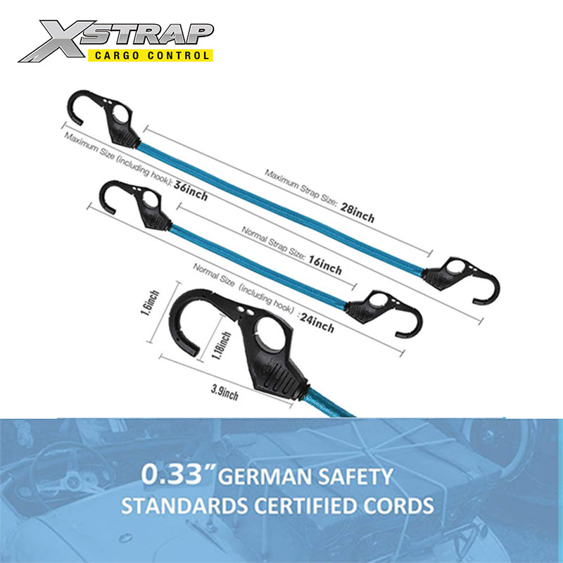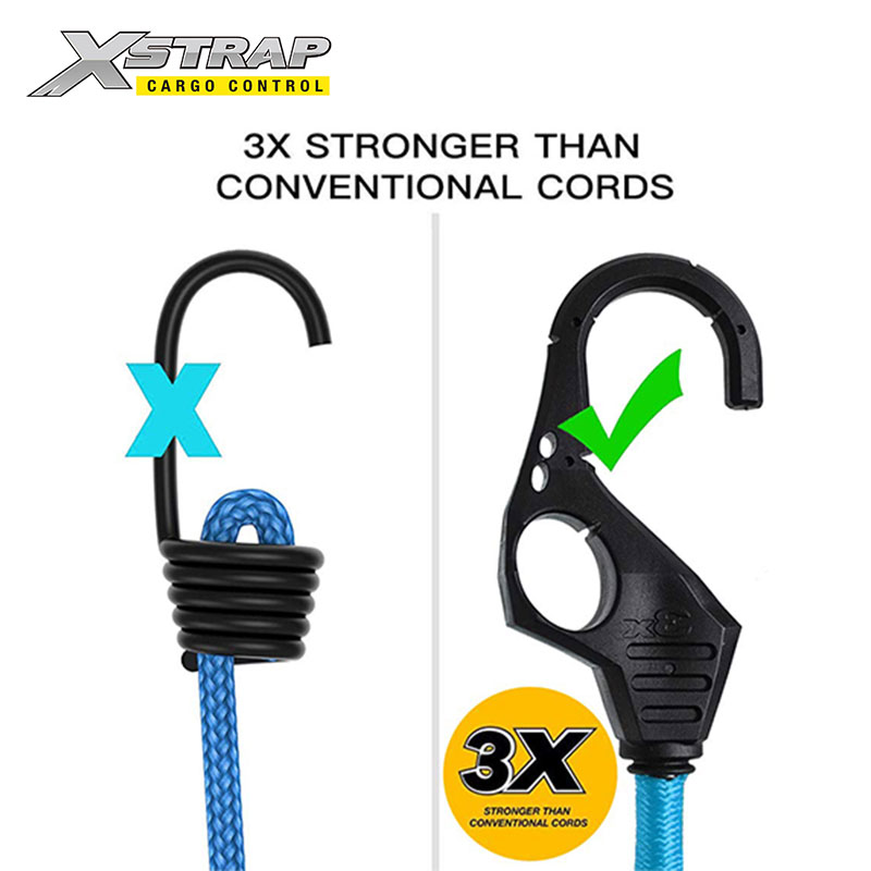 وفي الوقت نفسه، تتمتع الخطافات بقوة 3 مرات من خطافات الحبال المطاطية العادية. لذلك ليس من السهل كسرها. إنها أكثر أمانًا من أسلاك البنجي الأخرى.