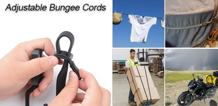 توفر الحبال المطاطية القابلة للتعديل ثباتًا معززًا وتقليل الميل إلى الحفر في الأشياء. إنها متعددة الاستخدامات ومناسبة لمجموعة واسعة من التطبيقات، بما في ذلك المعدات، أو تنظيم التخزين، أو ربط الأمتعة أو الأقمشة، أو المعدات الخارجية الآمنة، أو الحديقة، أو المرآب، أو تطبيقات السفر.