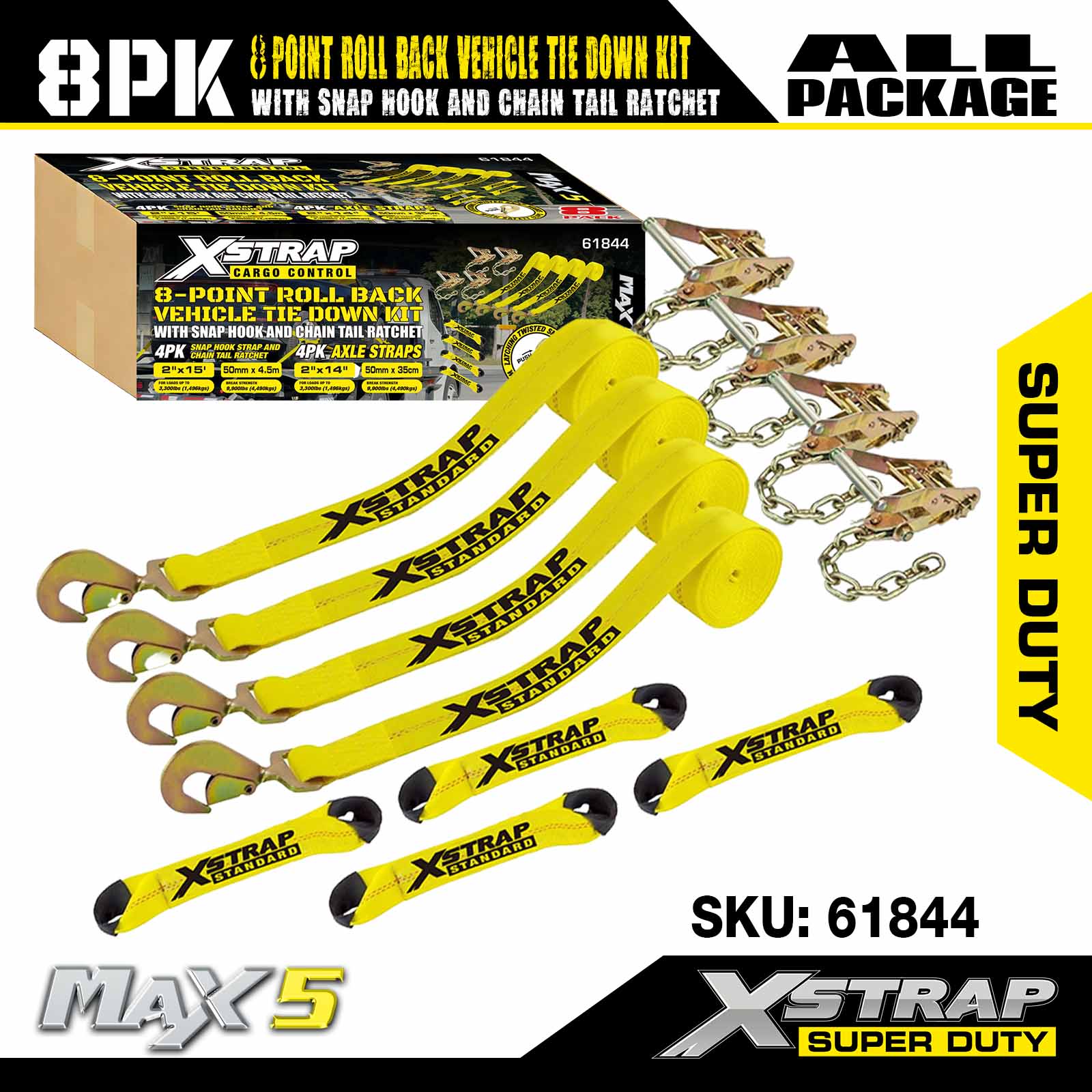 - حزام ربط شديد التحمل - حزام Xstrapclassic ذو ربطة عنق صفراء متين ومقاوم للقطع ومعالج لمقاومة الأشعة فوق البنفسجية. يتميز حزام البوليستر بنمط نسج خاص يضيف القوة، مما يوفر وزنًا يصل إلى 10,000 رطل. قدرة الكسر، وهي أعلى بكثير من حزام الربط التلقائي القياسي.