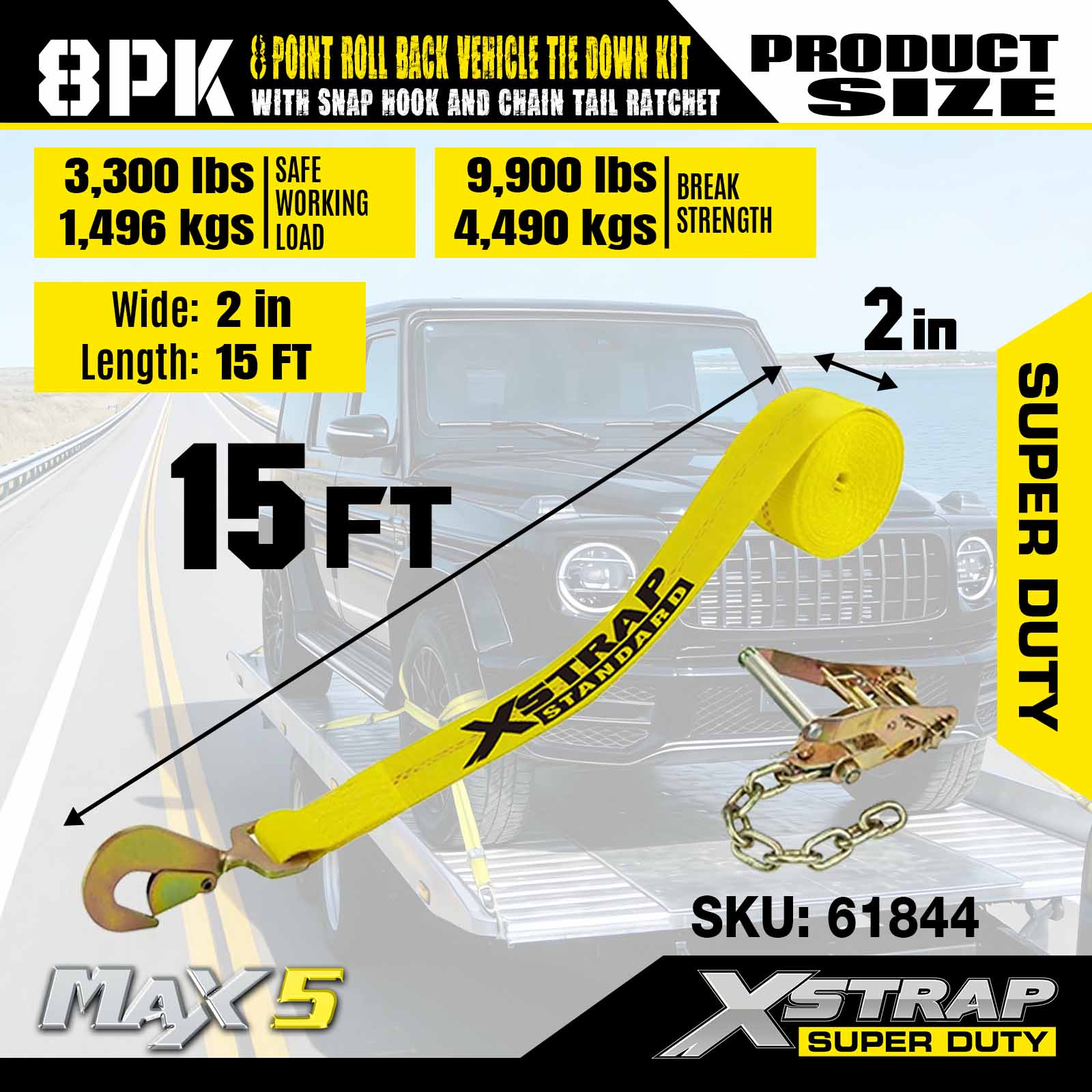 طقم ربط السيارة للخلف مقاس 2 × 114 قدمًا مكون من 8 نقاط