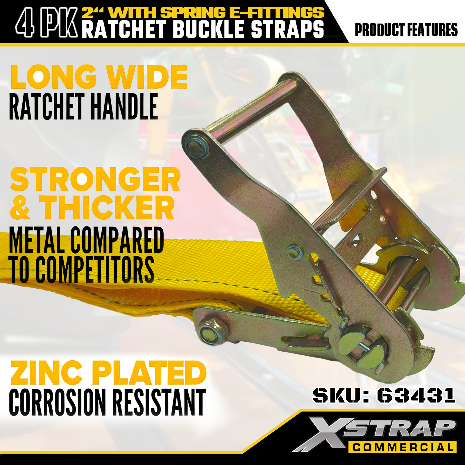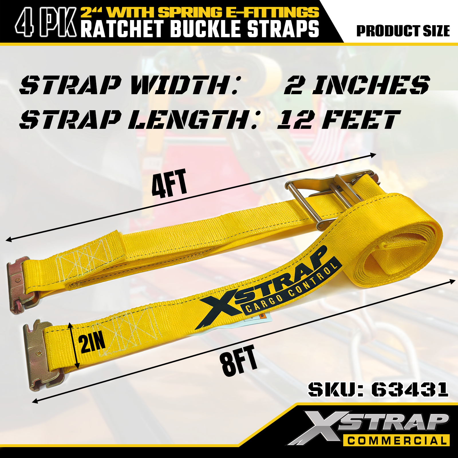 Xstrap 4 عبوات من أشرطة ربط السقاطة، 2 بوصة × 12 بوصة من البوليستر لتأمين البضائع، 1467 رطلًا من حمل العمل الآمن و4401 رطلًا من قوة الكسر، مع خطافات معدنية للشاحنة والجزازة والمركبات الرباعية
