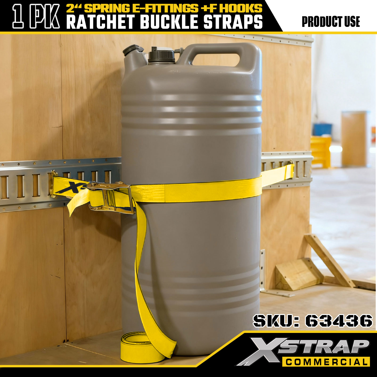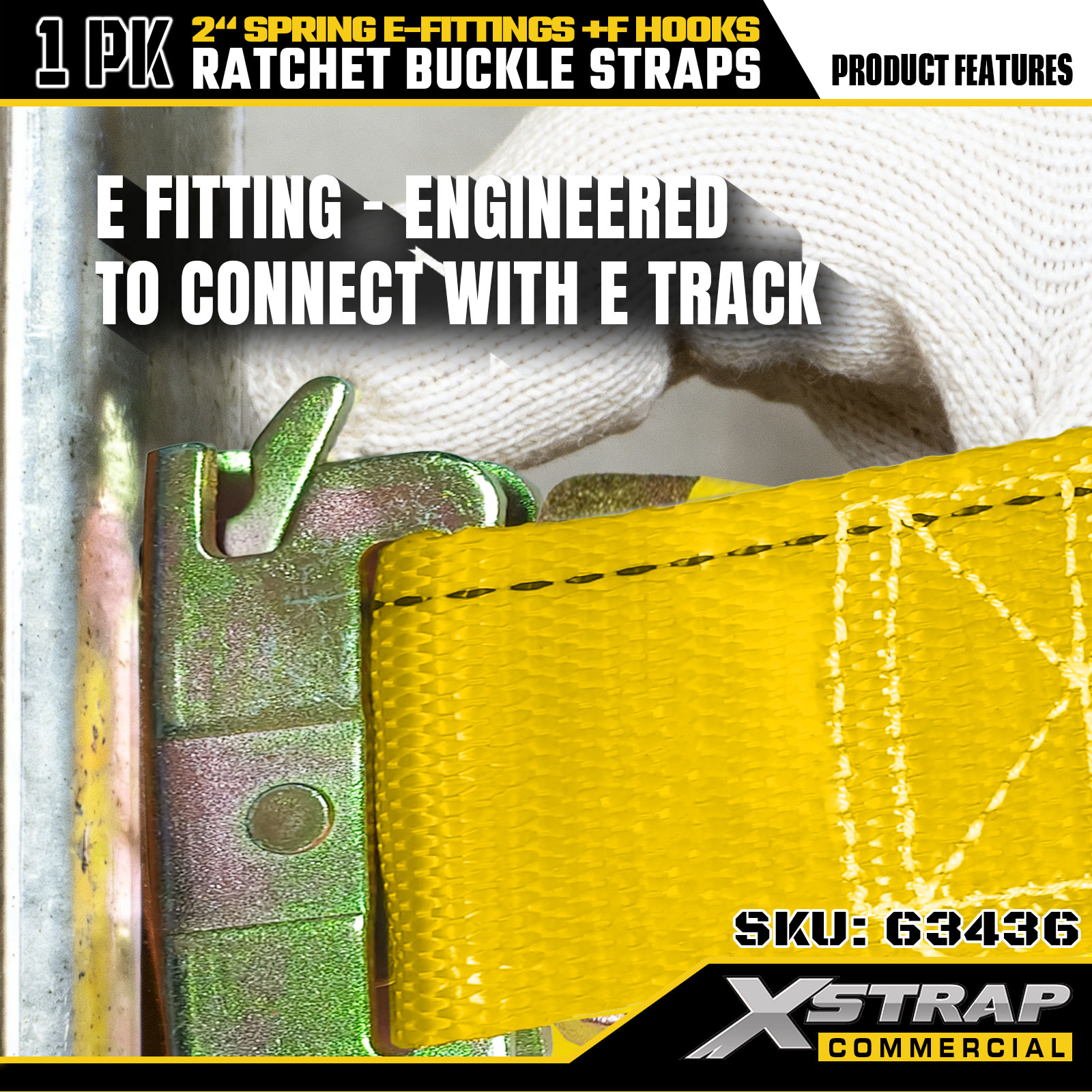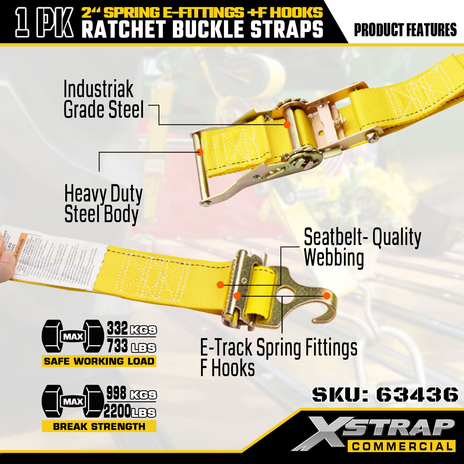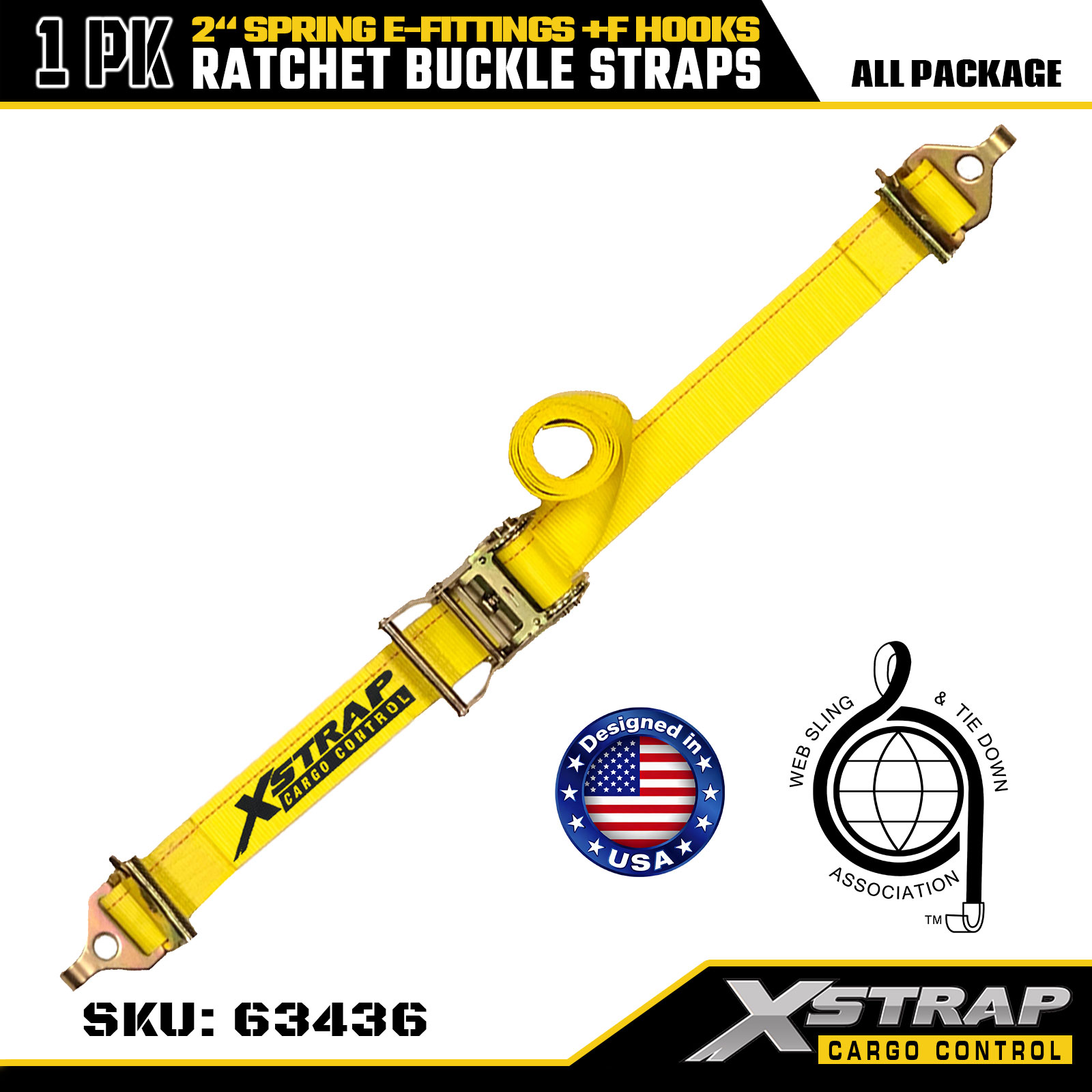 Xstrap 1-Pack Tie-Down Ratchet Straps، 2 "× 12" ربط البضائع الثقيلة مع تركيبات زنبركية وخطافات F (أصفر)، سعة 733 رطلاً للمقطورات والشاحنات والشاحنات الصغيرة وتأمين الدراجات النارية