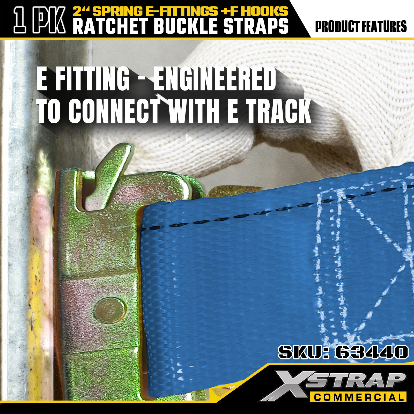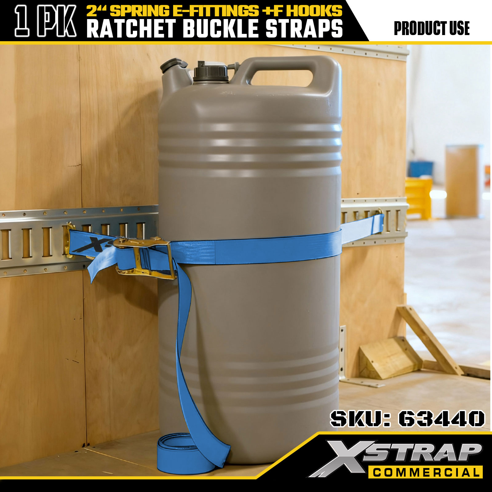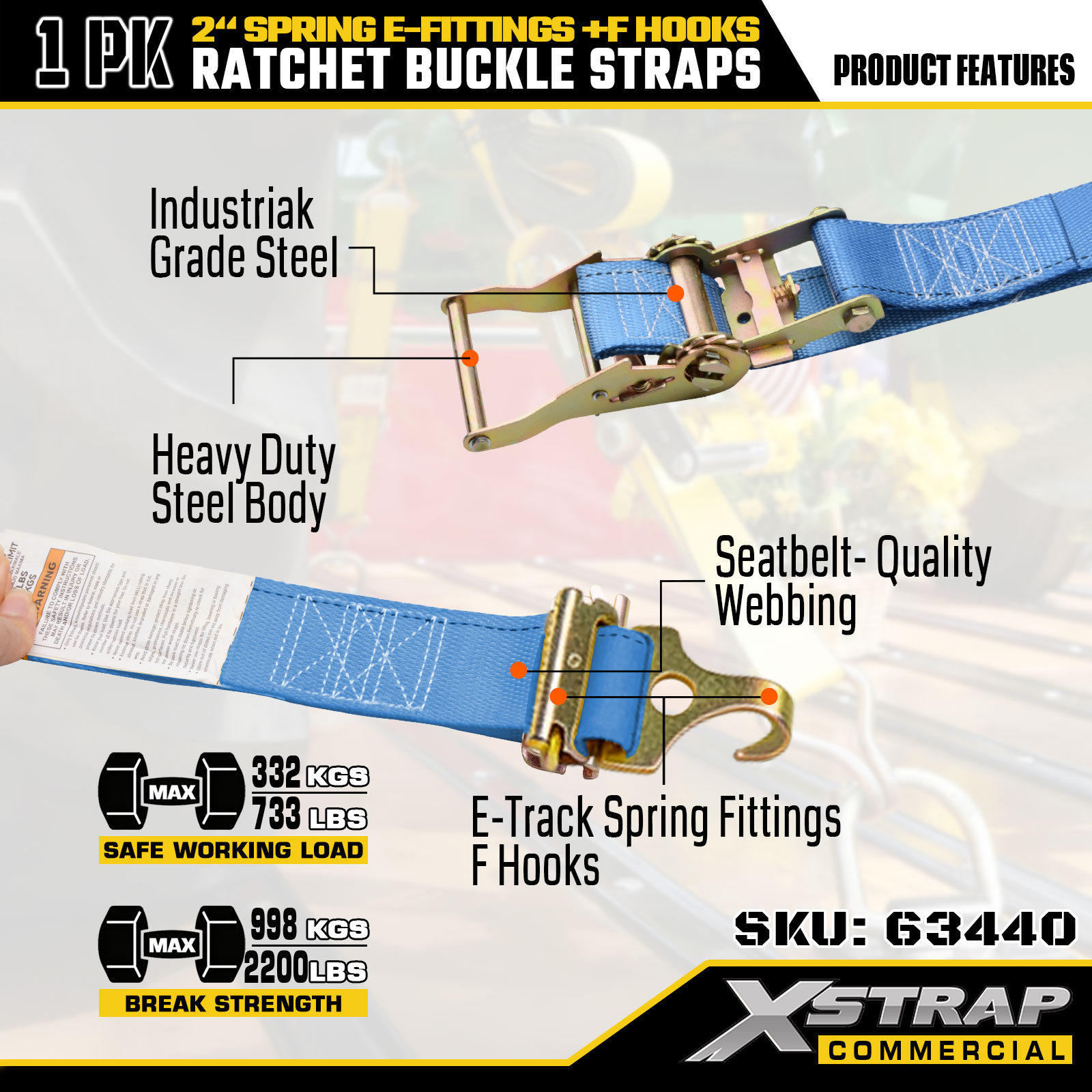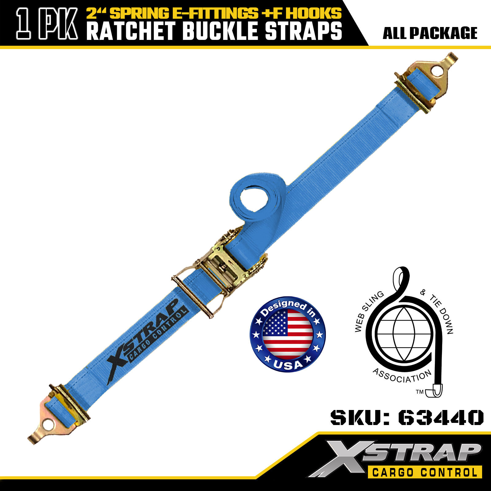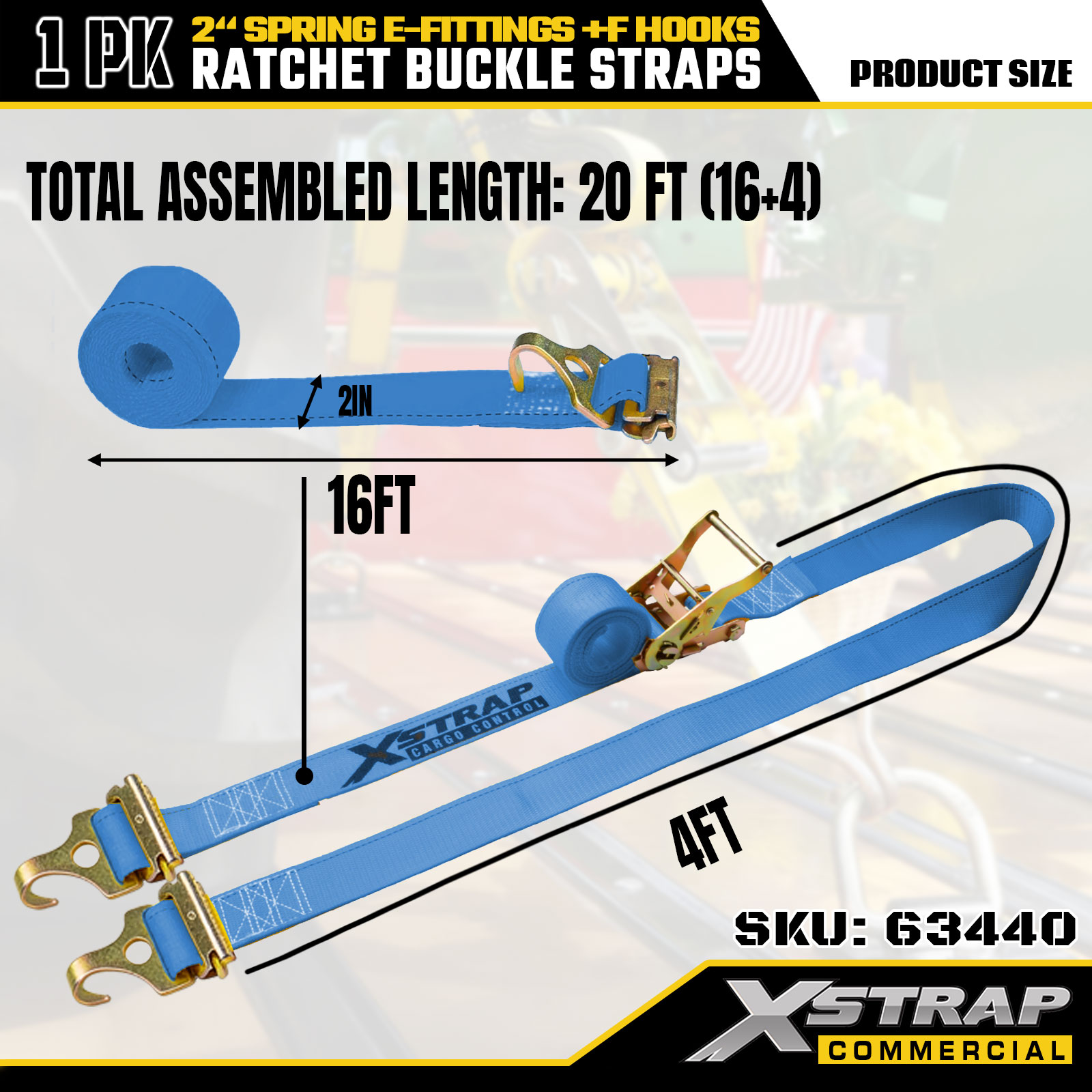 Xstrap 63440 حزام سقاطة عالي التحمل 2 بوصة × 20 بوصة (1PK) - حزام أزرق، تركيبات زنبركية وخطافات F، 733 رطلًا SWL للحركة ونقل البضائع واستخدام الشاحنات