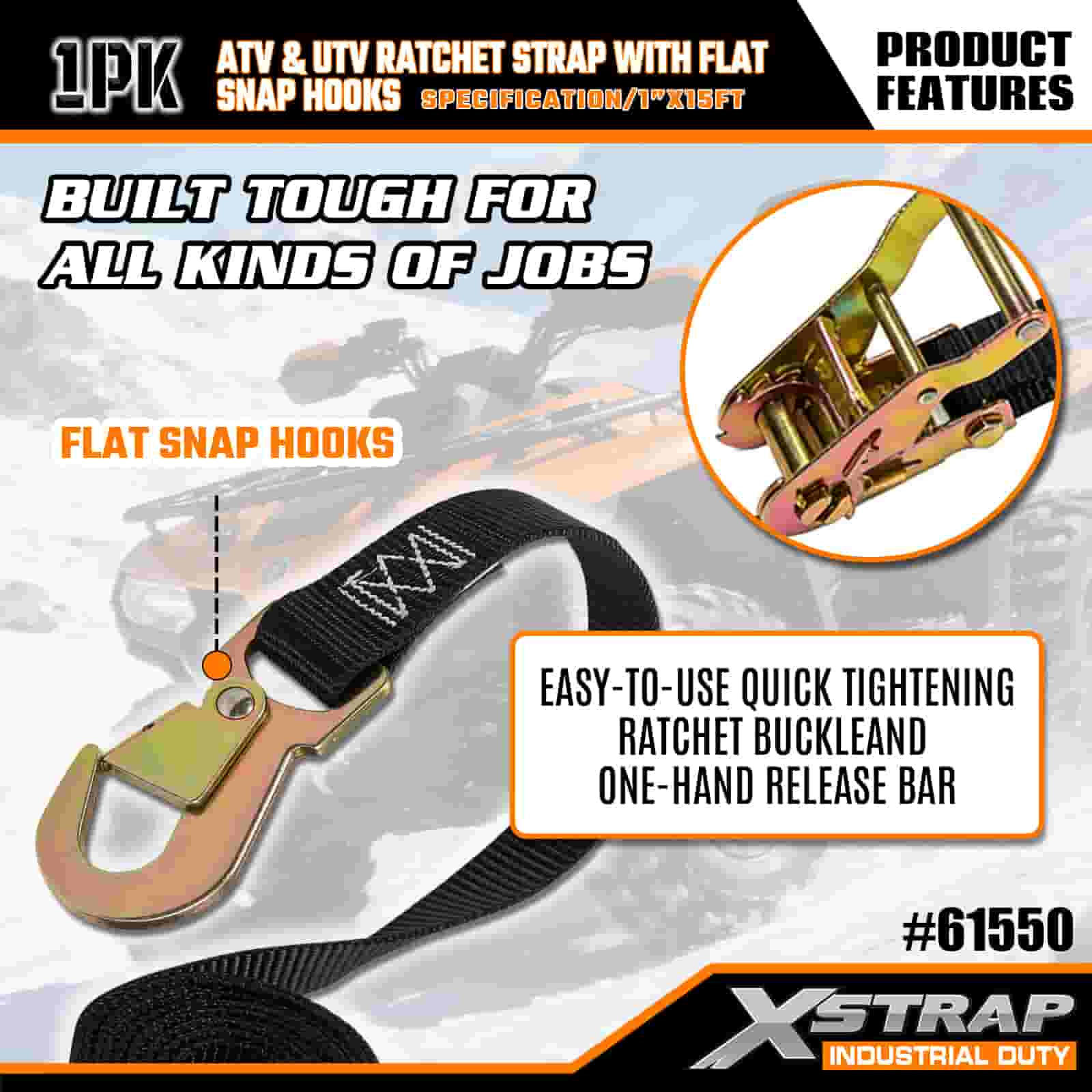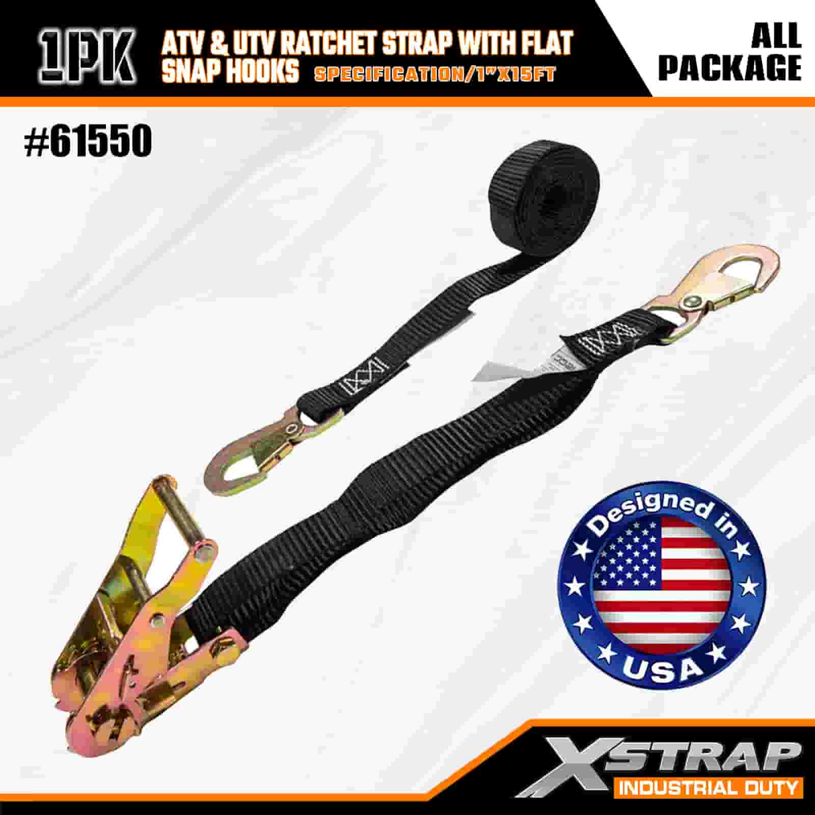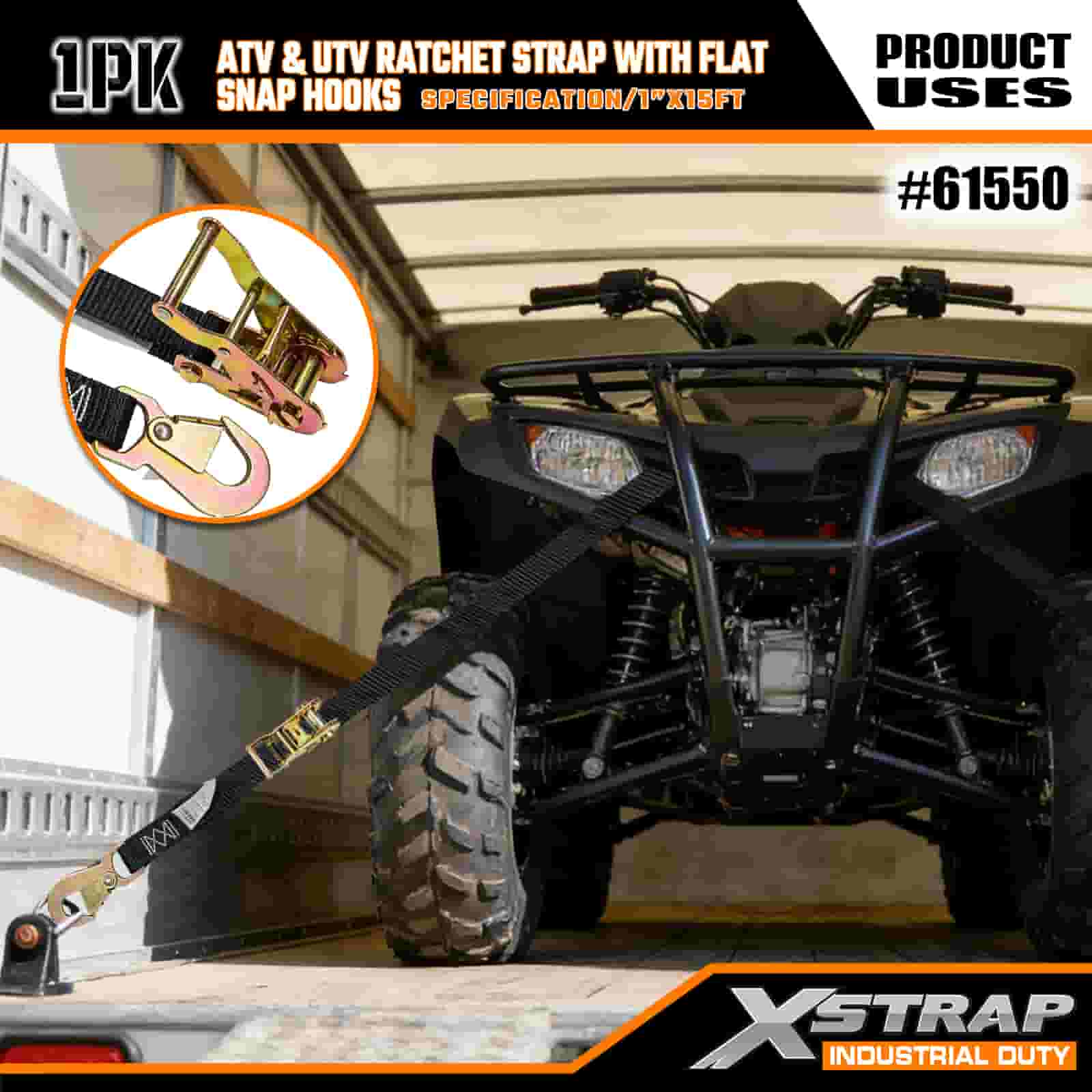 حزام سقاطة Xstrap ATV وAUV مع خطافات مسطحة، وحزام سقاطة من البوليستر مقاس 1 × 15 بوصة، وأشرطة تثبيت البضائع بسعة 1000 رطل مع مشبك مسطح للمقطورة، وقارب تزلج بمقطورة مسطحة، وسيارة صغيرة، ومعدات ثقيلة.