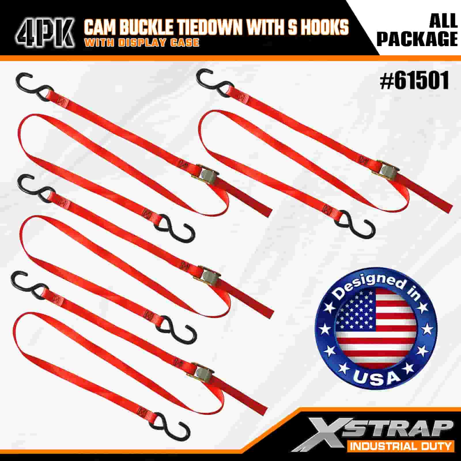 - عبوة عملية مكونة من 4 قطع مع علبة عرض: تُباع في مجموعة مكونة من 4 قطع (مع عبوة عرض) لاستخدام الدفعة، ويبلغ قياس كل حزام 2 بوصة عرضًا × 6 أقدام طولًا وهو مثالي لتأمين عناصر مثل قوارب الكاياك أو المعدات الخارجية أو البضائع.