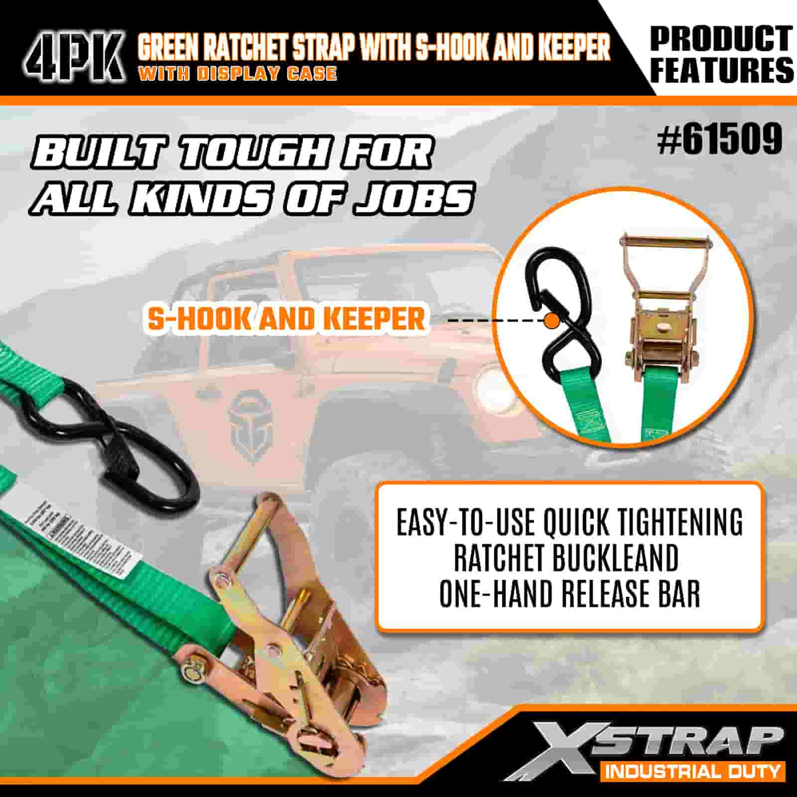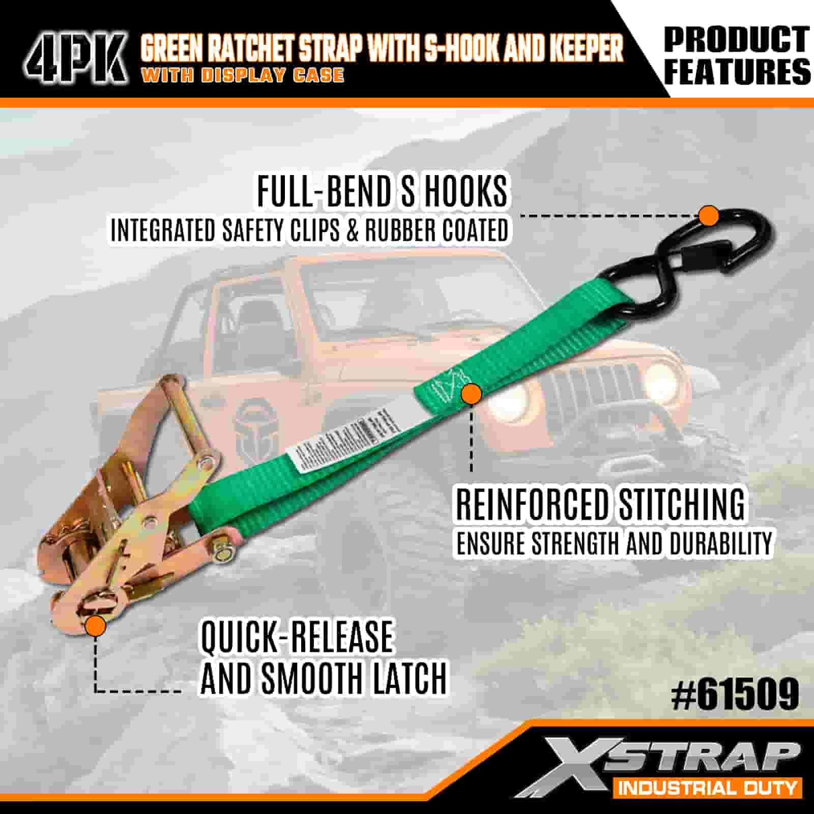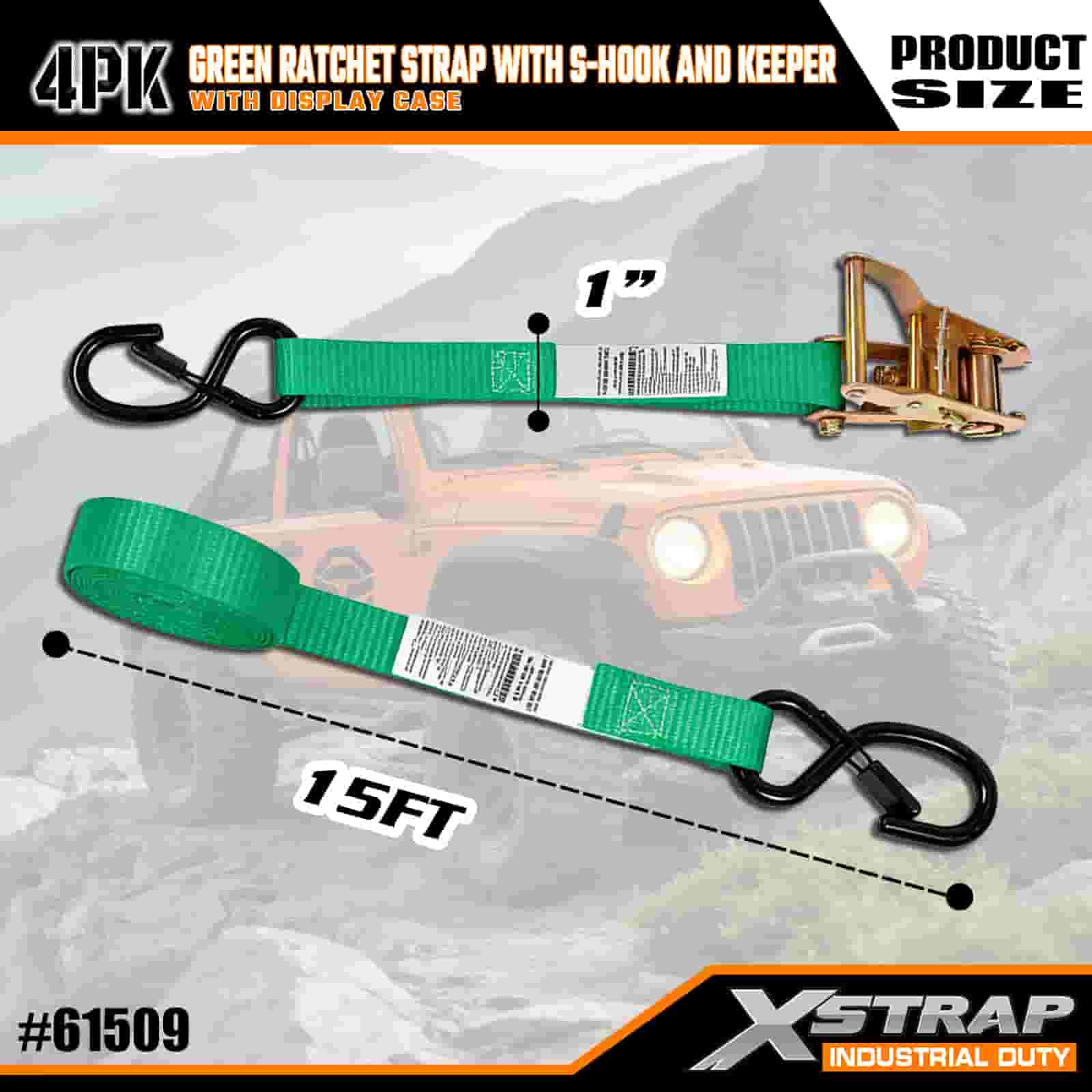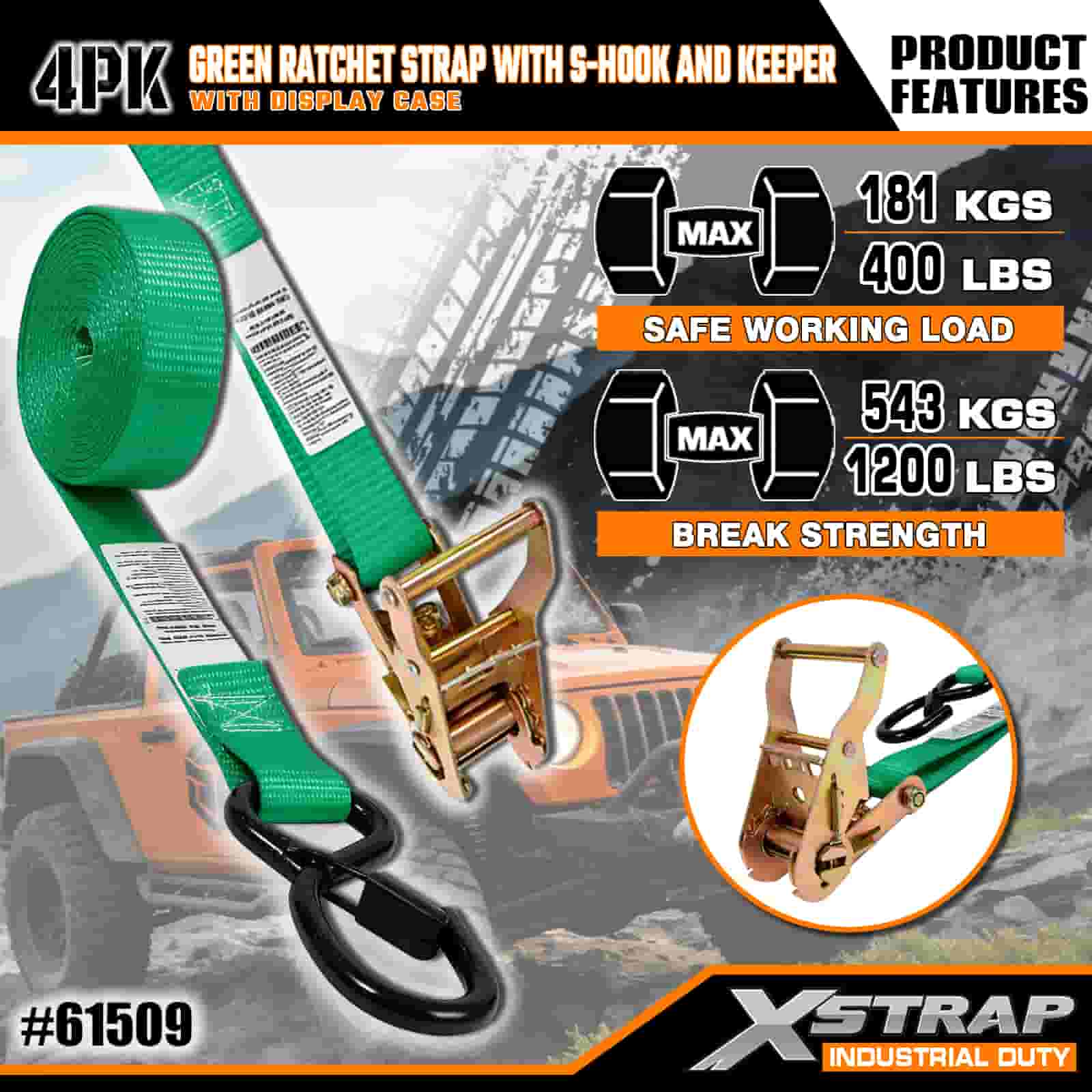 Xstrap 4 عبوات من أشرطة السقاطة مع خطافات أمان على شكل حرف S، وحزام سقاطة للسحب من البوليستر مقاس 1 × 15 بوصة، وأشرطة تثبيت لربط البضائع بسعة 400 رطل مع خطافات أمان على شكل S للمحترفين الجادين لتأمين مقطورة البضائع، ومقطورة السرير المسطحة، وقارب التزلج، والسيارة الصغيرة.