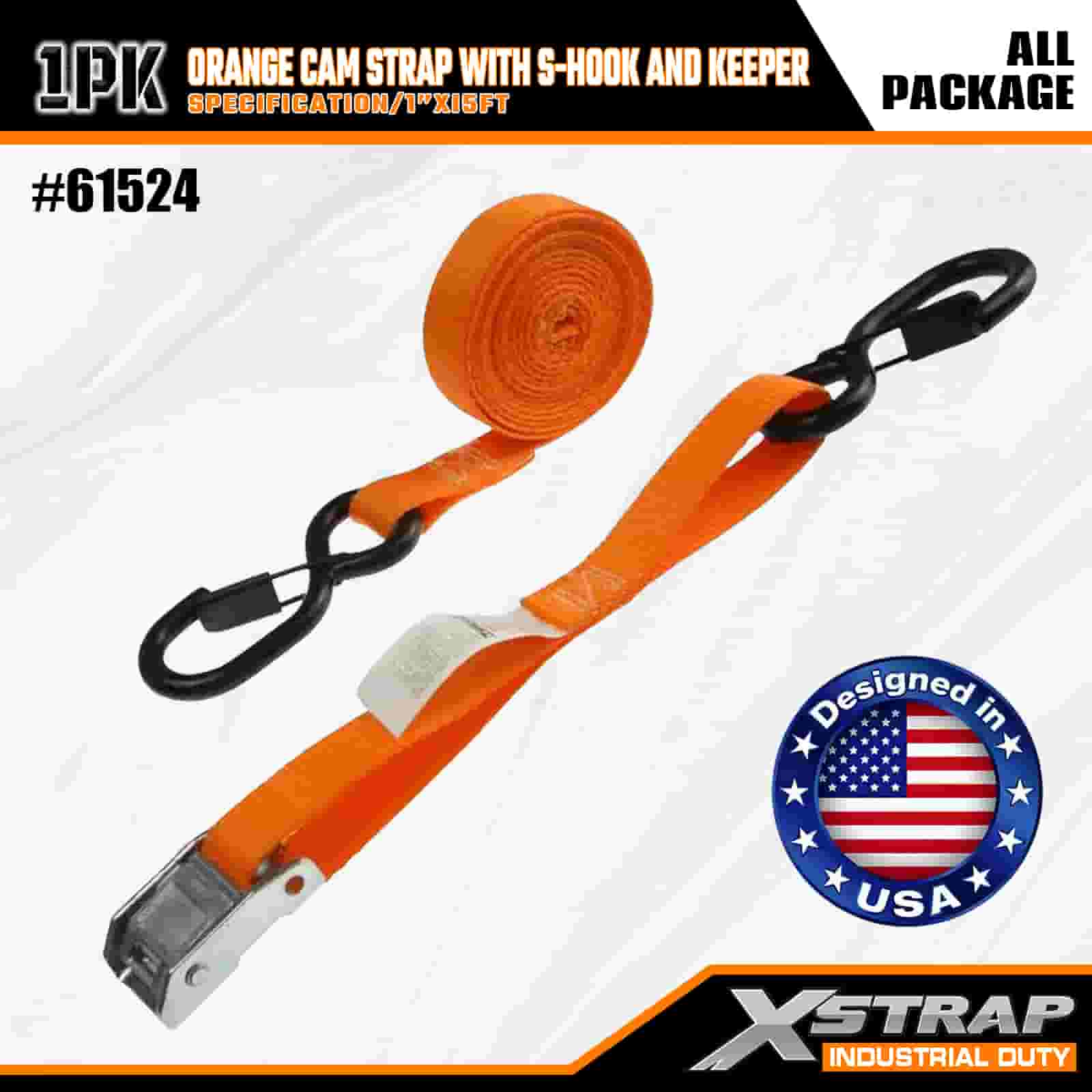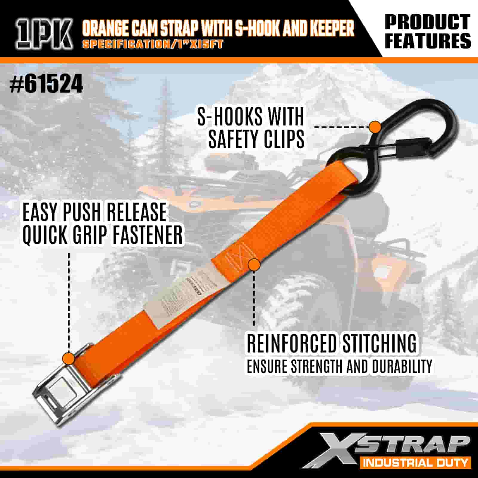 حزام كاميرا Xstrap Qrange مزود بخطاف على شكل حرف S وحافظة، وحزام سقاطة للسحب من البوليستر مقاس 1 × 15 بوصة، وأشرطة تثبيت لربط البضائع بسعة 400 رطل مع خطافات أمان على شكل S للمحترفين الجادين لتأمين مقطورة البضائع، ومقطورة السرير المسطحة، وقارب التزلج، والسيارة الصغيرة.