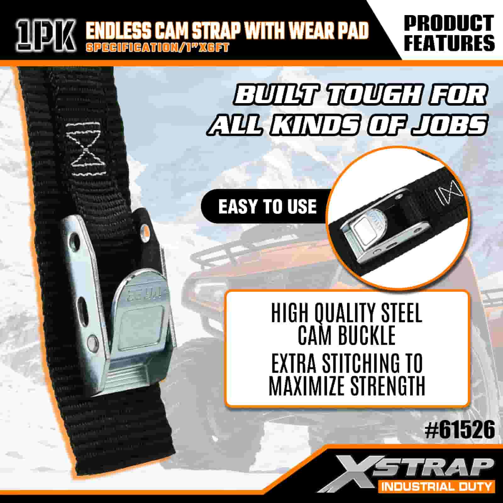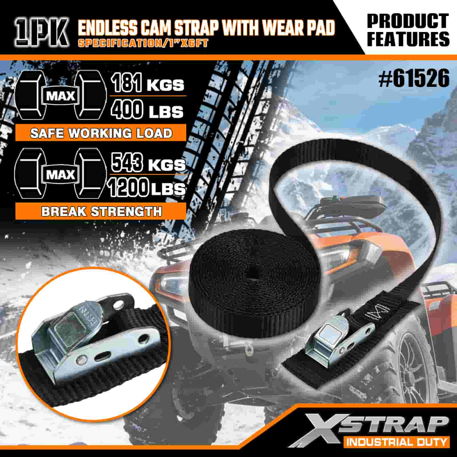 حزام كاميرا لا نهاية له من Xstrap مع وسادة ارتداء، حزام ربط من البوليستر مقاس 1 × 6 بوصات، حزام إبزيم للكاميرا، سعة 400 رطل، أشرطة تأمين لربط البضائع للمحترفين الجادين لتأمين مقطورة البضائع، ومقطورة السرير المسطحة، وقارب التزلج، والسيارة الصغيرة.