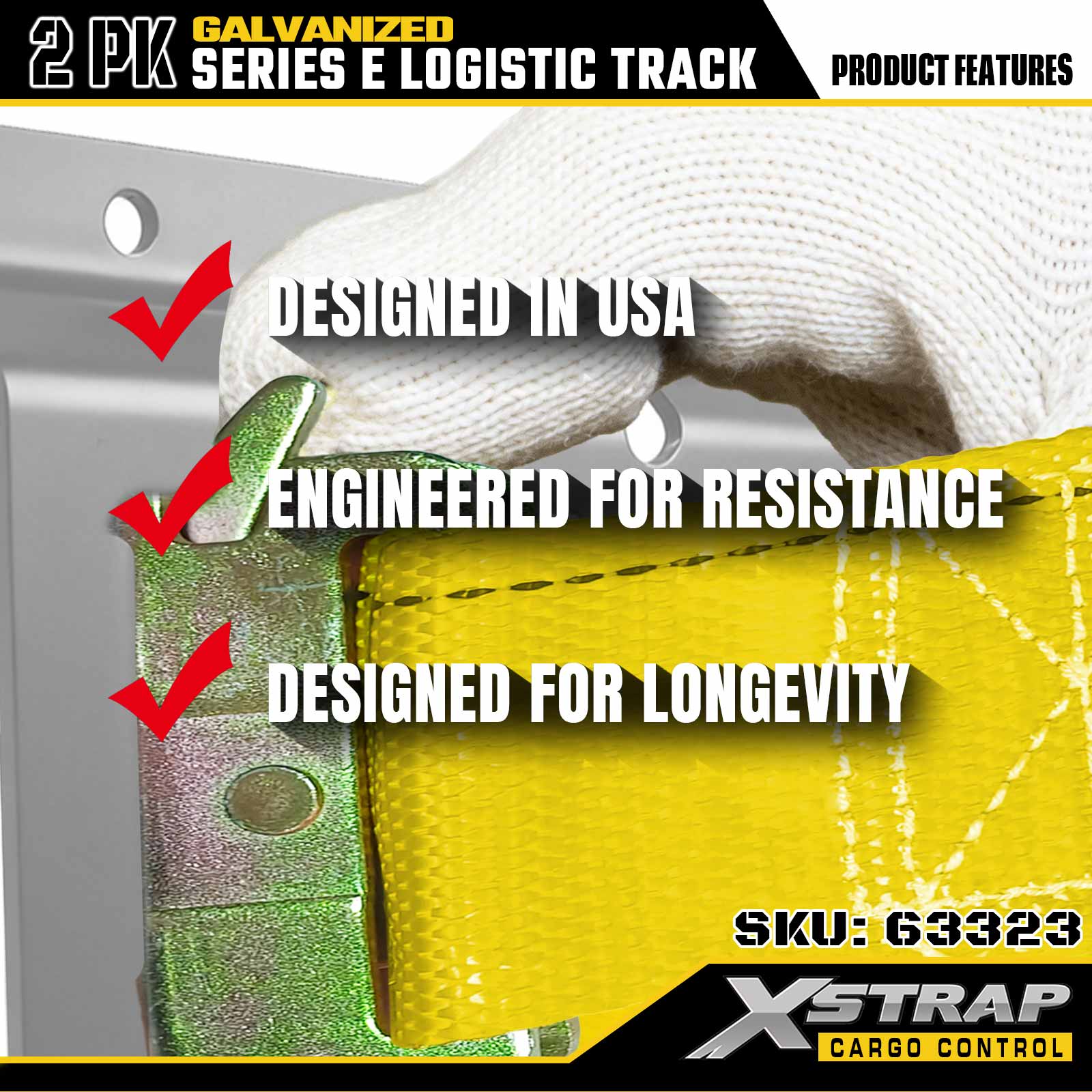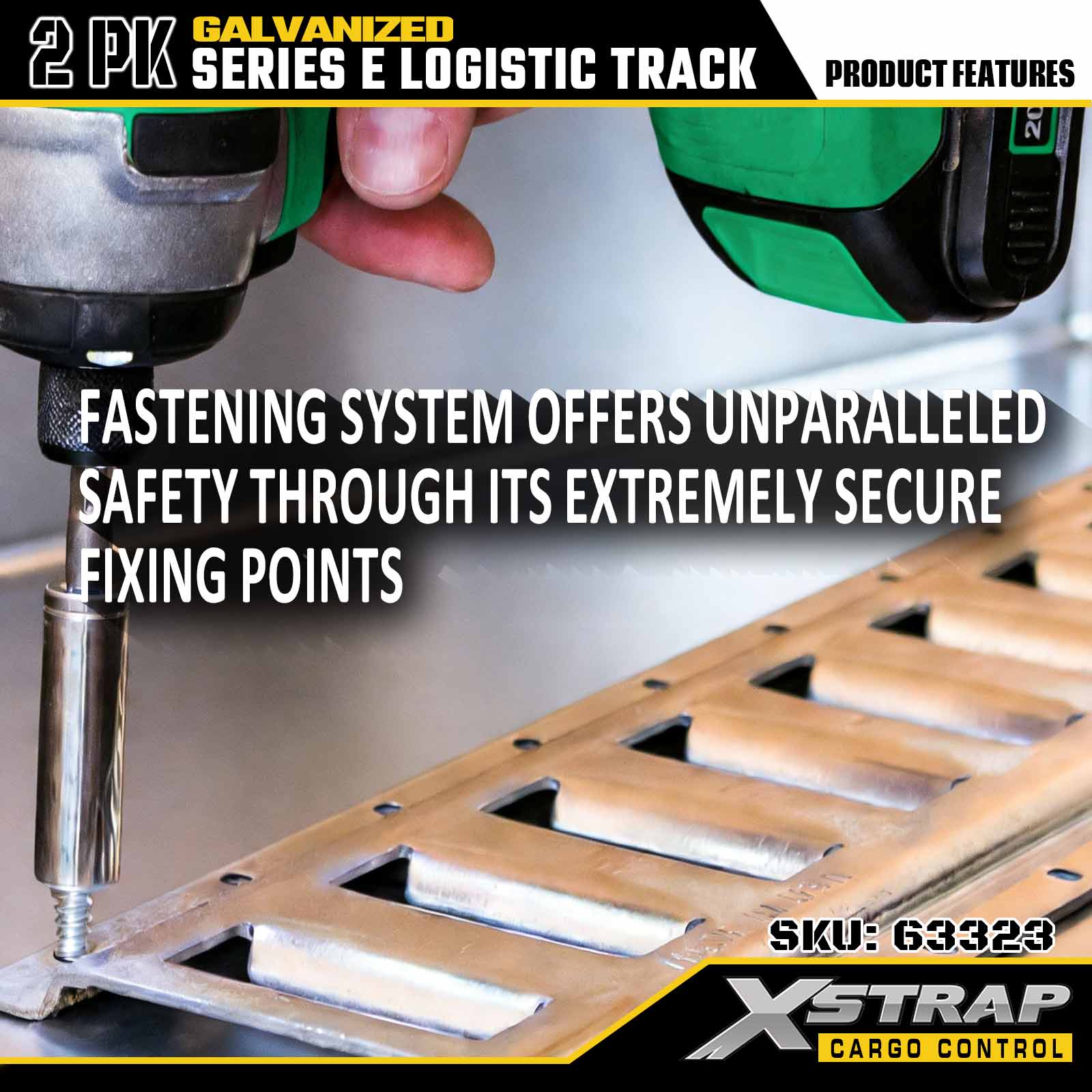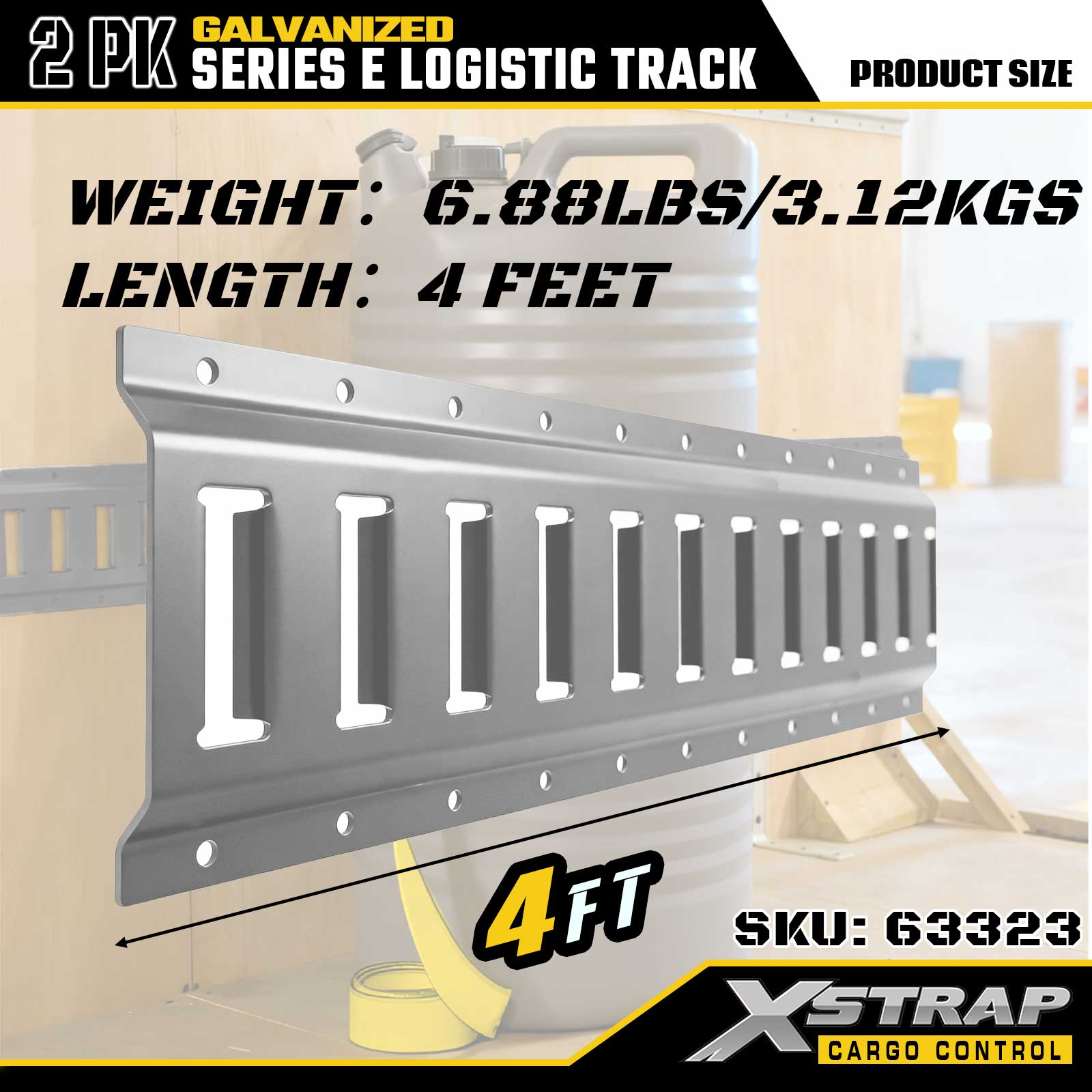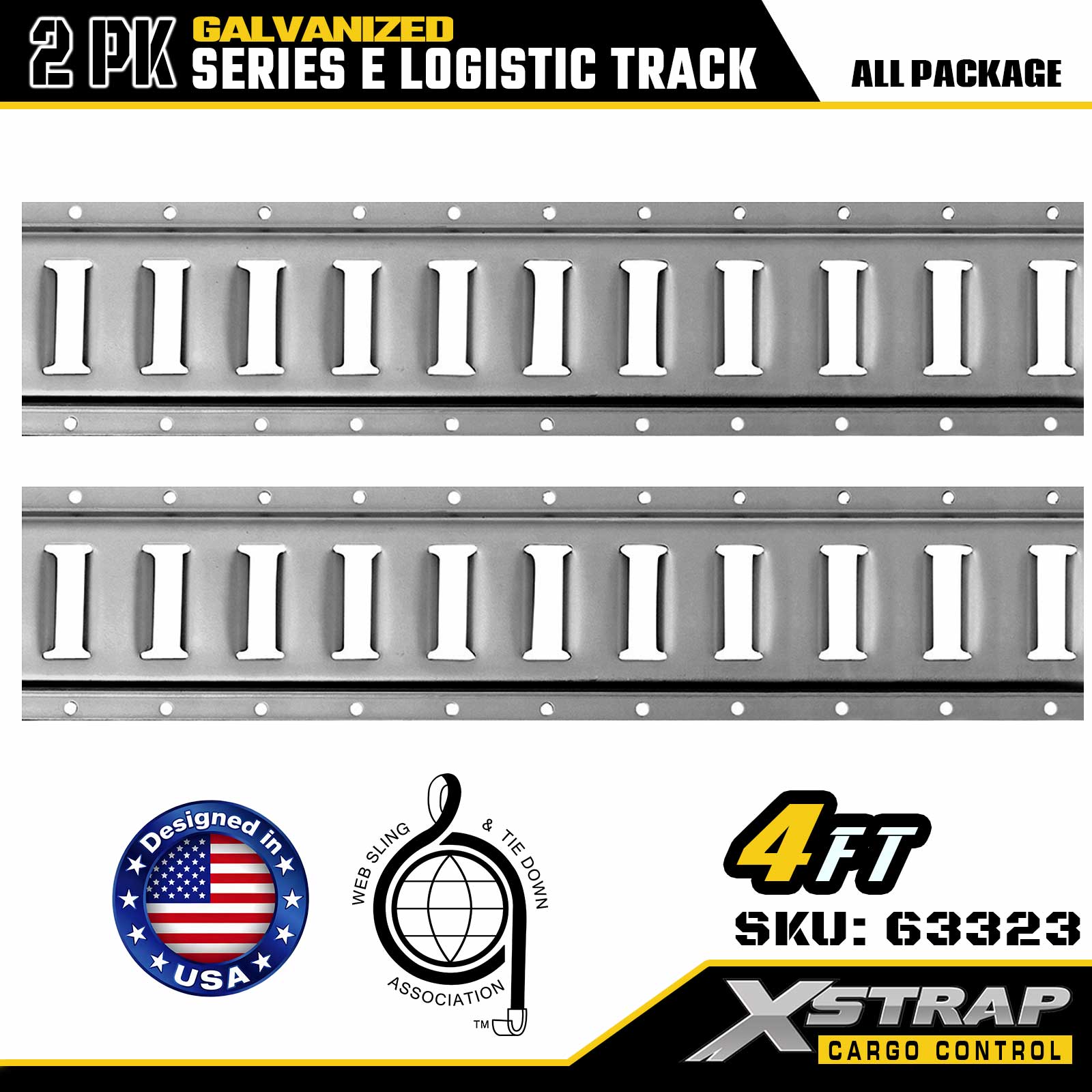 Xstrap 63322 4 قدم مطلي بالفضة E-Track Tie-Down Rail - 12 قياسًا من الفولاذ مع تشطيب مجلفن، سعة تحميل 6000 رطل، عبوتان لتأمين البضائع
