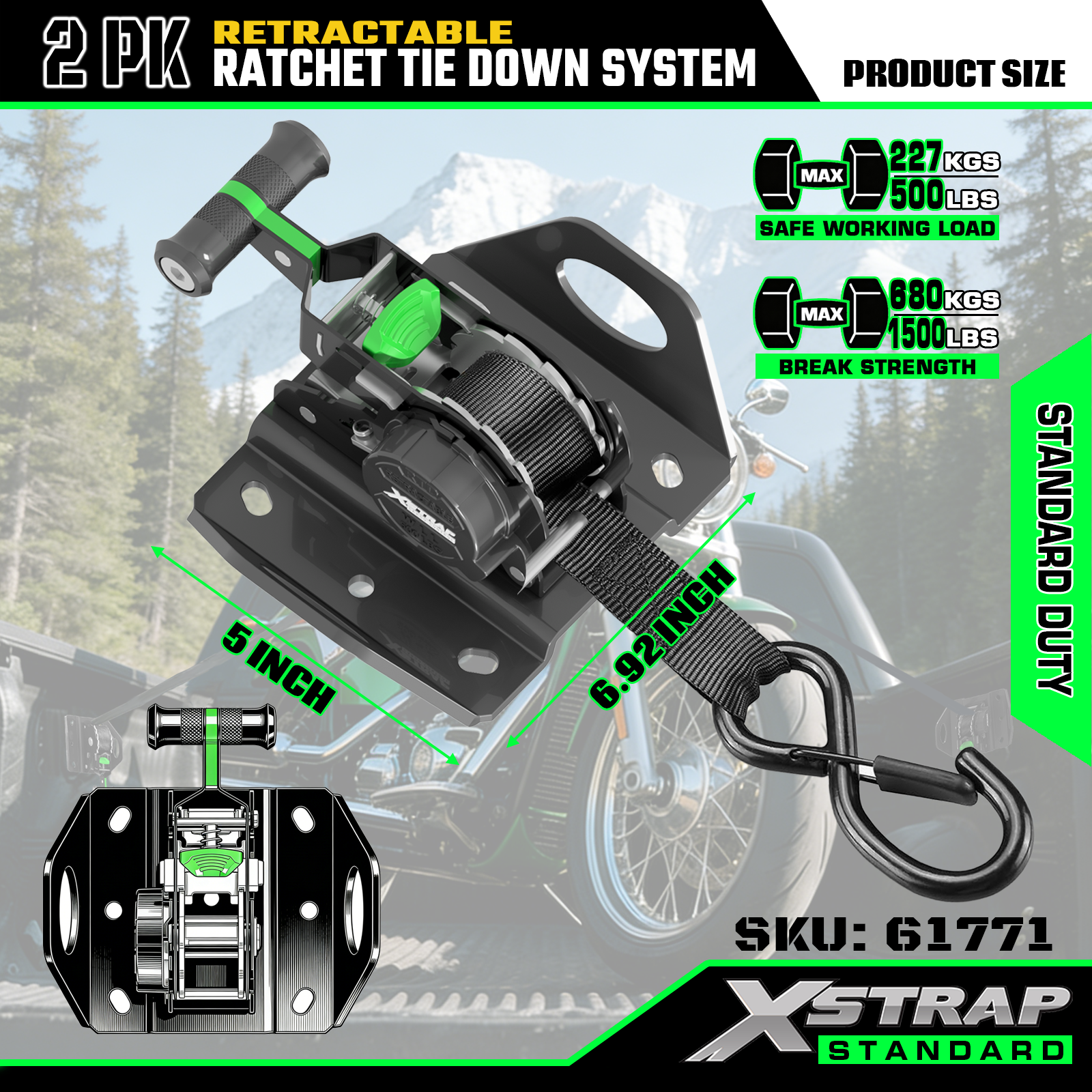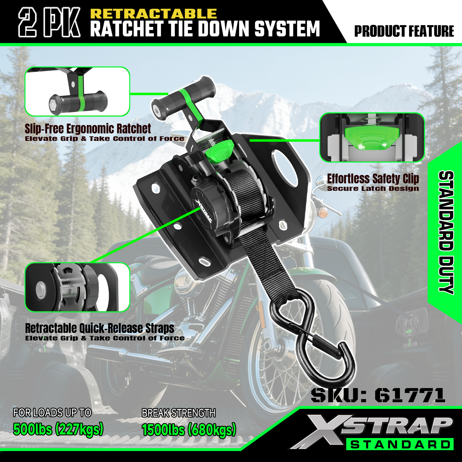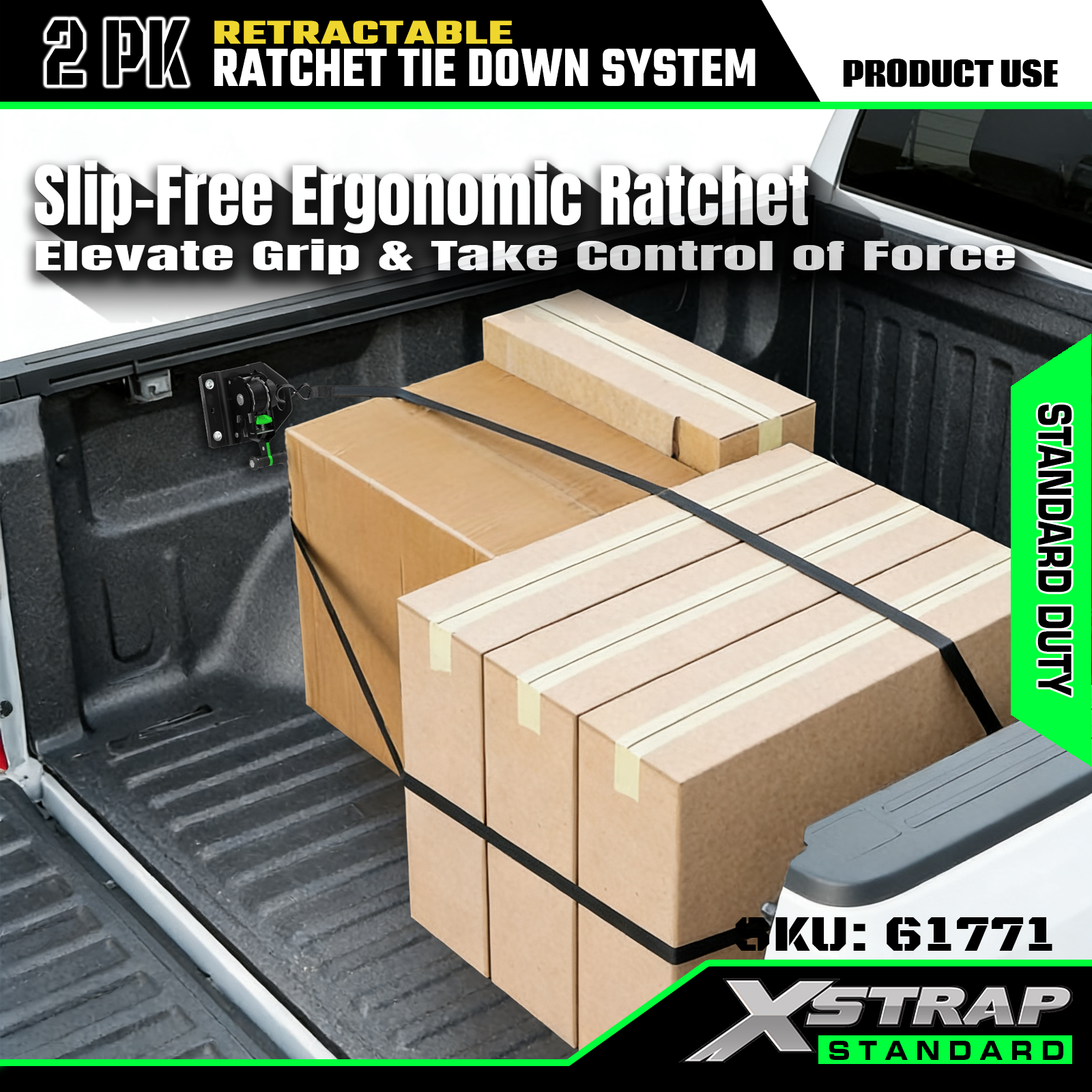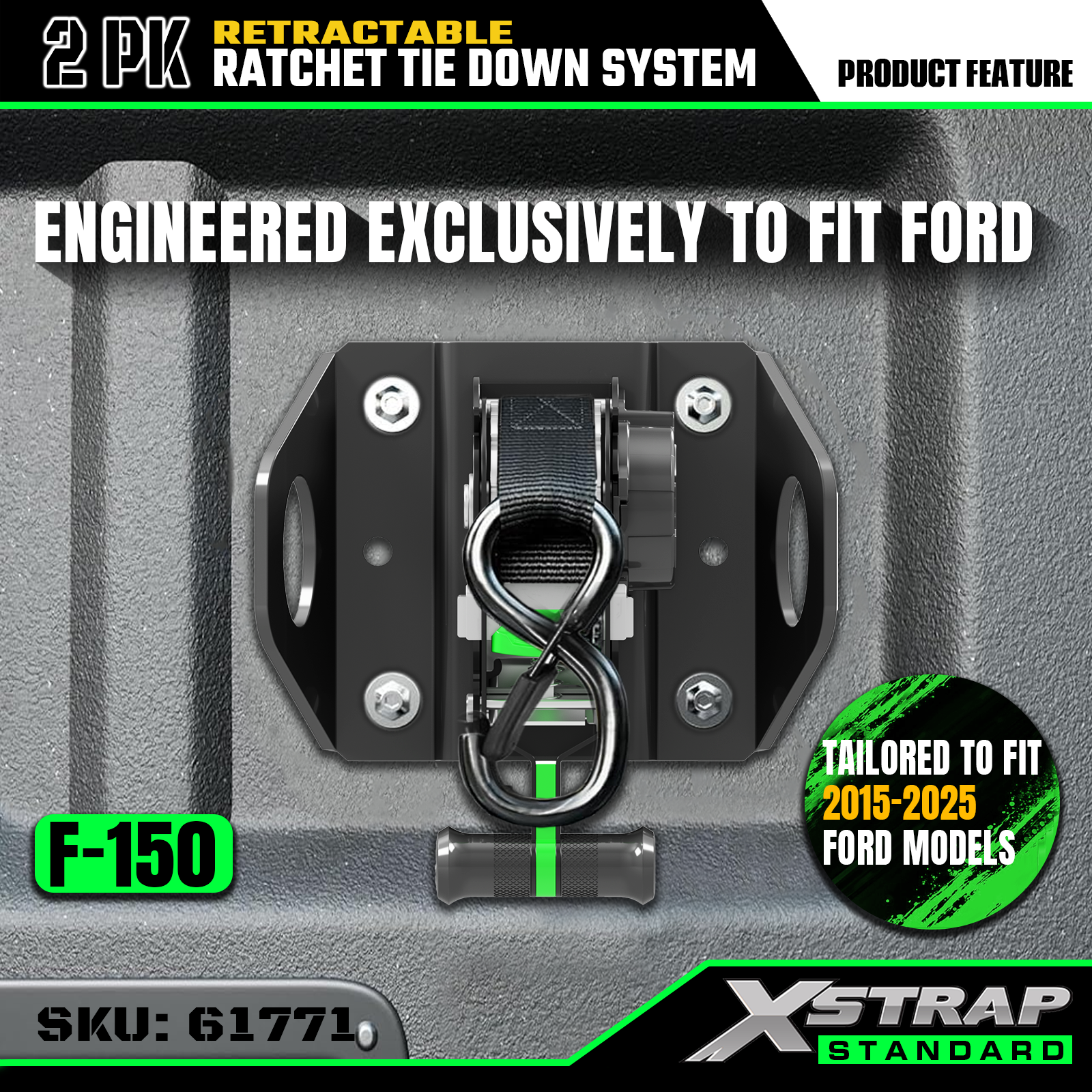 Xstrap 61771 أشرطة السقاطة القابلة للسحب تناسب ملحقات السيارة F150 500LB SWL