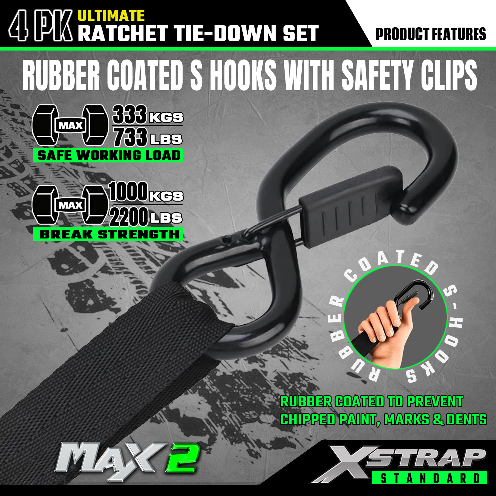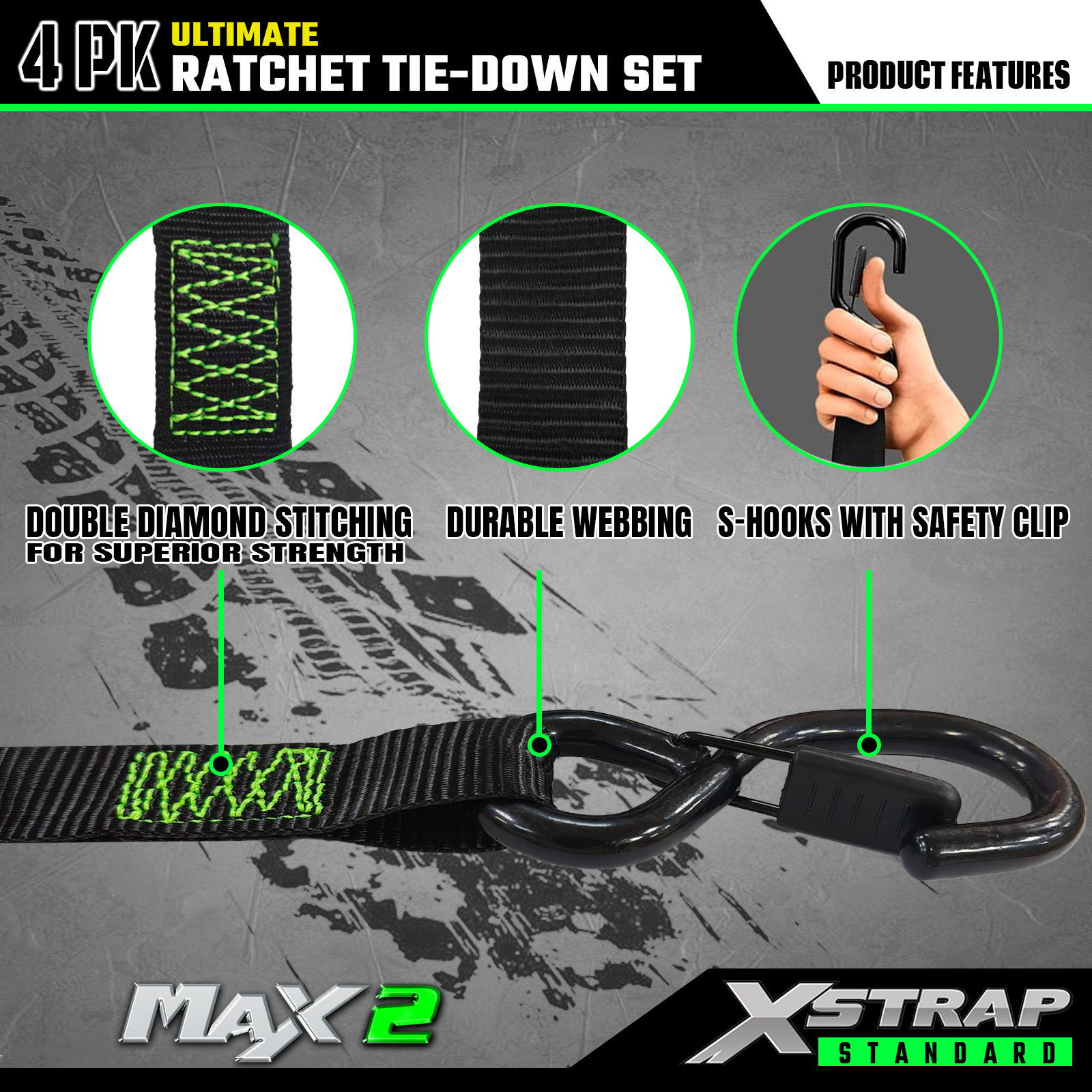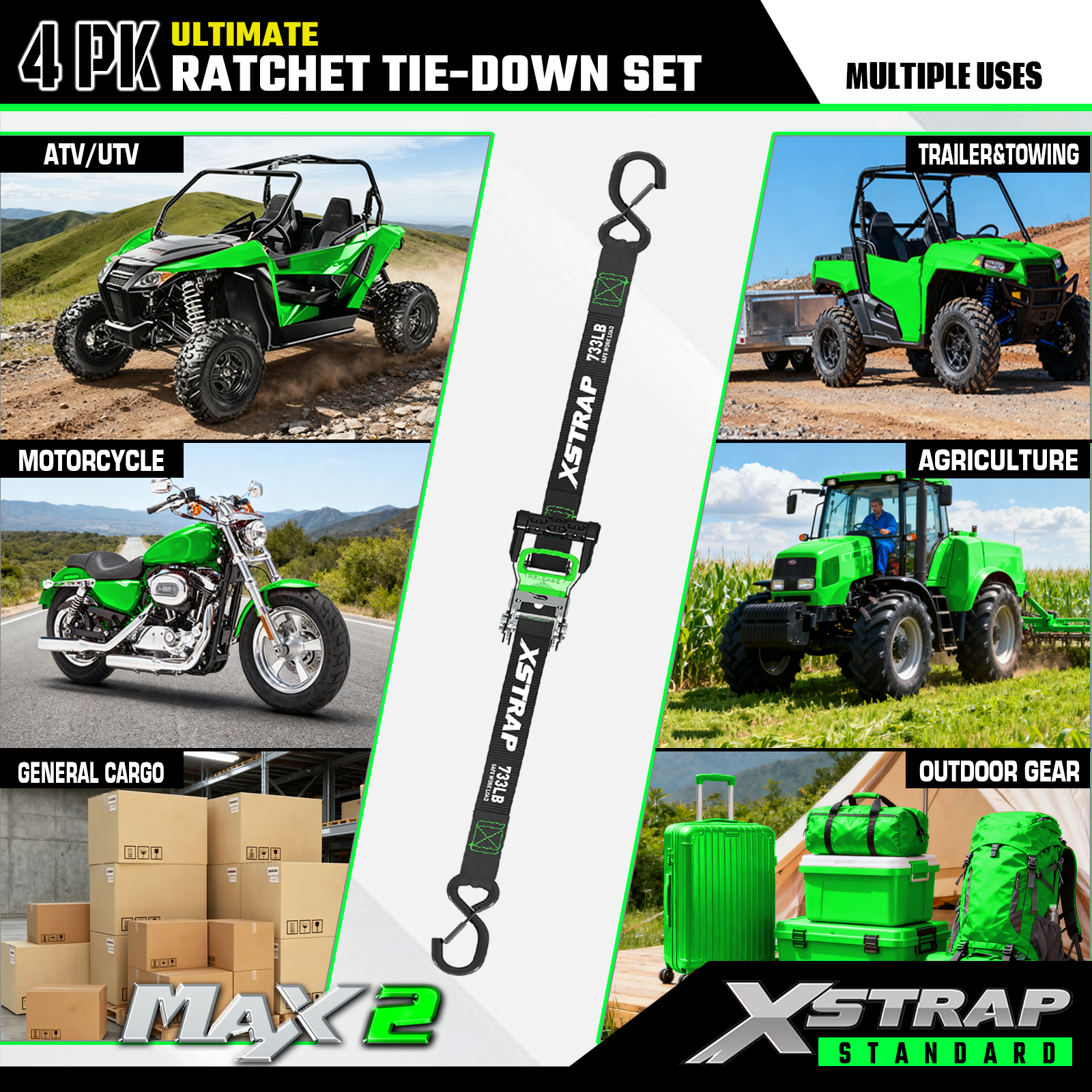 - نقل موثوق: توفر أحزمة ربط السقاطة المكونة من 4 قطع 733 رطلًا من SWL و2,200 رطلًا من BS. يمكن أن يوفر نقلًا آمنًا للدراجات النارية والأجهزة ومعدات الحديقة