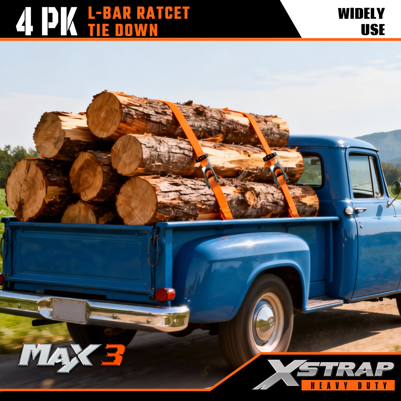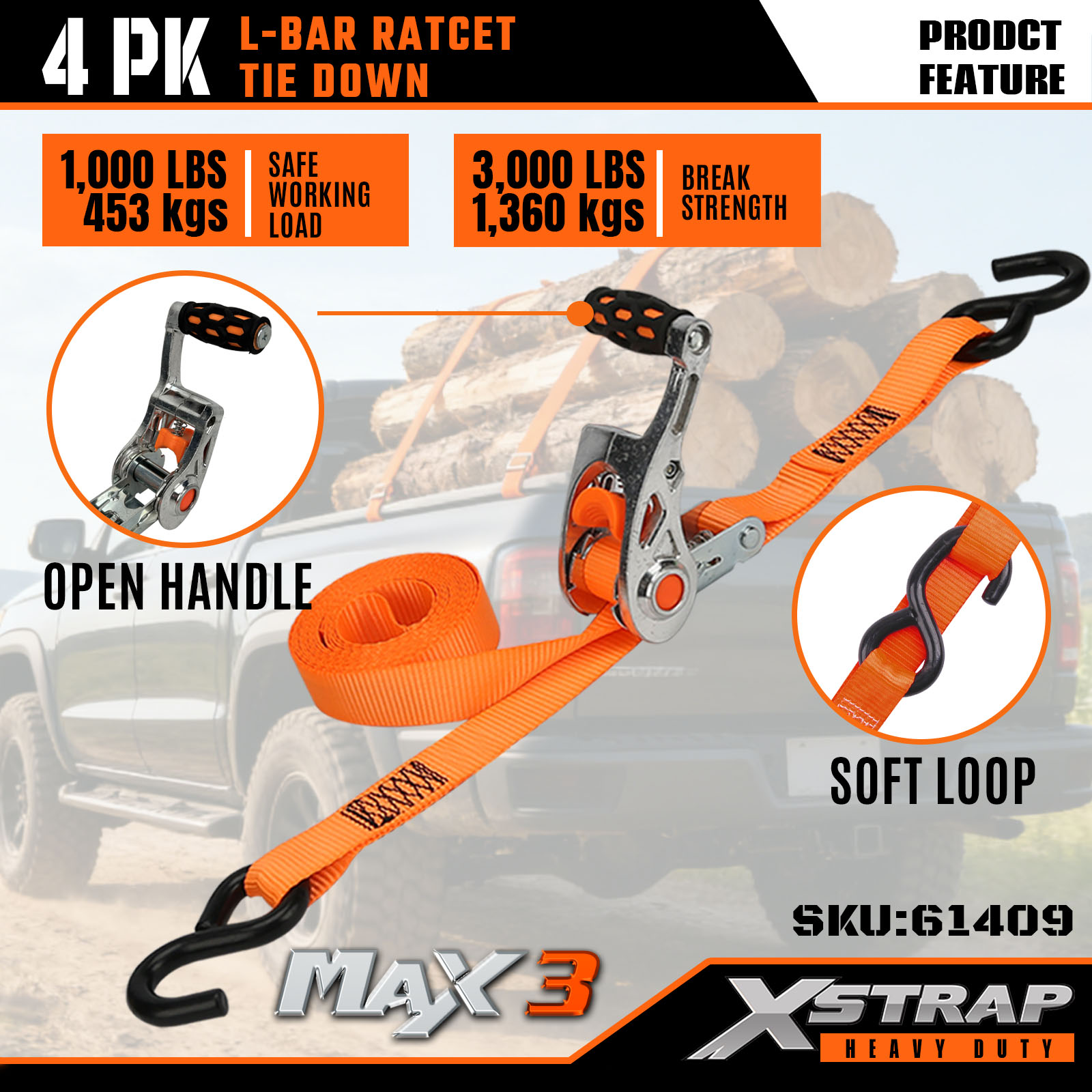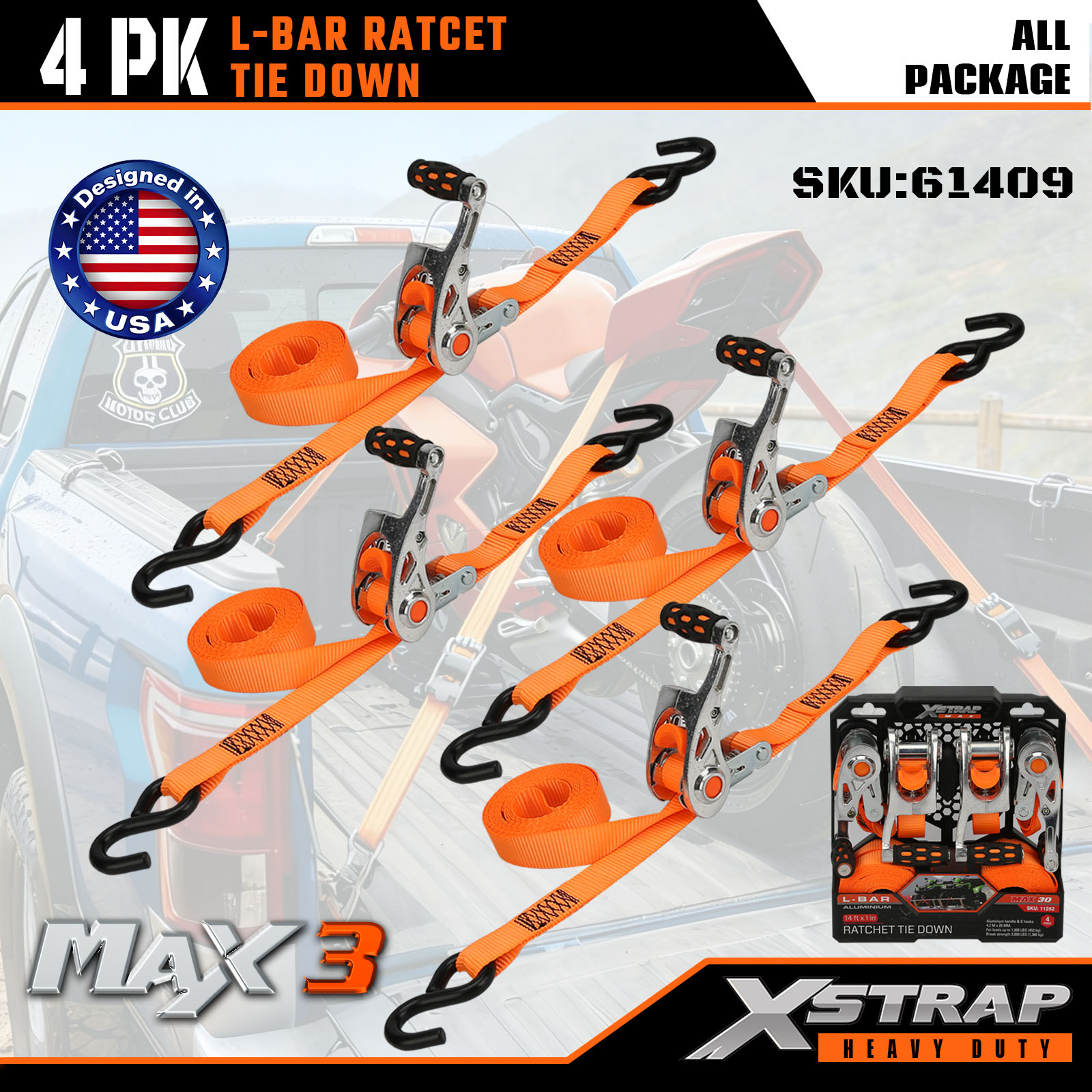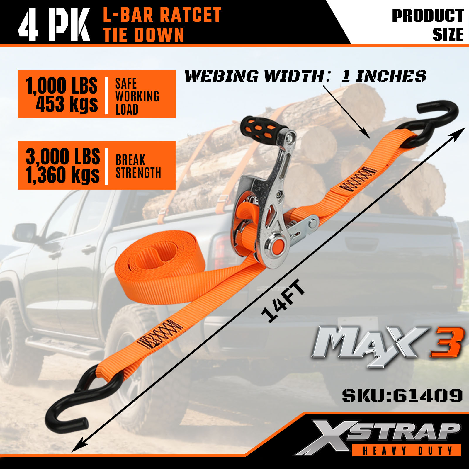 Xstrap 4 قطع من أشرطة الربط على شكل L، 1 بوصة × 14 بوصة من البوليستر، حزام سقاطة للسحب، أشرطة تثبيت لربط البضائع بسعة 1000 رطل مع خطافات على شكل S للشاحنة، وسيارات الدفع الرباعي، والدراجات النارية ذات الرفوف العلوية للسيارة.