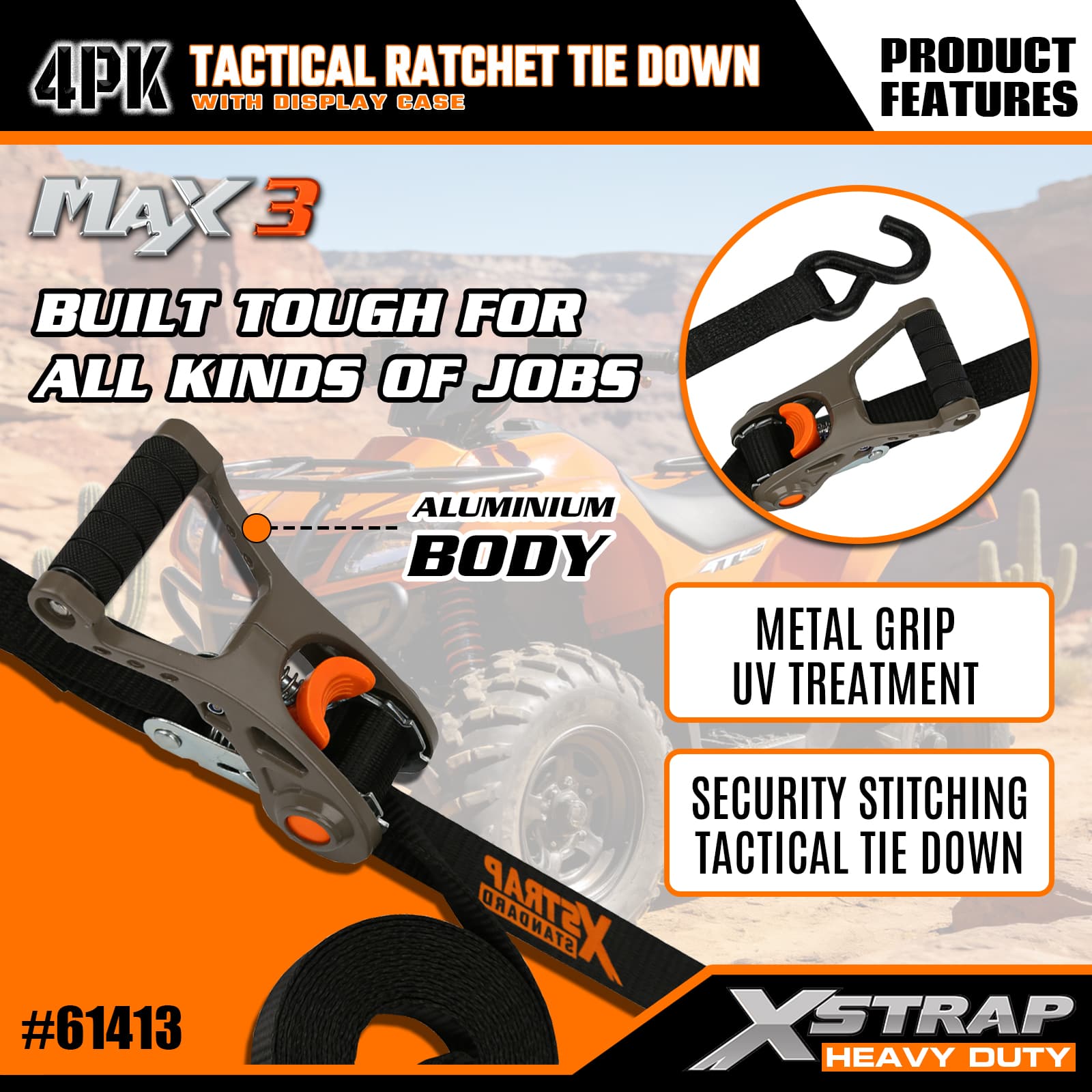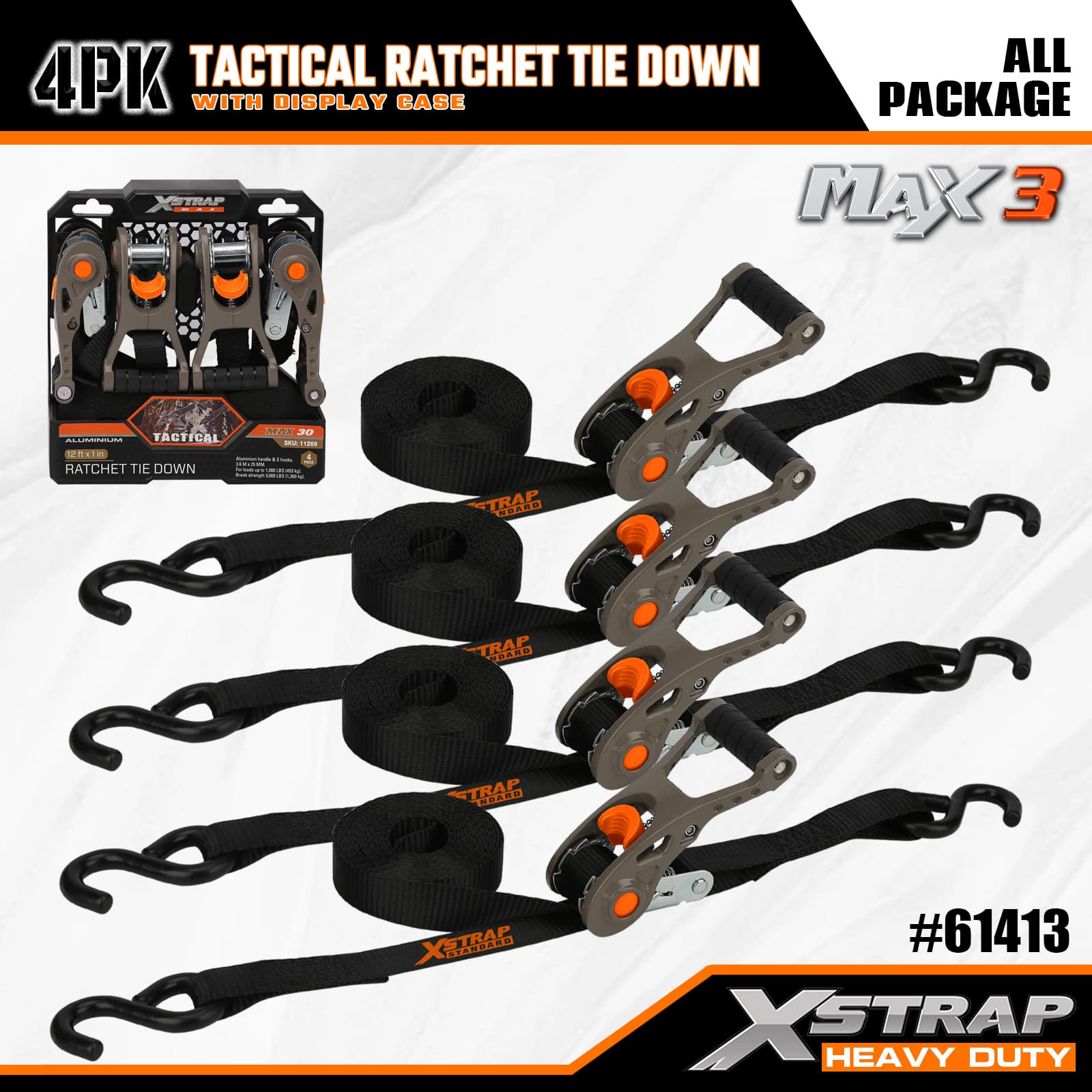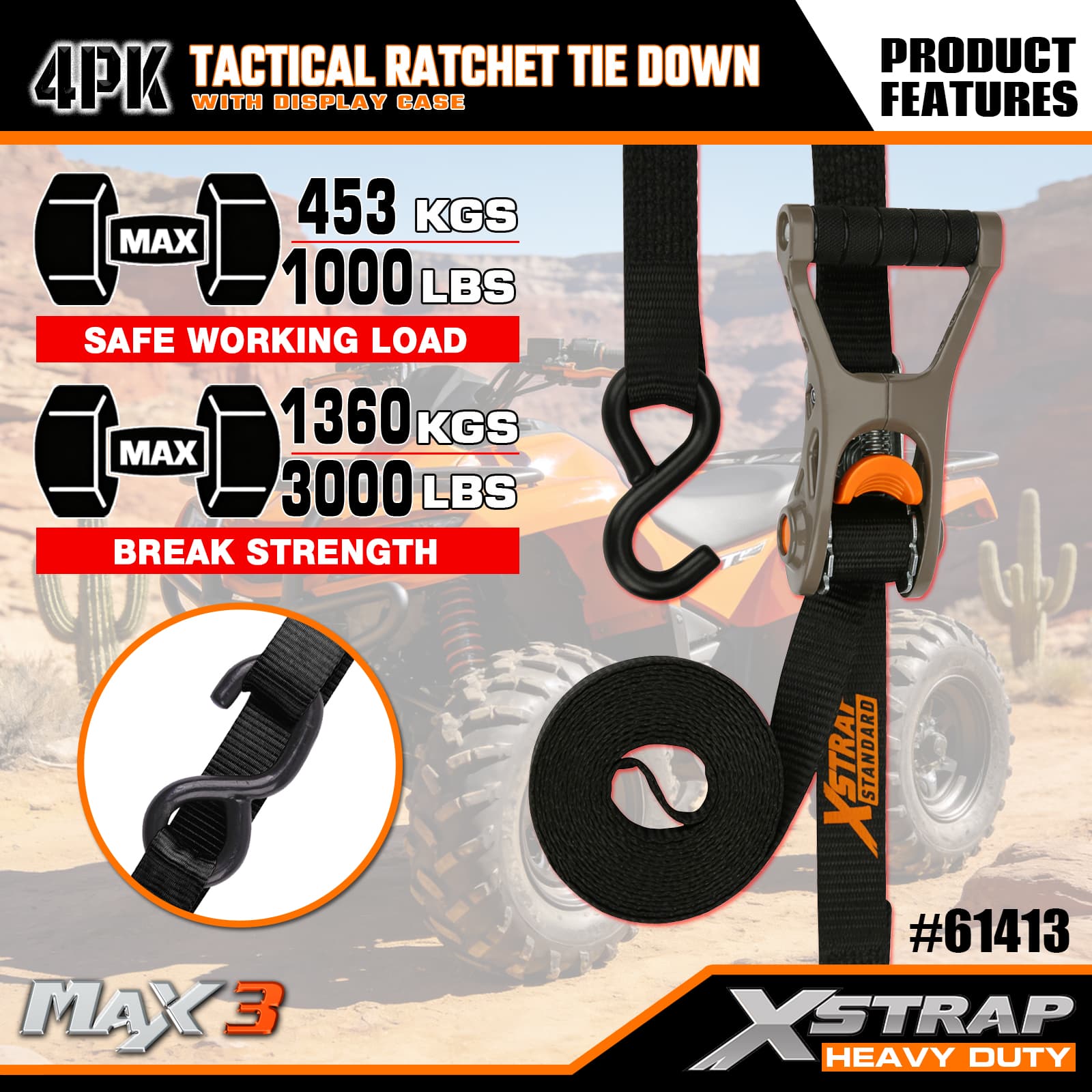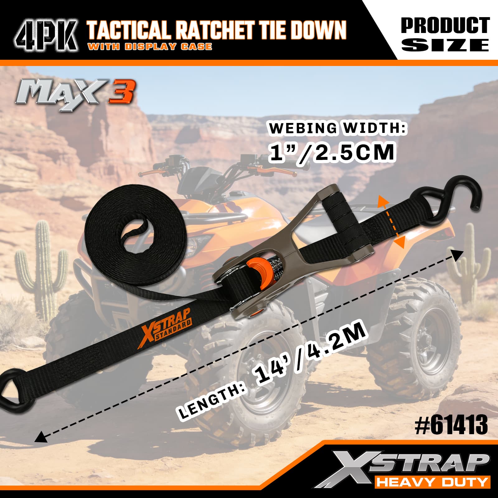Xstrap 4 حزم سقاطة تكتيكية مربوطة لأسفل مع حلقة ناعمة، حزام سحب للأسفل من البوليستر مقاس 1 × 14 بوصة، أشرطة تثبيت لربط البضائع بسعة 1000 رطل مع خطافات على شكل S للشاحنة وسيارات الدفع الرباعي والدراجات النارية ذات الرفوف العلوية للسيارة.