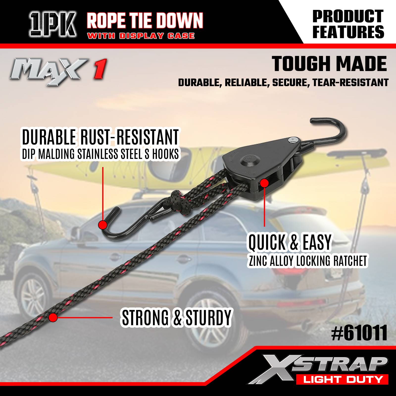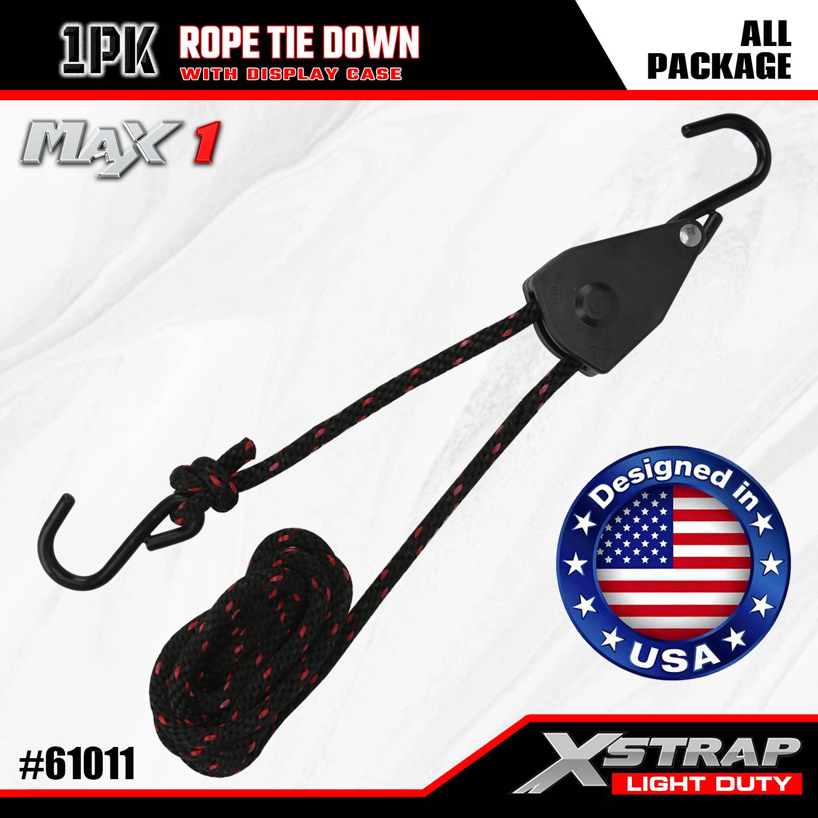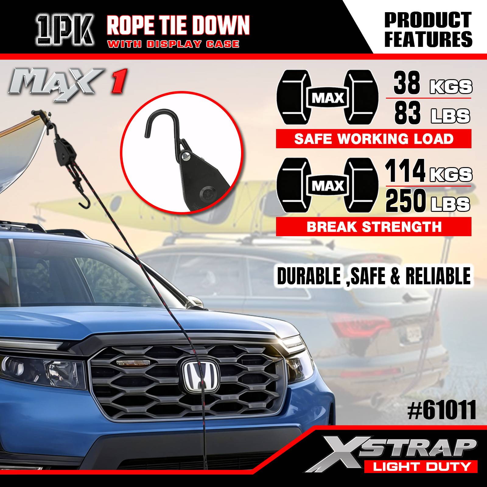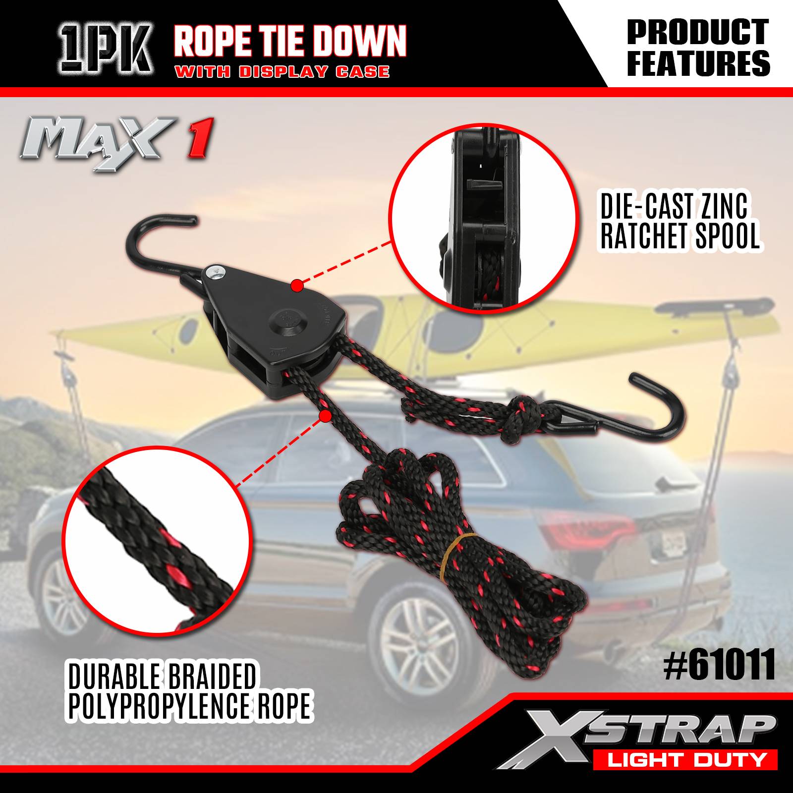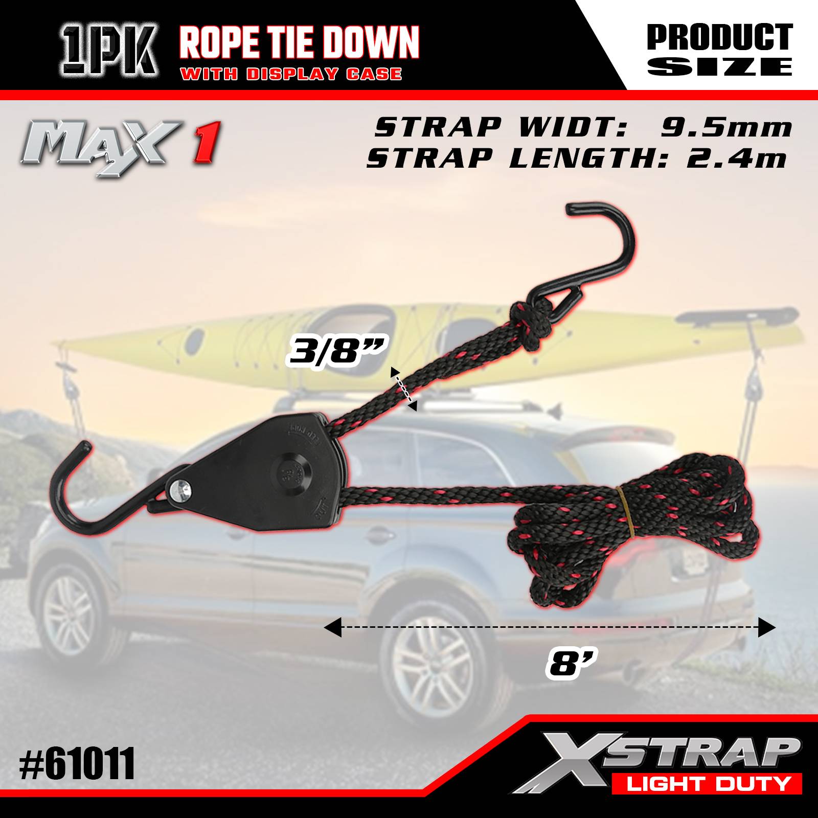 Xstrap 1 حزمة من أشرطة ربط الحبال، 3/8 بوصة × 8 بوصات - غطاء تحميل 83 رطلًا - 250 رطلًا من أشرطة الشحن القوية لتأمين الأحمال الخفيفة (قوارب الكاياك، والعتاد، والمعدات الصغيرة) للمركبات/الرفوف