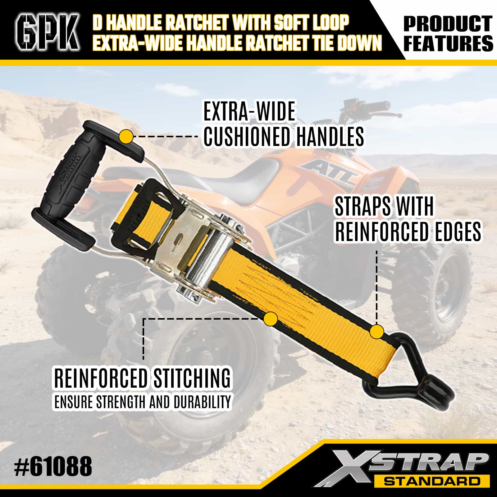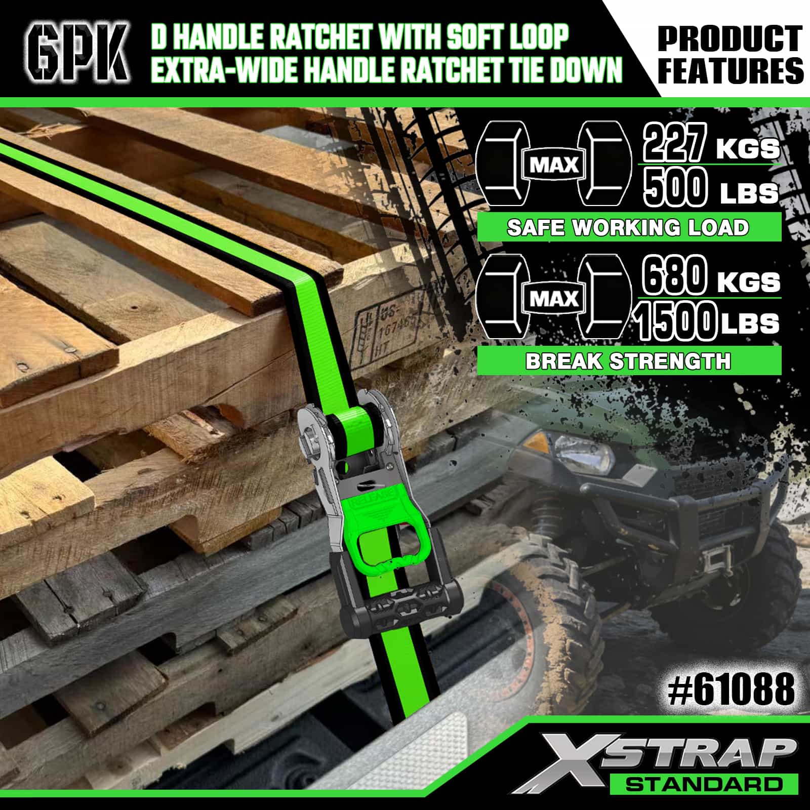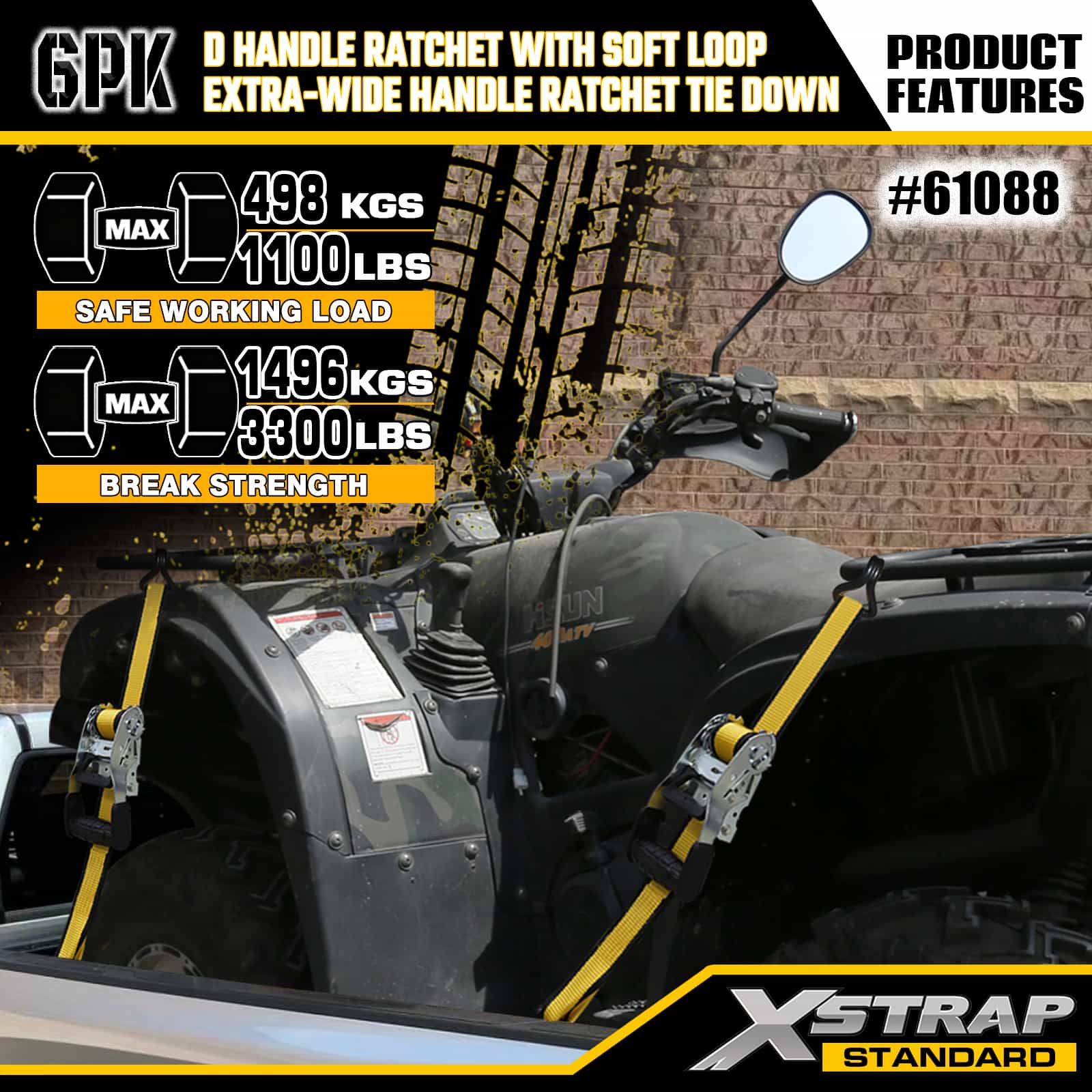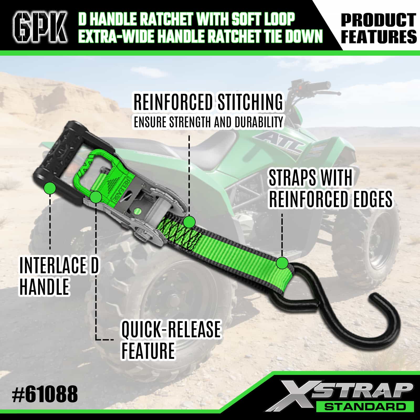 Xstrap 6 عبوات من الألومنيوم بسقاطة ربط للأسفل، 1 بوصة × 14 بوصة و1 بوصة × 16 بوصة حزام ربط من البوليستر للأسفل حزام سحب بسقاطة، 500 رطل و1100 رطل، أشرطة تأمين لربط البضائع بسعة مع خطافات S وخطافات J مزدوجة لشاحنة النقل الصغيرة للتحكم في البضائع، وسيارات الدفع الرباعي، والدراجات النارية ذات الرفوف العلوية للسيارة.