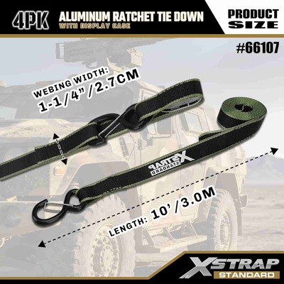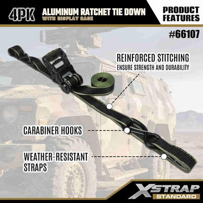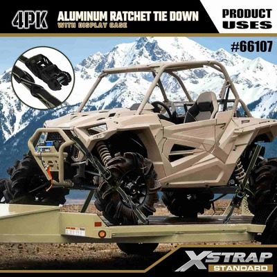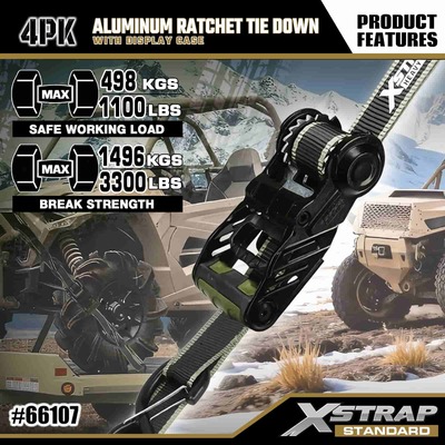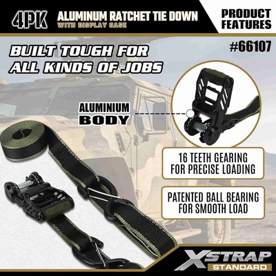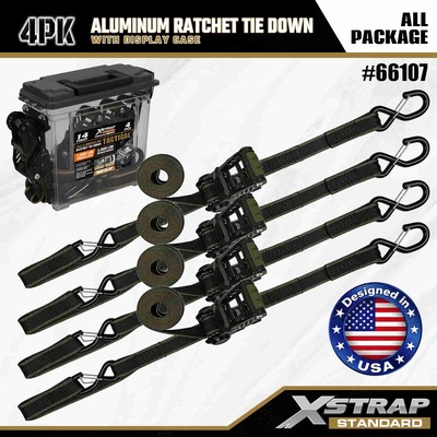 Xstrap 4 عبوات من الألومنيوم بسقاطة لأسفل، حزام ربط من البوليستر مقاس 1-1/4 بوصة × 14 بوصة مع حزام سقاطة بحلقة ناعمة، أشرطة تأمين لربط البضائع بسعة 1000 رطل مع خطافات أمان على شكل حرف S لشاحنة النقل الصغيرة للتحكم في البضائع، وسيارات الدفع الرباعي، والدراجات النارية ذات الرفوف العلوية للسيارة.