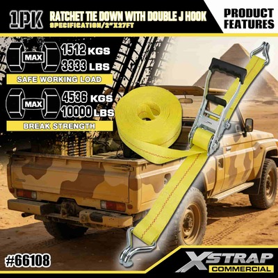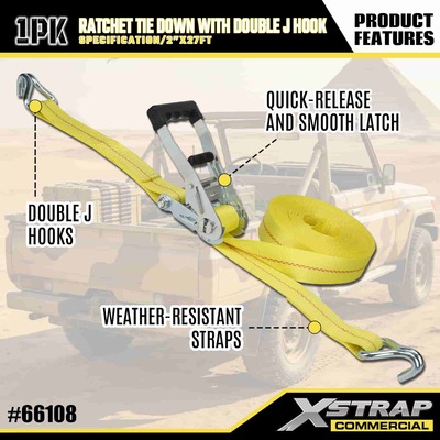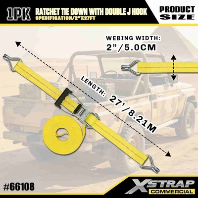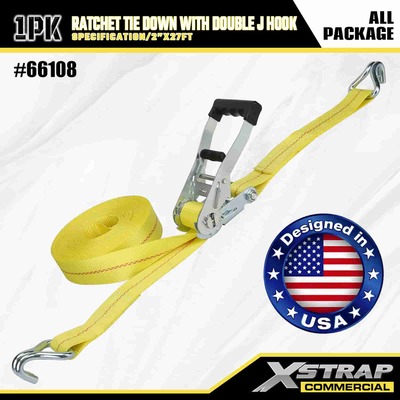 ربط سقاطة Xstrap مع خطافات J مزدوجة، حزام ربط من البوليستر مقاس 2 بوصة × 27 بوصة، حزام سقاطة للسحب، سعة 3333 رطلًا، أشرطة تأمين لربط البضائع مع خطافات J مزدوجة لشاحنة النقل الصغيرة للتحكم في البضائع، وسيارات الدفع الرباعي، والدراجات النارية ذات الرفوف العلوية للسيارة.