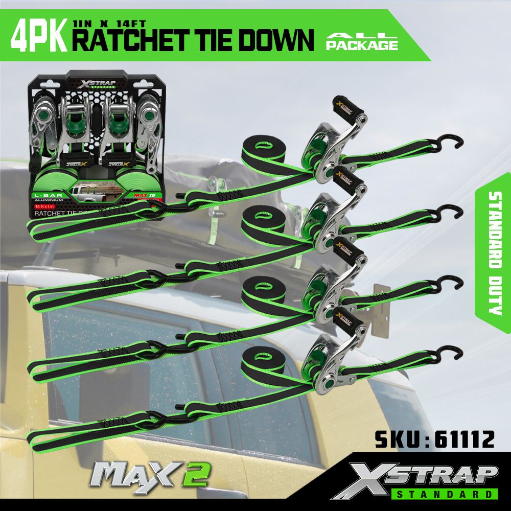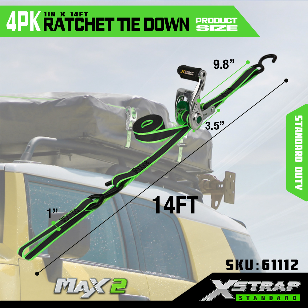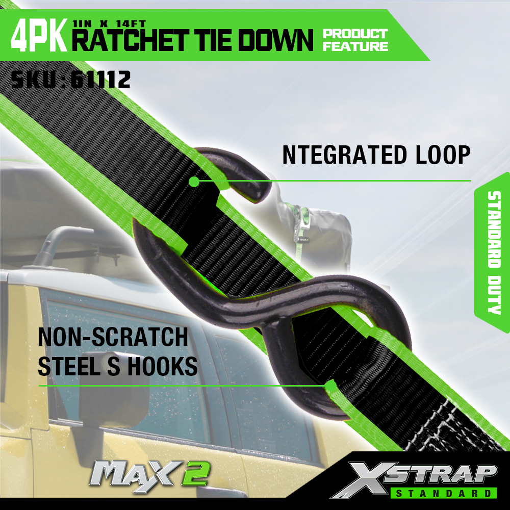 Xstrap 4 قطع من أحزمة السقاطة ذات المقبض المفتوح، حزام ربط السقاطة من البوليستر مقاس 1 × 14 بوصة مع حلقة ناعمة، أشرطة تأمين لربط البضائع بسعة 1500 رطل (500 رطل) مع سقاطة من الألومنيوم وخطافات S للبضائع والشاحنات والجزازة والمركبات ATV