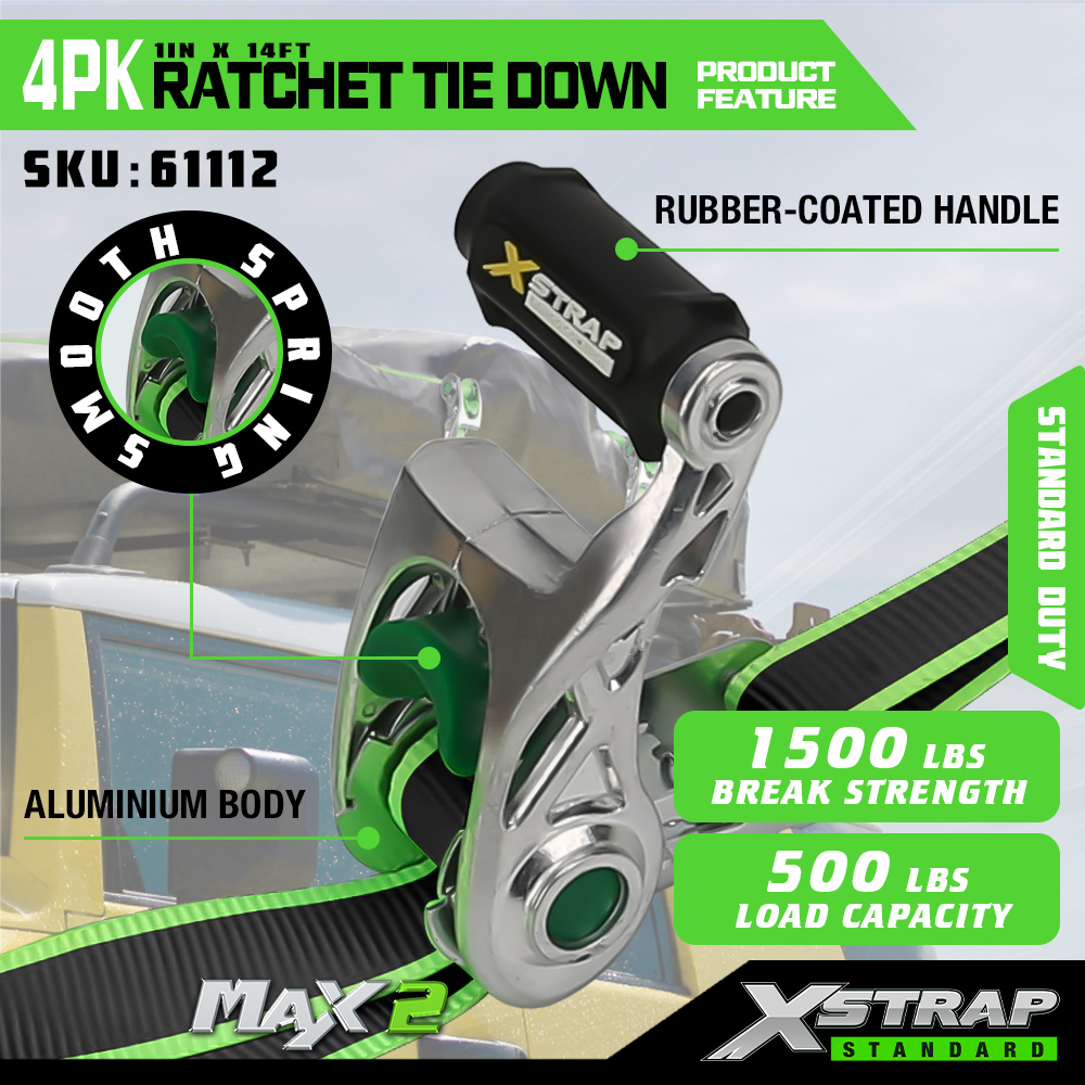 - سعة تحميل يمكن الاعتماد عليها: تم تصميمها بحد حمل عمل يصل إلى 500 رطل وقوة كسر تبلغ 1500 رطل، مما يوفر قوة تأمين موثوقة للبضائع مثل مركبات الدفع الرباعي أو الجزازات أو حمولات الشاحنات.