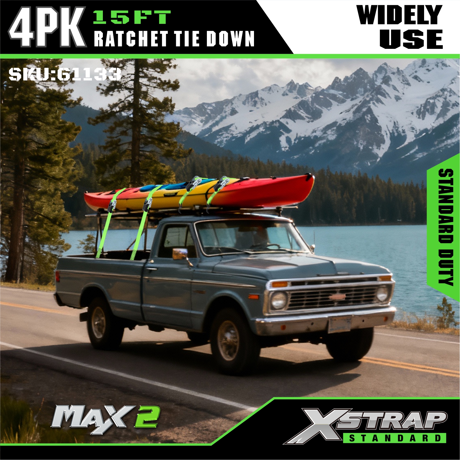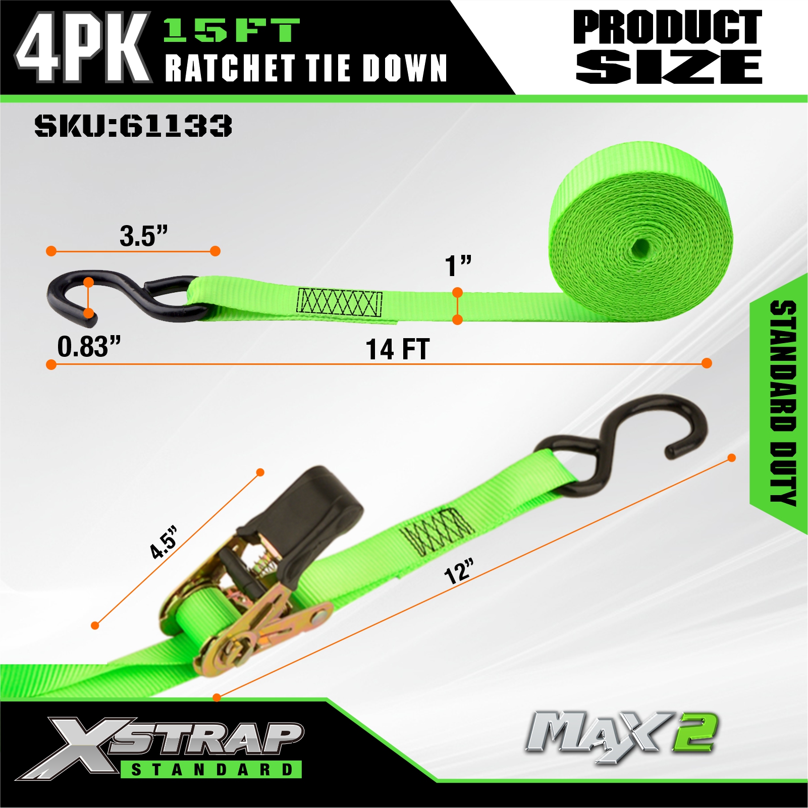 Xstrap 4 قطع من ربطات السقاطة، 1 بوصة × 15 بوصة من البوليستر، حزام سحب للأسفل، أشرطة تثبيت لربط البضائع بسعة 500 رطل مع خطافات على شكل حرف S لشاحنة الالتقاط، سيارات الدفع الرباعي، الدراجات النارية ذات الرفوف العلوية للسيارة، قارب صيد خفيف، جت سكي، عربة الثلج، جرار العشب.