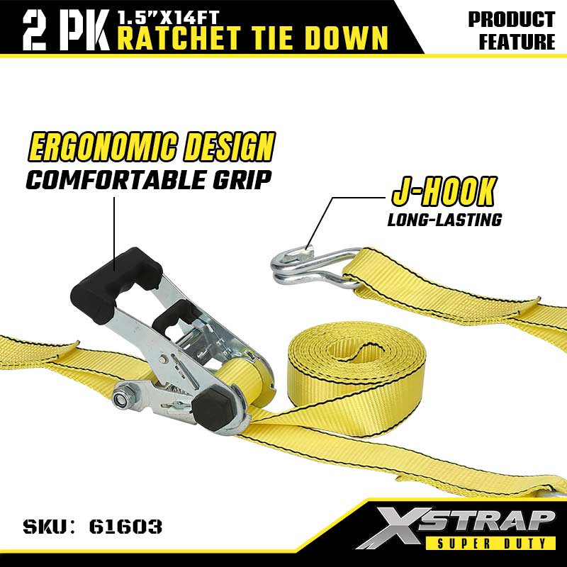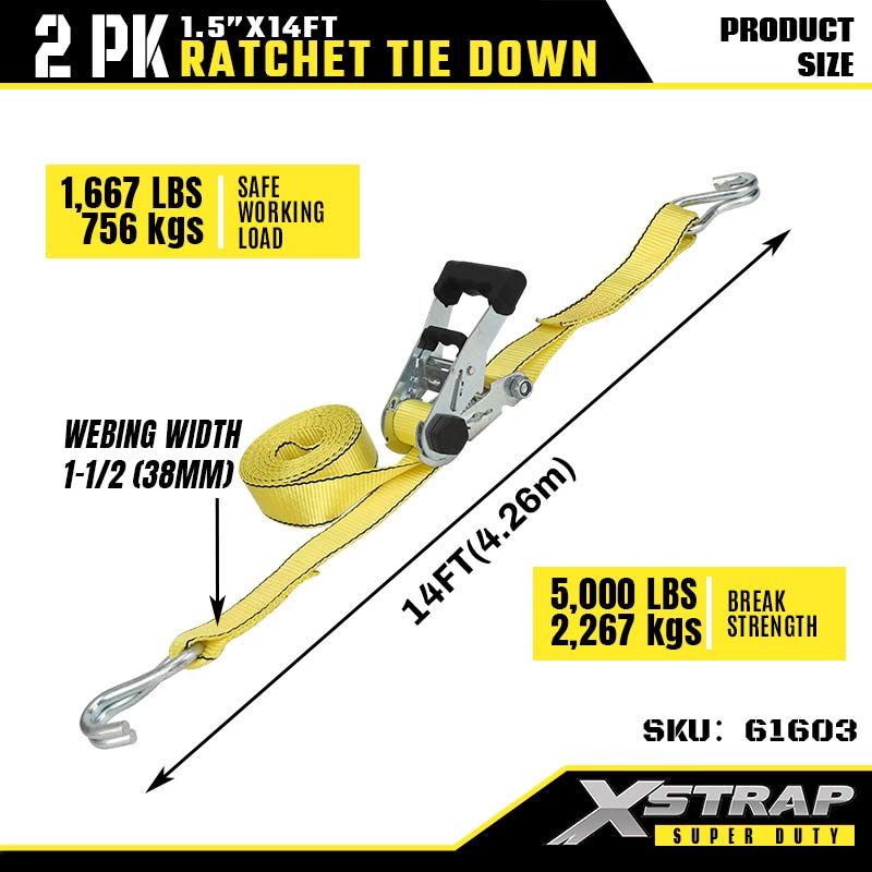 Xstrap 4 قطع بمقبض على شكل حرف T، ربطة عنق للأسفل، 1-1/2 بوصة × 14 بوصة من البوليستر، حزام سحب للأسفل، أشرطة تثبيت للبضائع بسعة 1667 رطل مع خطافات J مزدوجة للمحترفين الجديين لتأمين مقطورة البضائع المعقوفة، مقطورة شديدة التحمل، قارب تزلج بمقطورة مسطحة، سيارة صغيرة، معدات ثقيلة.