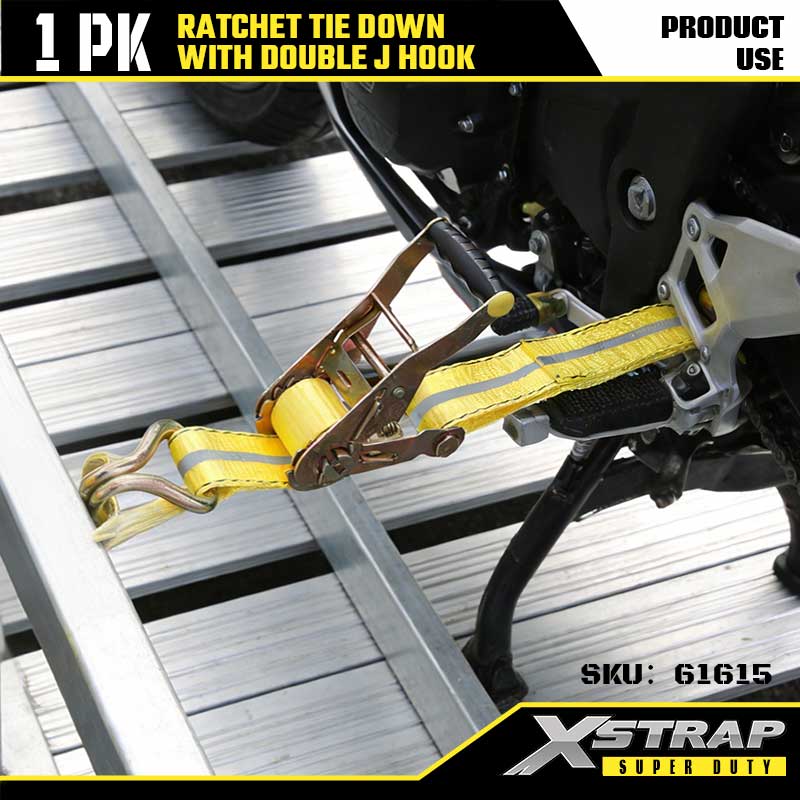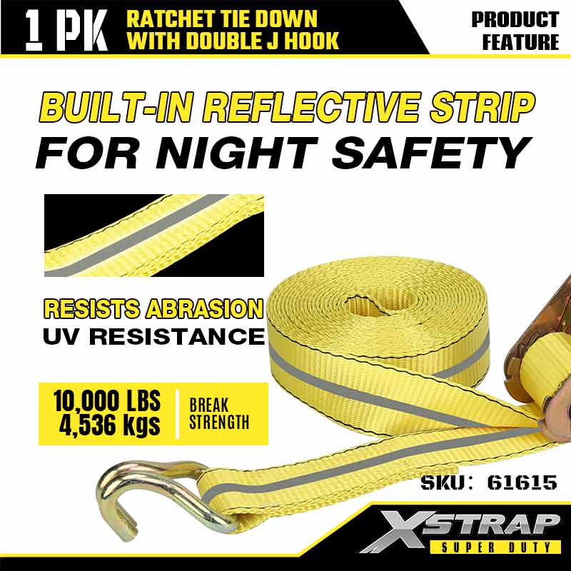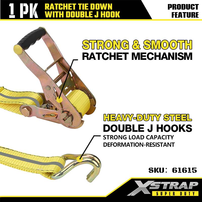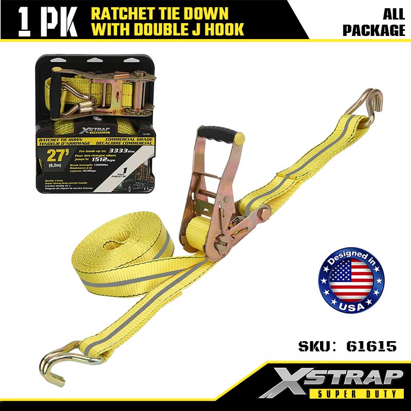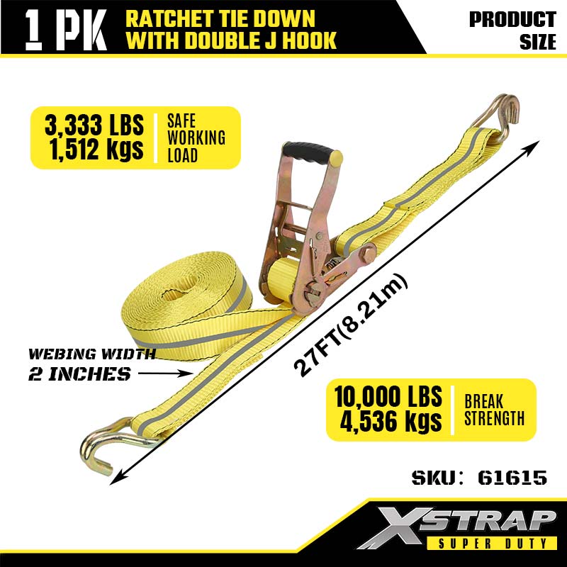 ربط السقاطة Xstrap بخطافات J مزدوجة، وحزام سقاطة من البوليستر مقاس 2 بوصة × 27 بوصة، وأشرطة تثبيت لربط البضائع بسعة 3333 رطلًا مع خطافات J مزدوجة للمقطورة شديدة التحمل، وقارب تزلج بمقطورة مسطحة، وسيارة صغيرة، ومعدات ثقيلة.