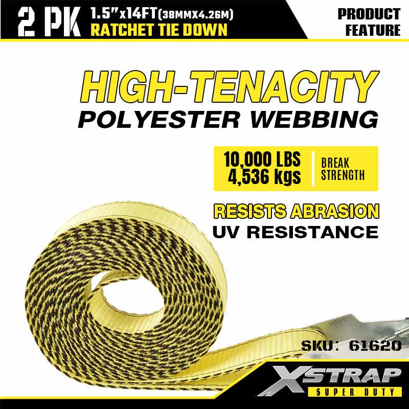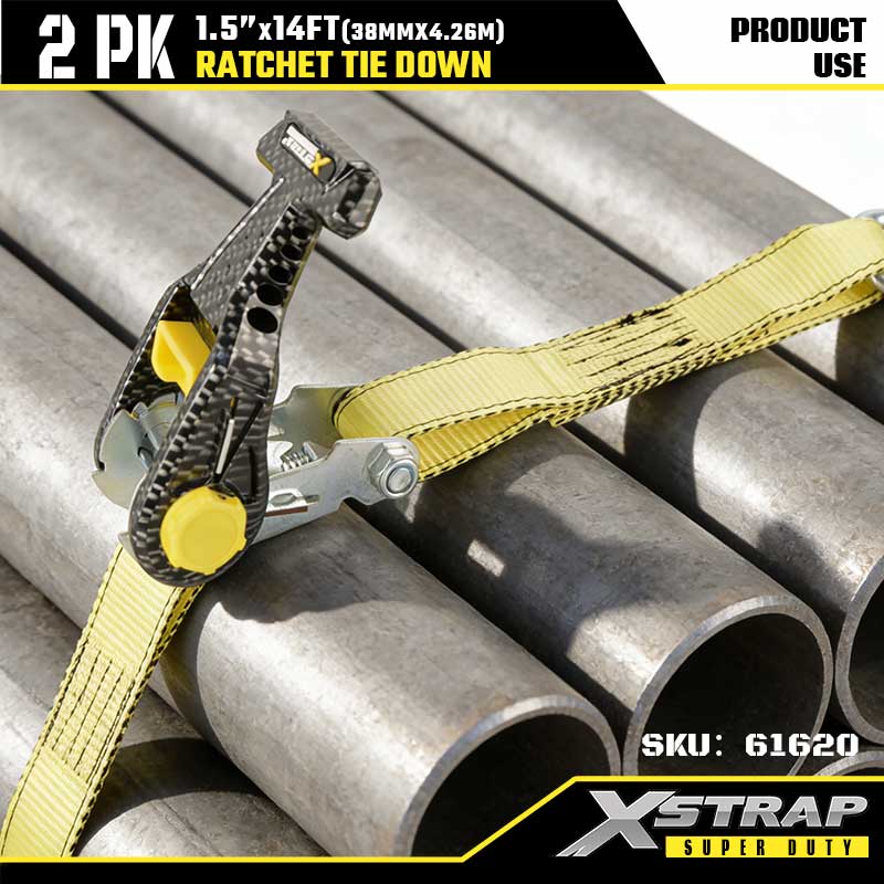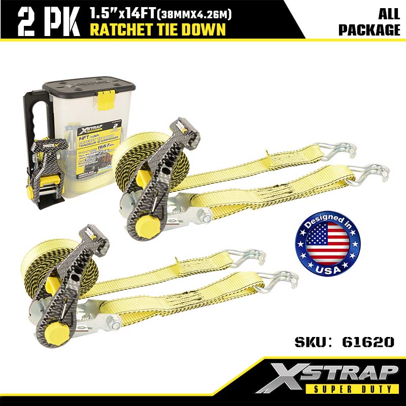 ربط سقاطة Xstrap 2PK مع خطافات J مزدوجة، حزام سقاطة من البوليستر مقاس 1-1/2 بوصة × 14 بوصة، أشرطة تثبيت لربط البضائع بسعة 1667 رطلًا مع خطافات J مزدوجة للمقطورة شديدة التحمل، وقارب تزلج على مقطورة مسطحة، وسيارة صغيرة، ومعدات ثقيلة.
